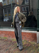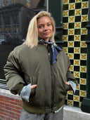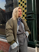 De perfecte look voor een koffierondje door de stad. Het bomberjack geeft een stoere touch, terwijl de grijze pantalon en denim laag zorgen voor een tijdloze balans. De bandana maakt het speels en nonchalant, met deze look ben je klaar voor elk weekendplan!
