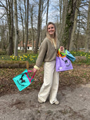 Onze draagtassen zijn gemaakt van ongeveer 75% gerecycled kunststof (PP Woven). Het gerecyclede materiaal komt van oude meel-, maïs- en rijstzakken die zijn hergebruikt voor onze mooie tassen. De hengsels zijn van stevig, synthetisch materiaal gemaakt (PP Webbing).