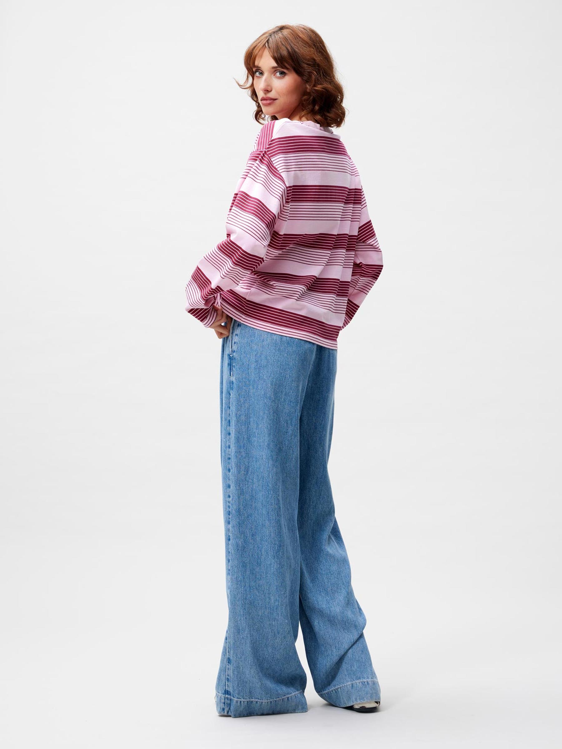 Deze roze oversized striped longsleeve van Catwalk Junkie is gemaakt van dik biologisch katoen dat lekker stevig aanvoelt. De mix van brede en smalle strepen in roze tinten zorgt voor een speels effect dat je hele outfit opfleurt.