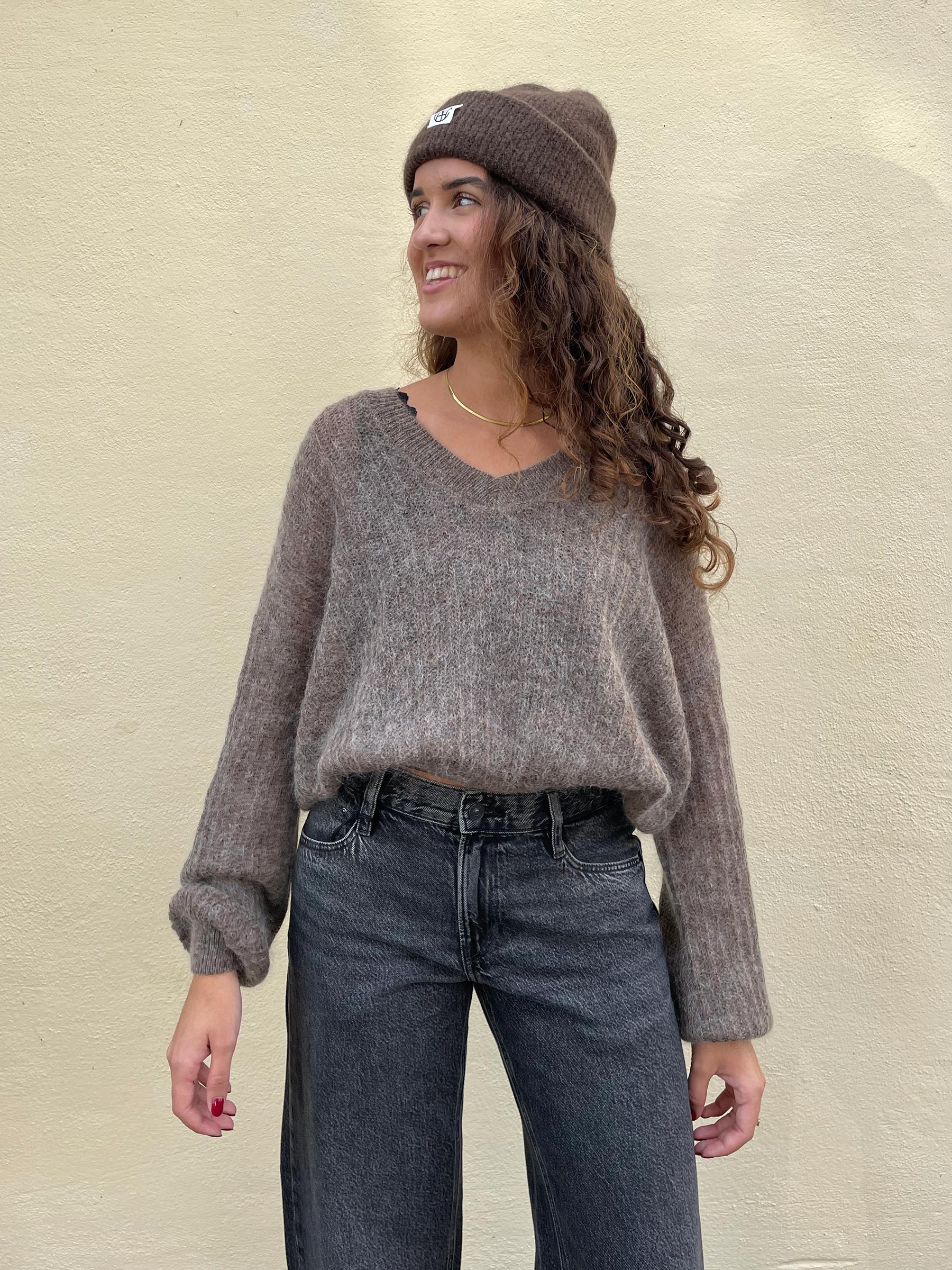 Deze bruine trui van Aimée the Label is de perfecte keuze voor dagen waarop je comfy en toch stijlvol voor de dag wilt komen. Het luxe breisel voelt heerlijk zacht aan en geeft een speelse, vrouwelijke look. Combineer met een mooie high-waist broek of rok voor een cozy outfit.