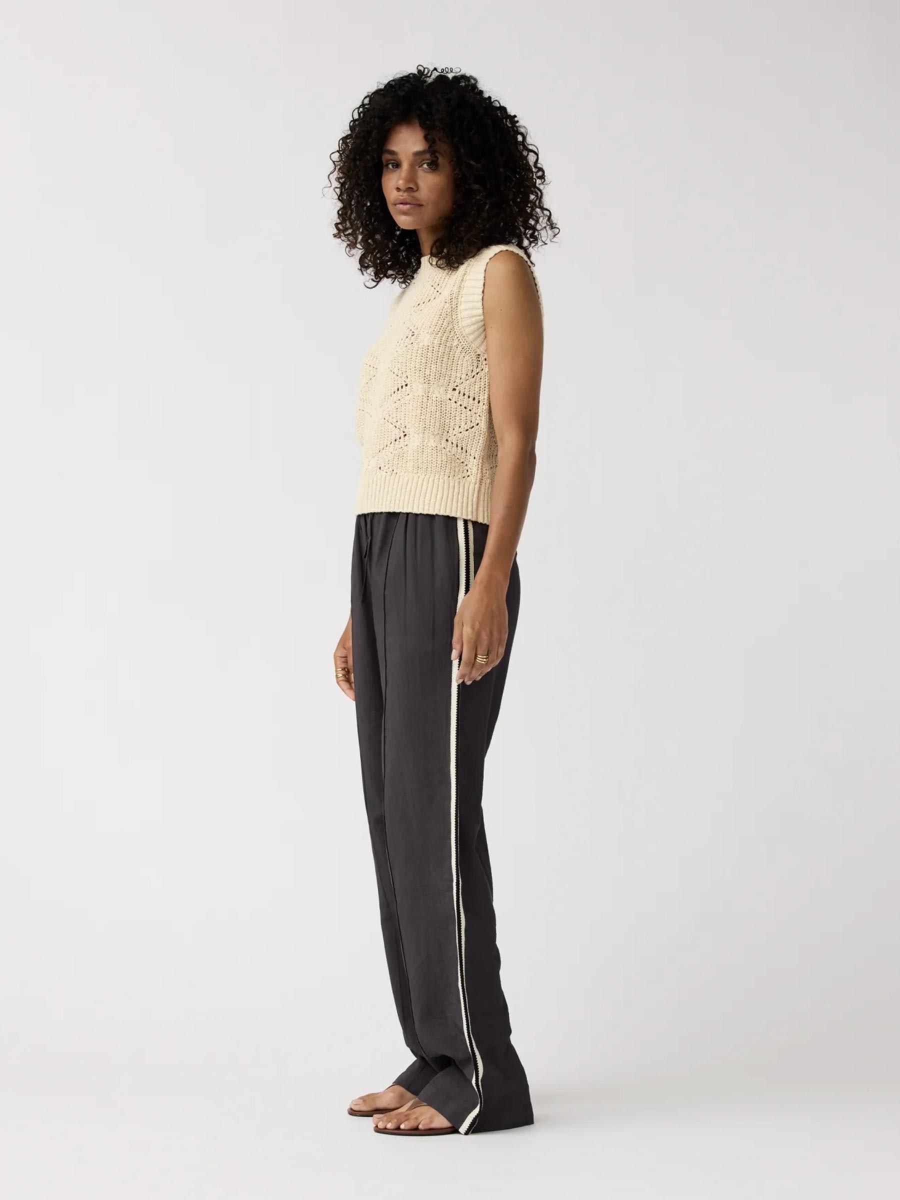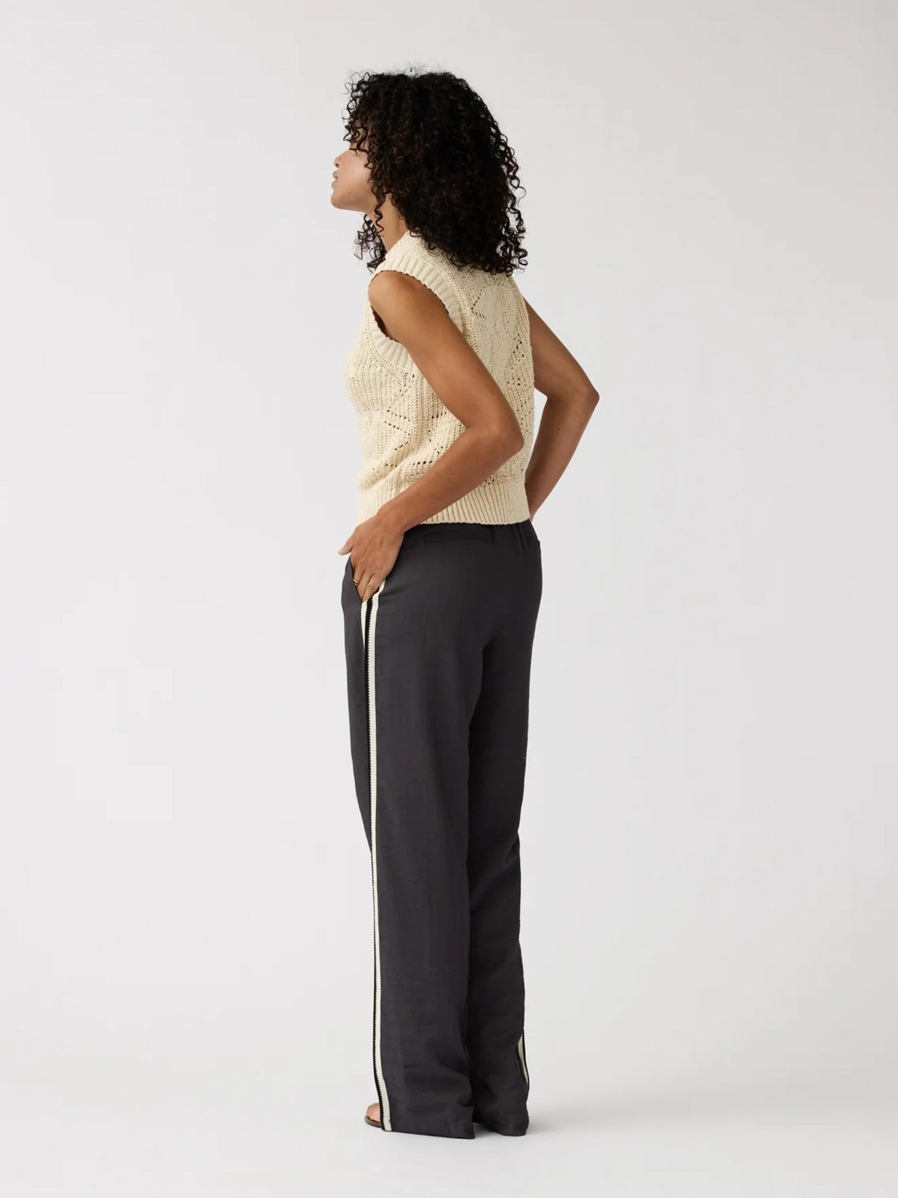 Draag deze top over een gladde lichte blouse voor een tof gelaagd effect. Maak je look helemaal af met een donkere wijde broek en een paar stoere sneakers eronder.