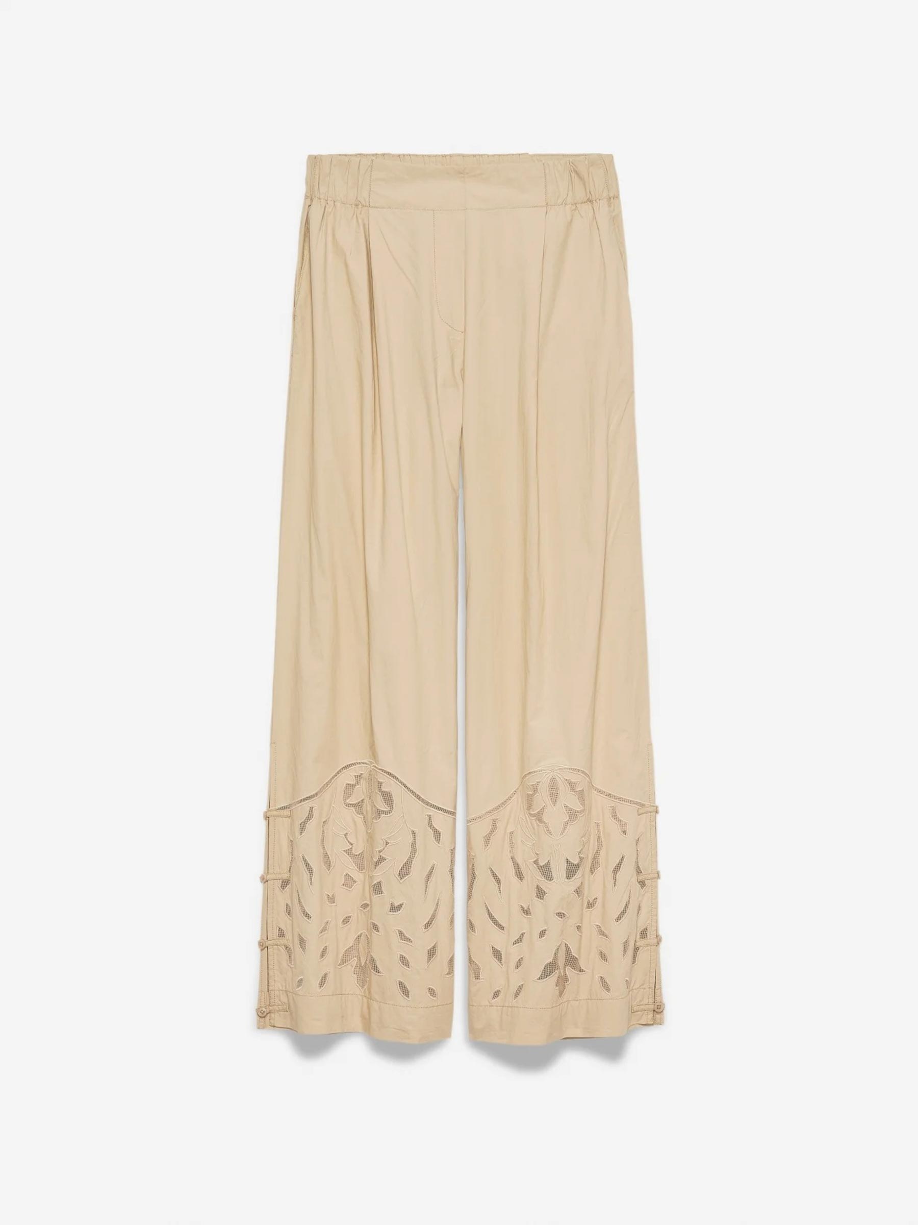 Beige pantalon moonflower embr