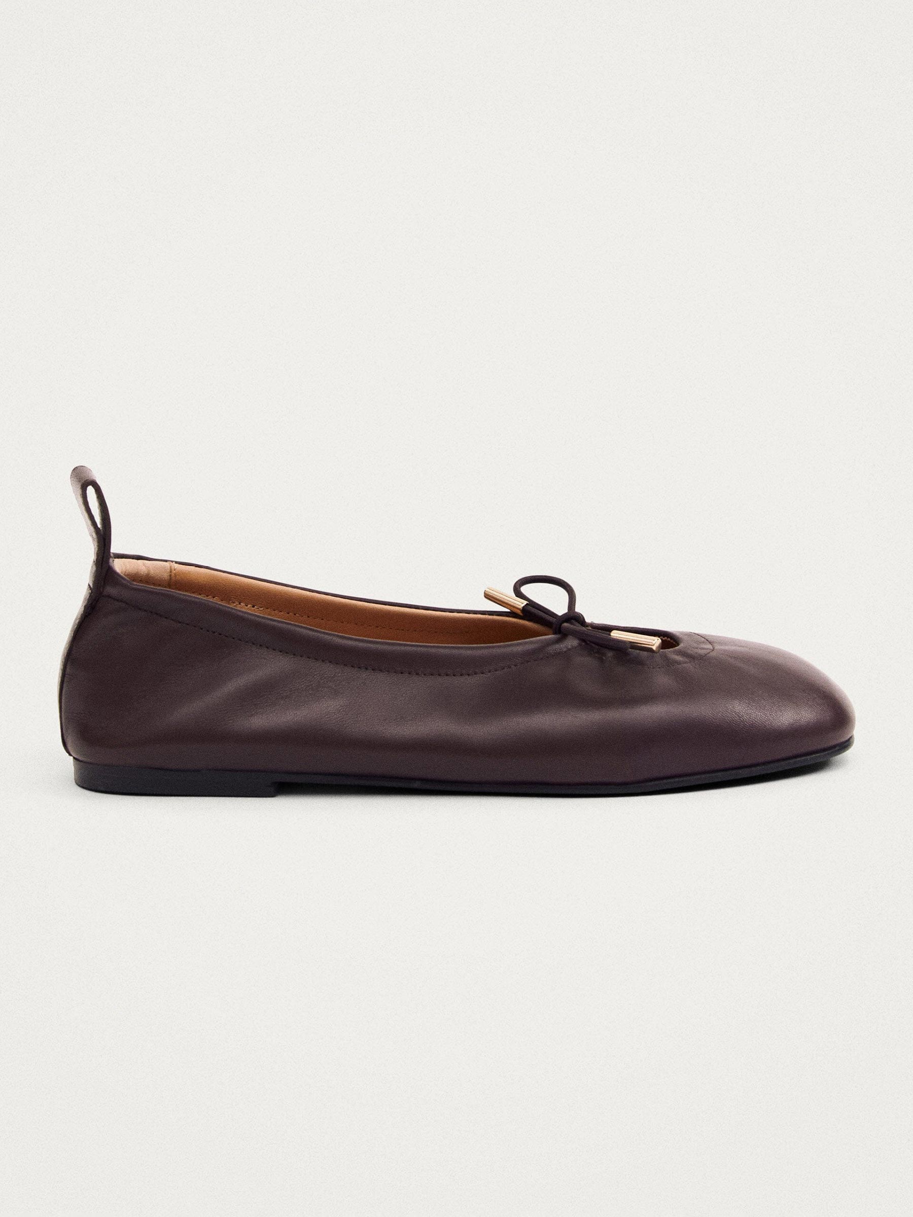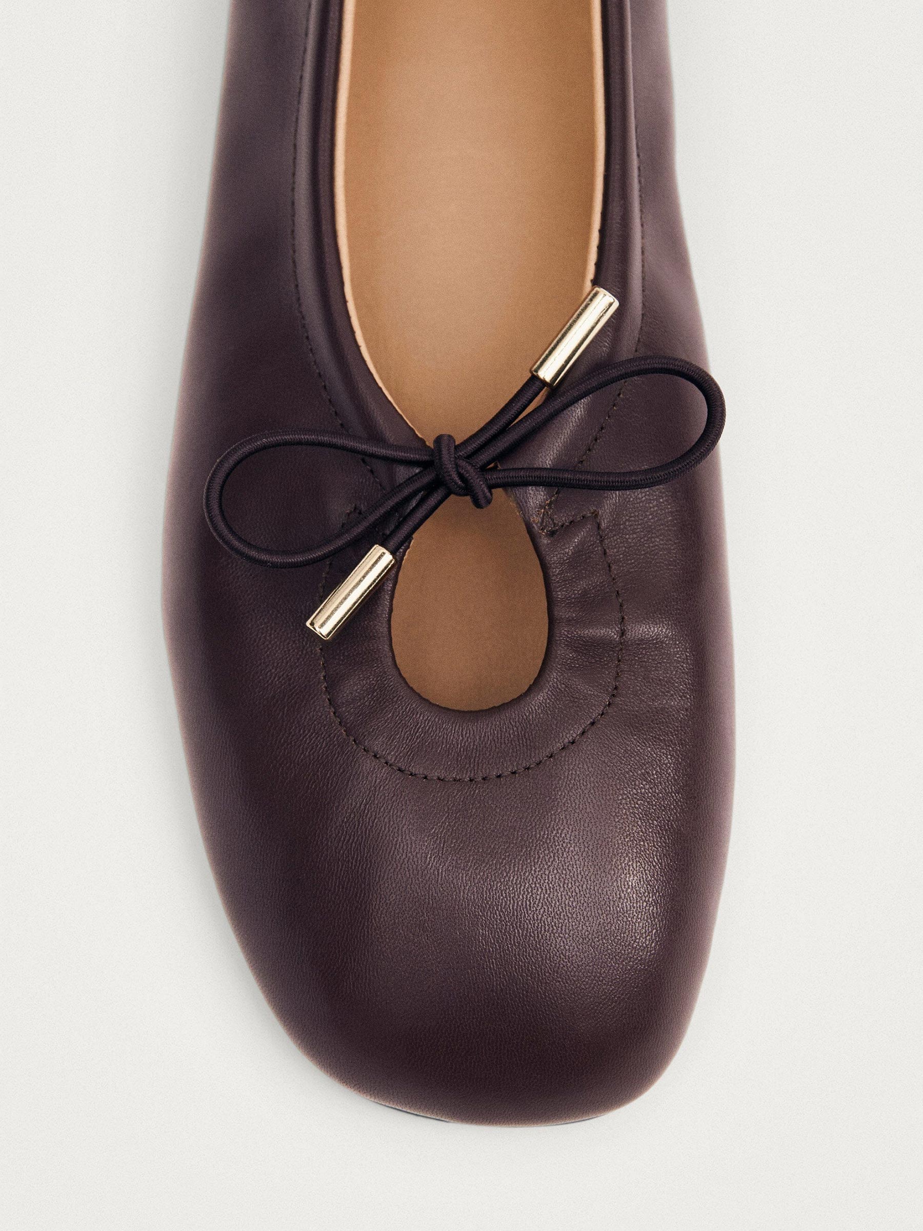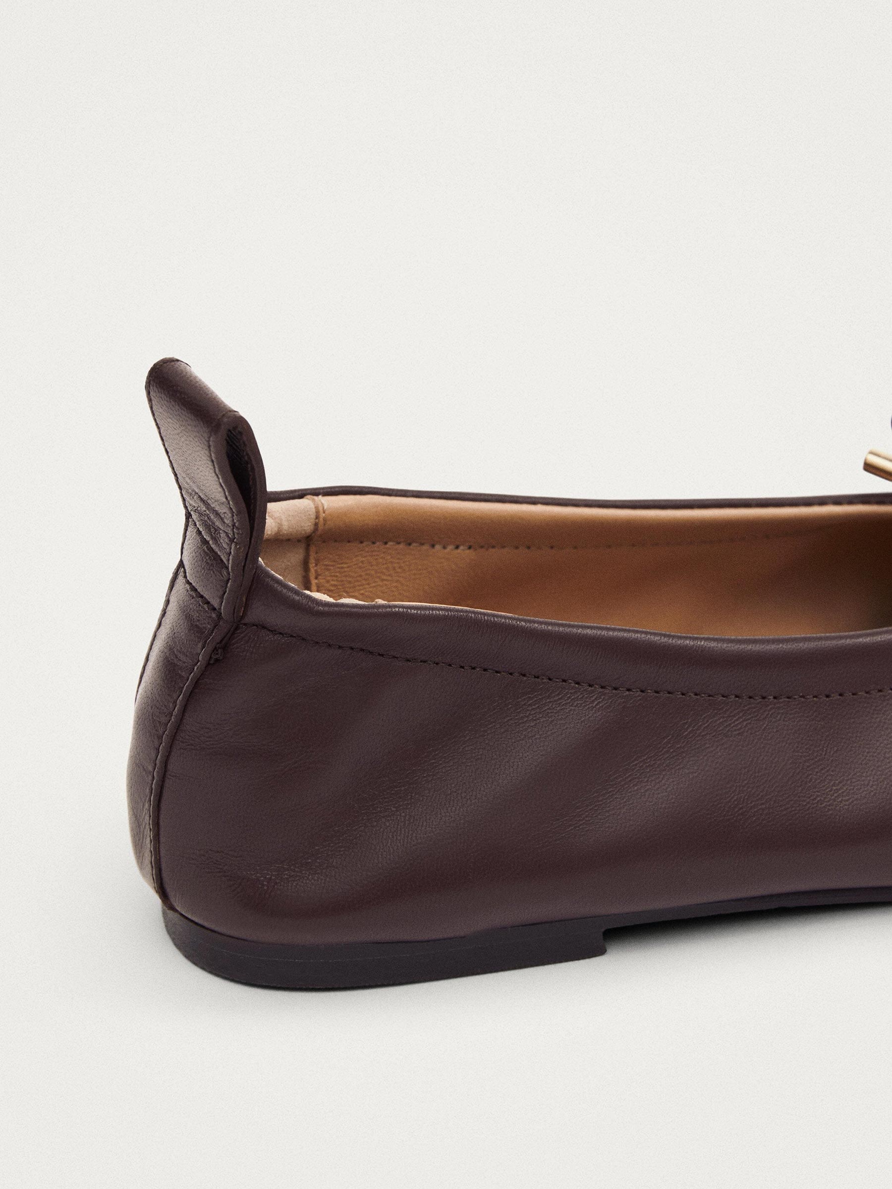 - Bruine leren ballerina met strik