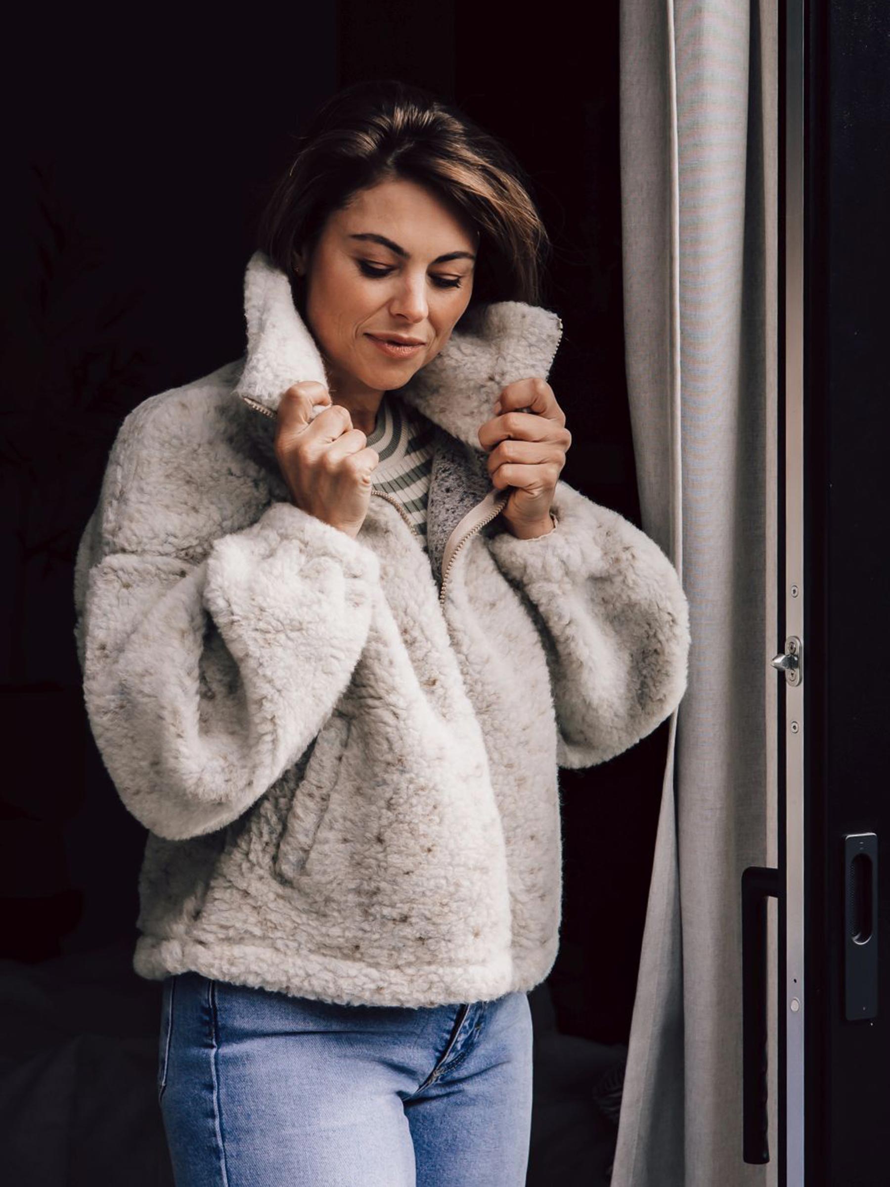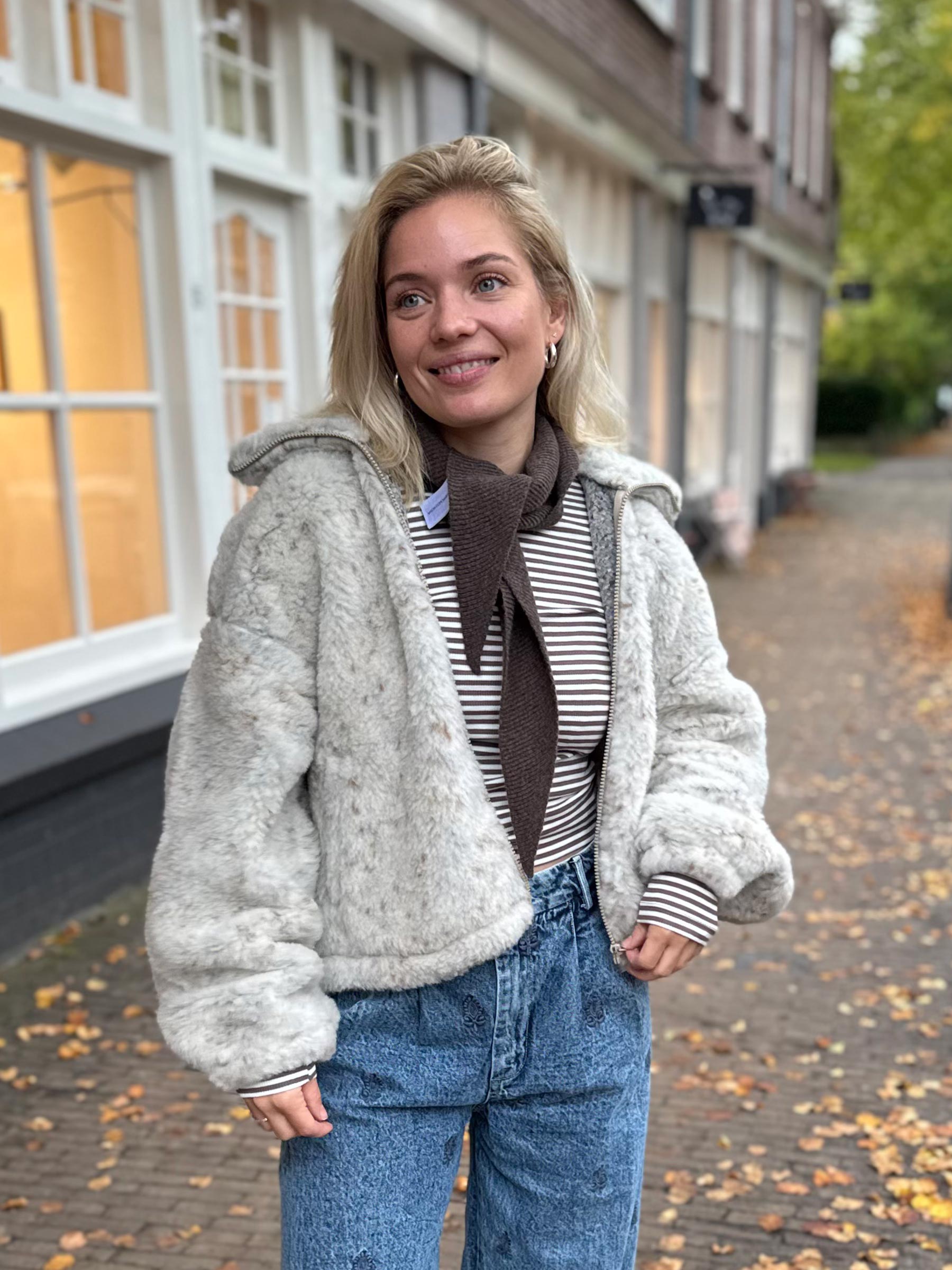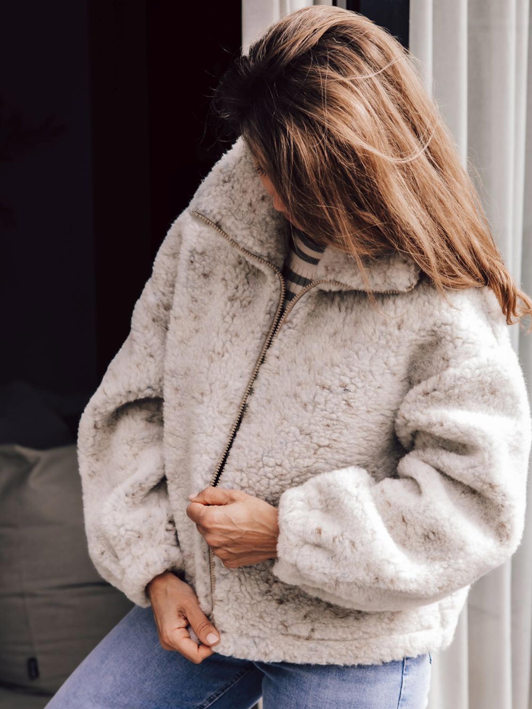 Deze offwhite wollen jas van Alwero is zo’n item waar je meteen in wilt wonen. Gemaakt van 100% wol die heerlijk warm en zacht aanvoelt, met een iets korter model voor een toffe look. Cozy, comfortabel en klaar voor frisse dagen.