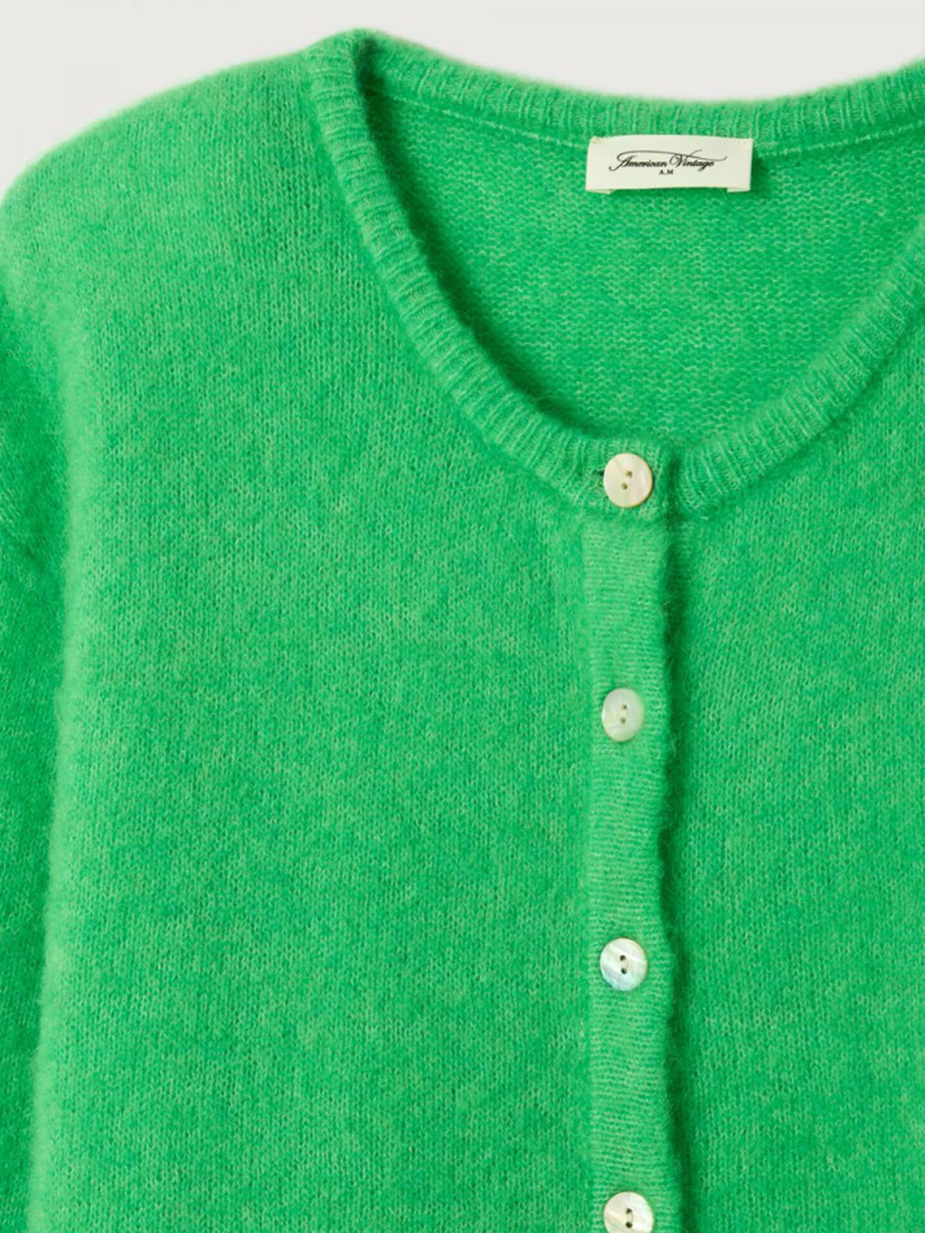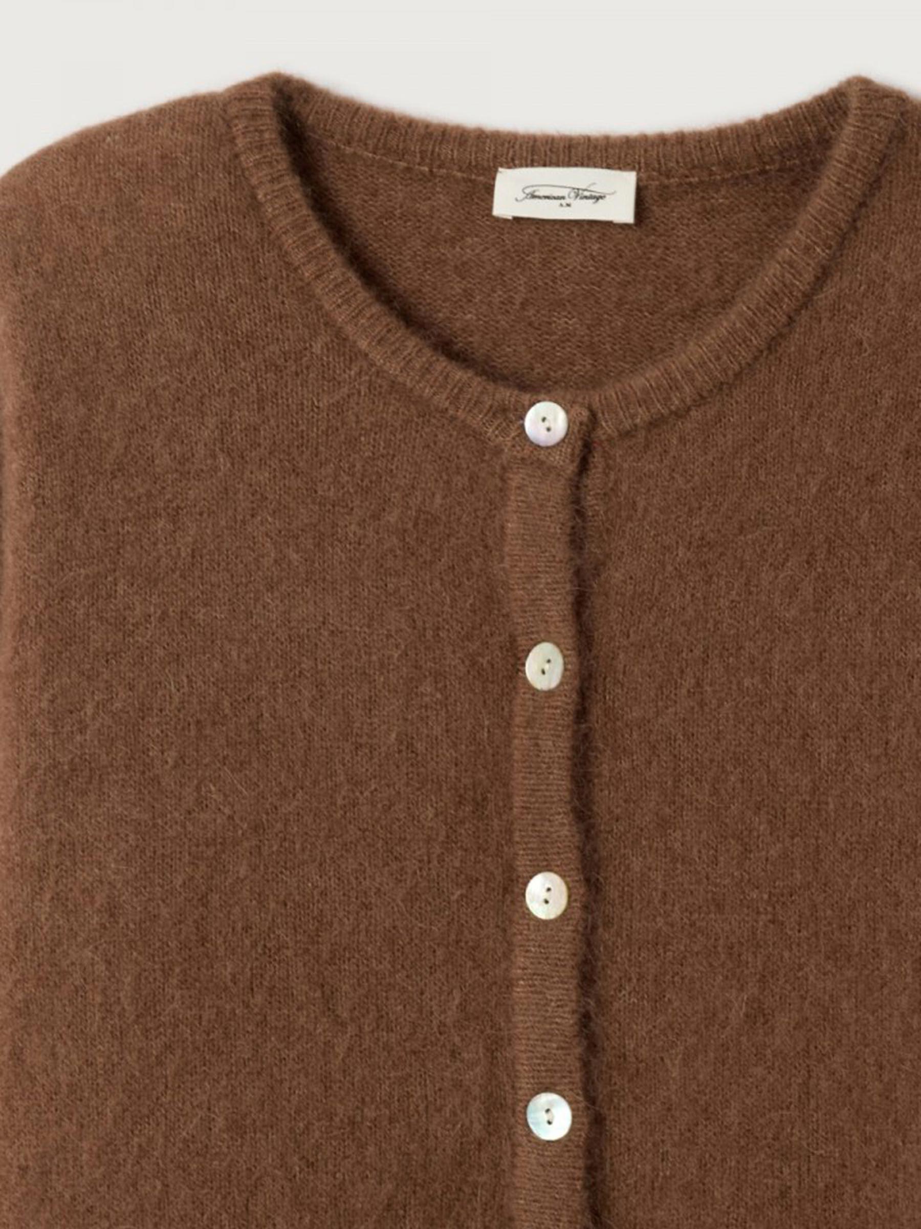 Dit gebreide vest van American Vintage is zo’n fijn basisitem dat altijd werkt. Zacht, licht en comfortabel, met een knoopsluiting en een tijdloos silhouet dat je makkelijk combineert met alles in je kast. Draag hem dicht als trui of open over een top voor een relaxed look.