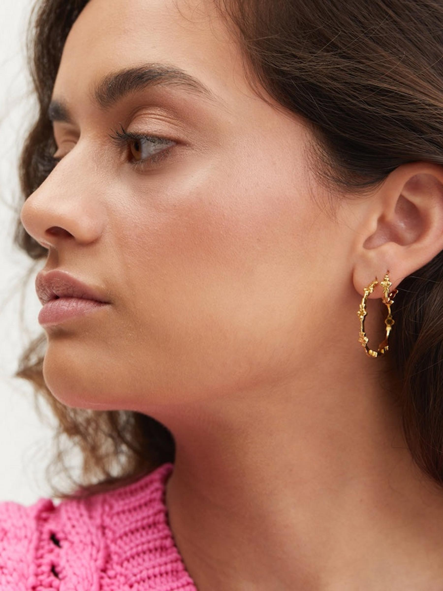 Deze gouden oorbellen van Anna + Nina geven je look meteen iets warms en vrolijks. De fijne bloemen en speelse vorm maken ze ideaal voor elke dag maar ook superleuk bij een feestelijke outfit. Draag ze solo of combineer ze met jouw andere favorieten voor een gezellige earparty.