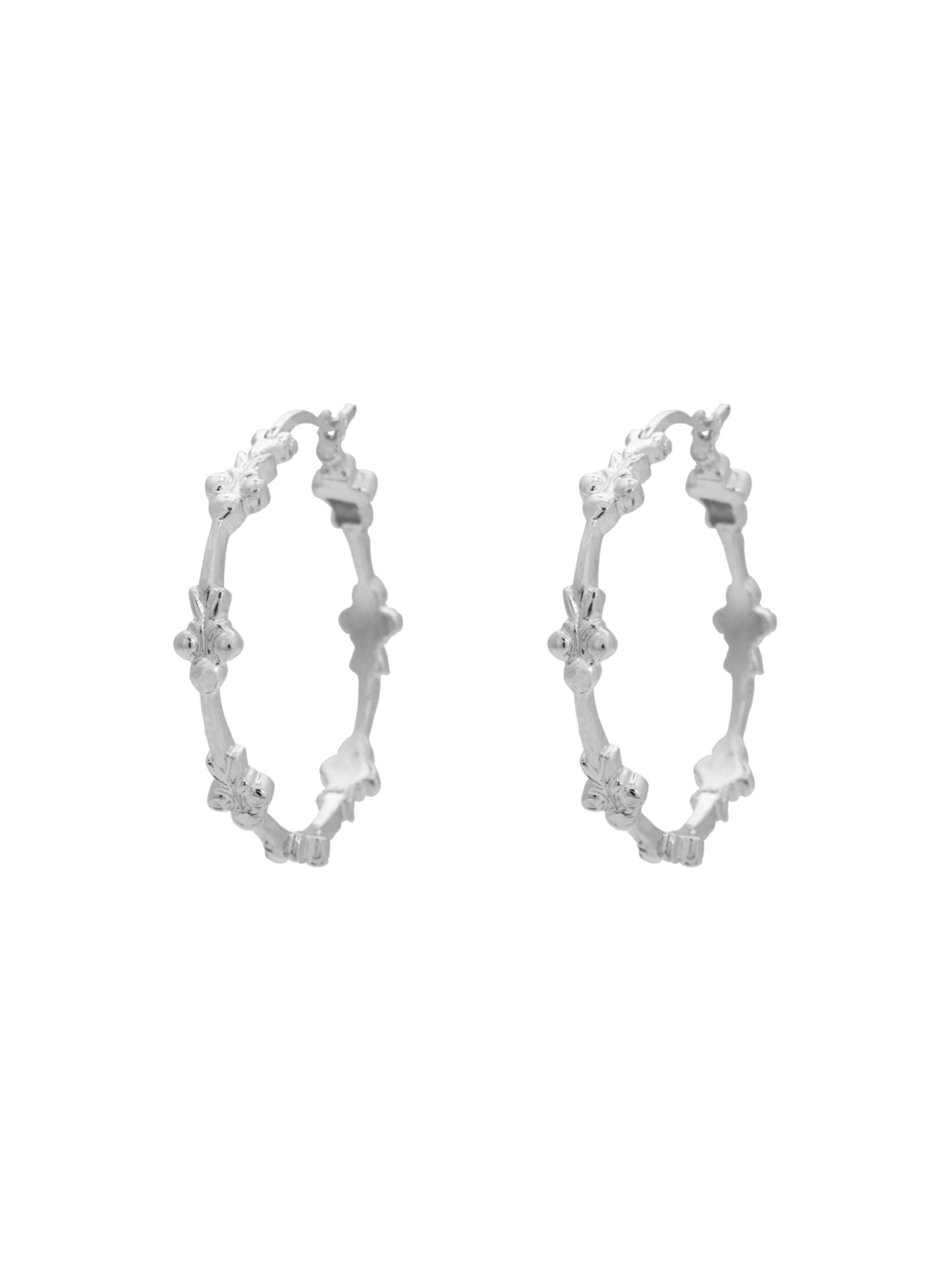 Deze zilveren oorbellen van Anna + Nina geeft je look meteen iets vrolijks en charmants. De bloemstructuur valt lekker op en past net zo leuk bij een cosy outfit als bij een avondje uit. Mix ze met je andere favorieten en maak er een fijne earparty van.