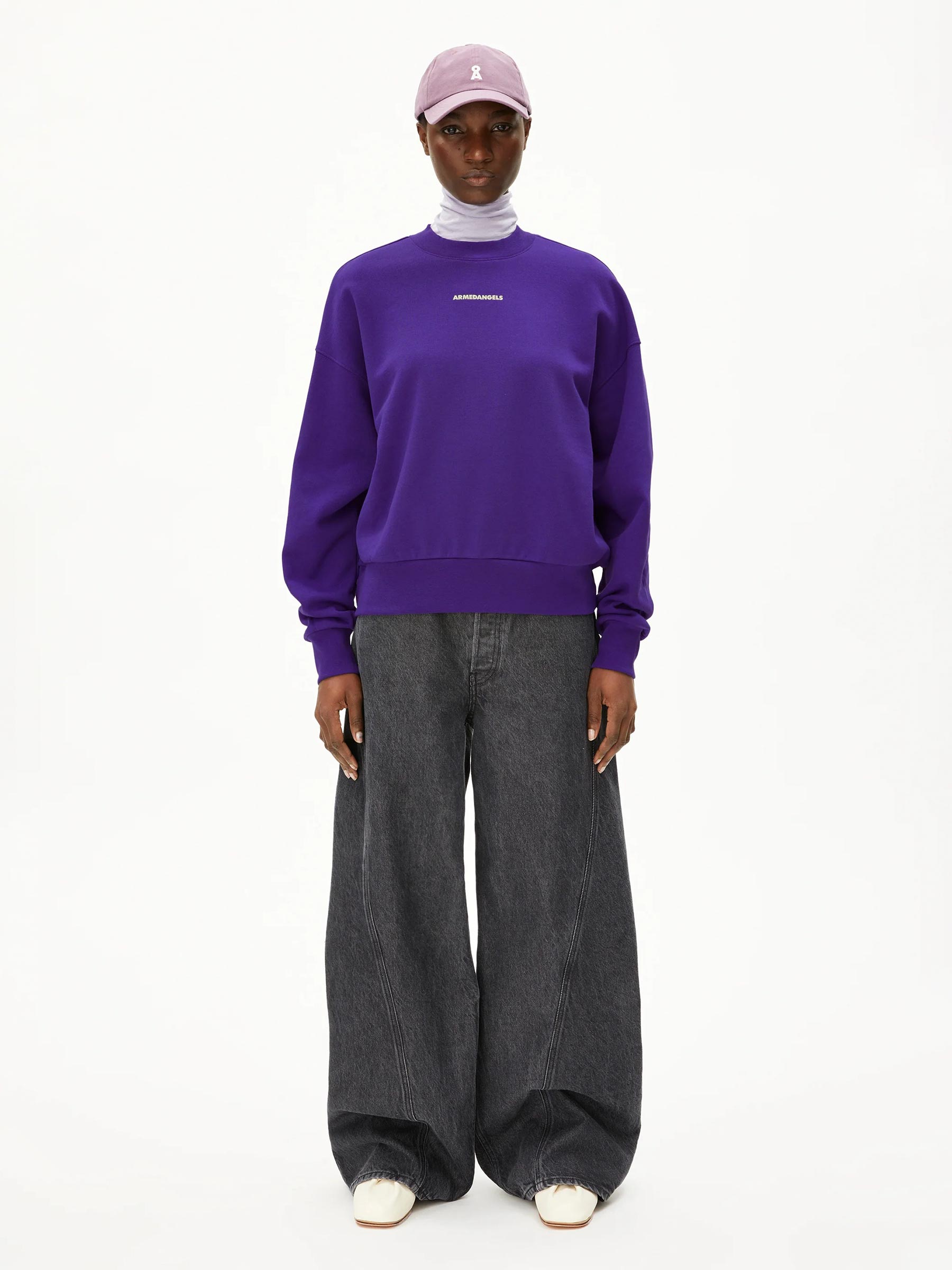 Deze paarse sweater van Armedangels maakt meteen een statement. Aan de voorkant subtiel, aan de achterkant bold met de tekst Changemakers Club. Gemaakt van biologisch katoen in een relaxed fit die je moeiteloos elke dag wilt dragen.