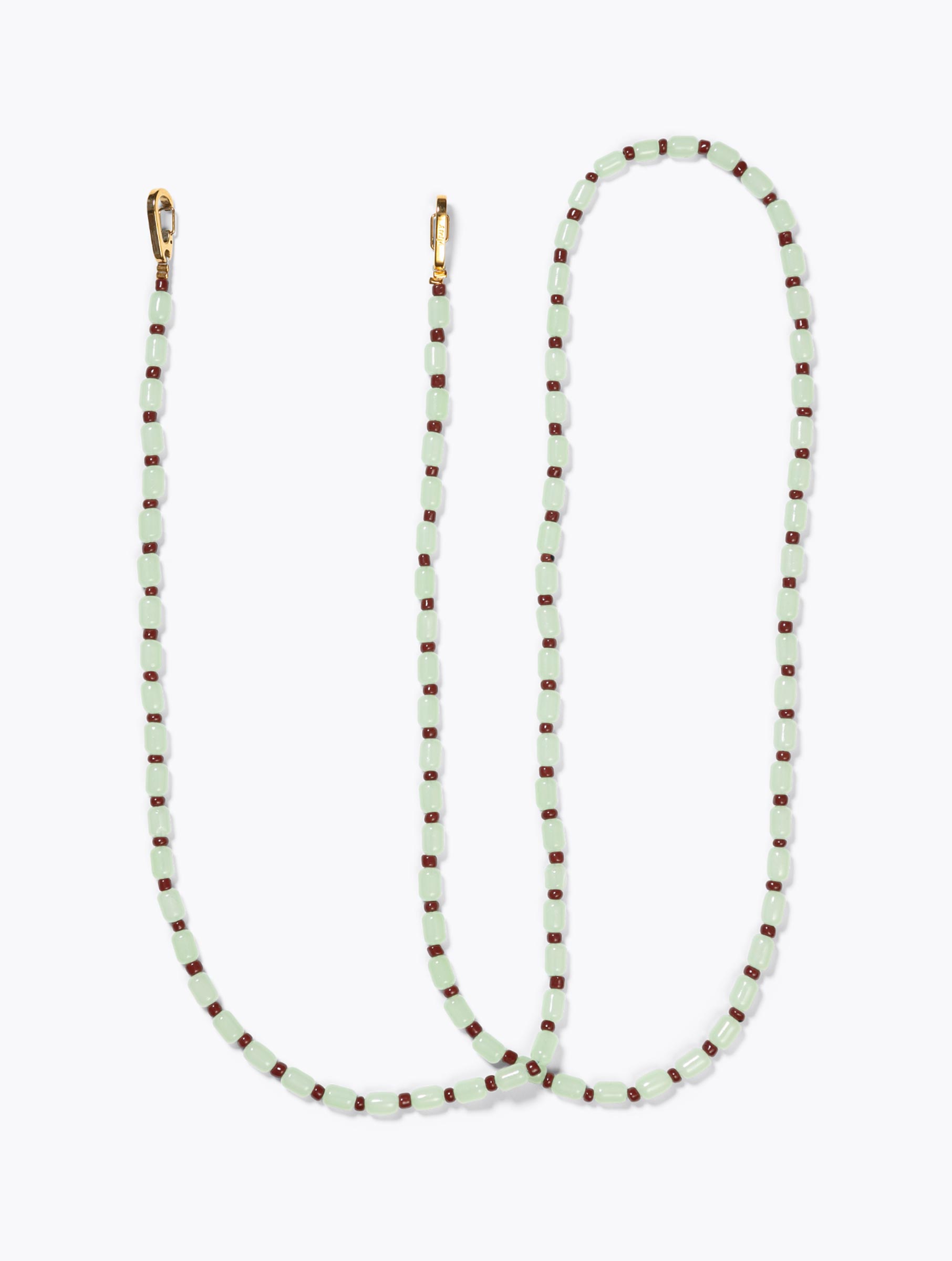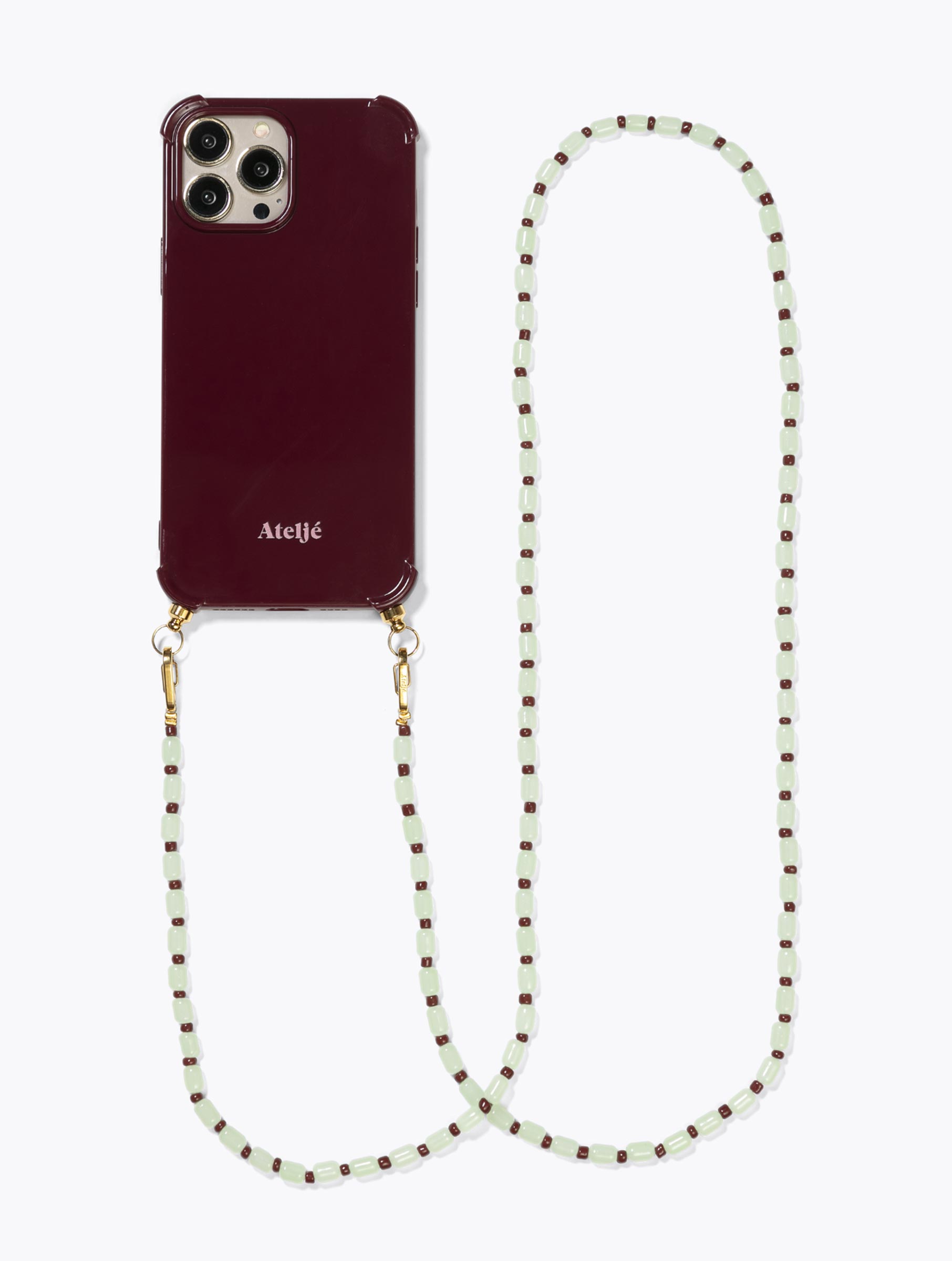 Deze groen-bruine telefoonkoord van Ateljé maakt je look compleet. De handgeregen kralen zorgen voor een speels kleurcontrast en de goudkleurige clipjes geven een verfijnde touch. Draag ‘m met je favoriete Ateljé case en houd je telefoon altijd stijlvol bij de hand, praktisch én leuk tegelijk.