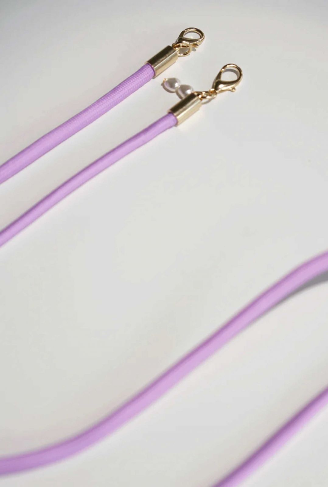 Geef jouw telefoonhoesje wat extra kleur met dit lila telefoonkoordje van Ateljé! Het handige koord zorgt ervoor dat jij je handen vrij hebt en is ontworpen met pareldetails en goud hardware. Gemaakt van gerecycled materiaal. Trendy en duurzaam!