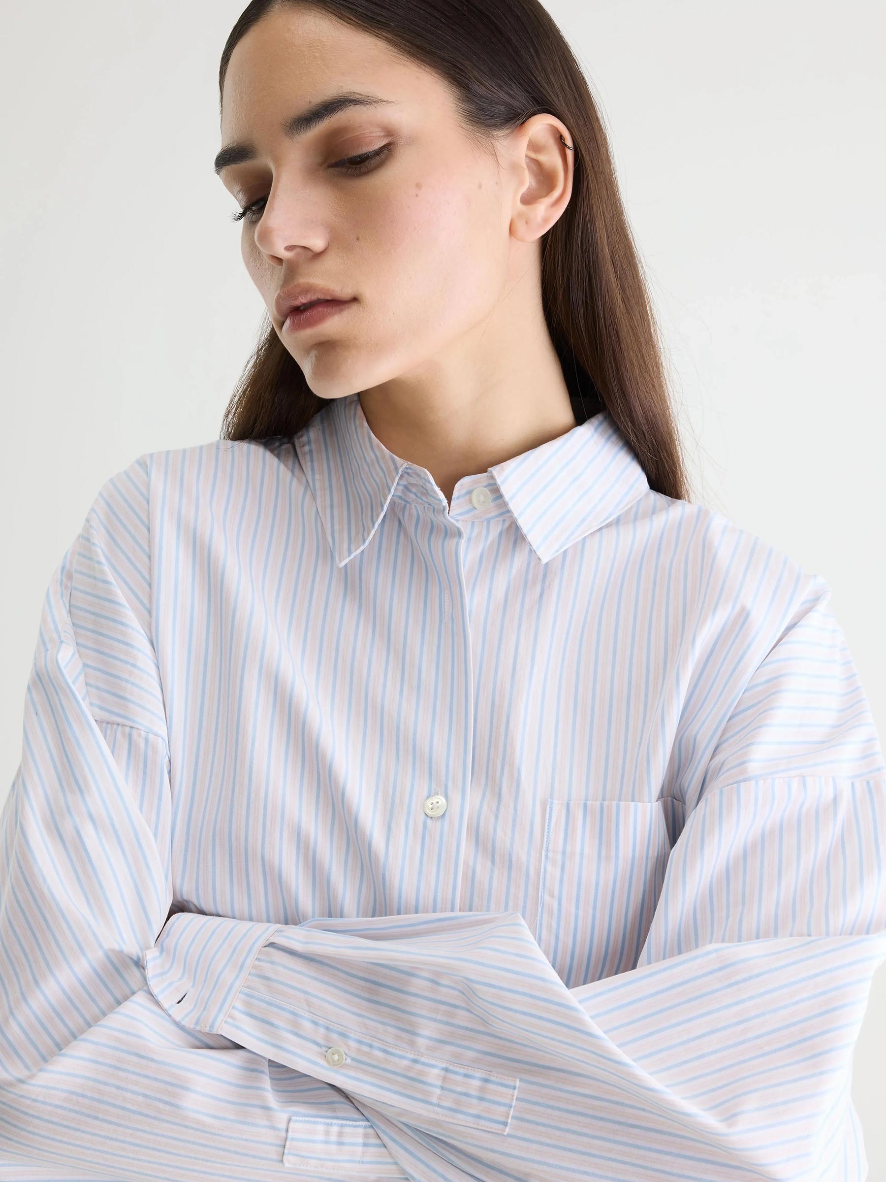 Deze lichtblauwe gestreepte blouse van Bellerose is perfect als je houdt van frisse klassiekers met een relaxte fit. Licht, luchtig en precies goed voor dagen waarop je outfit simpel mag blijven maar wel leuk moet zijn.