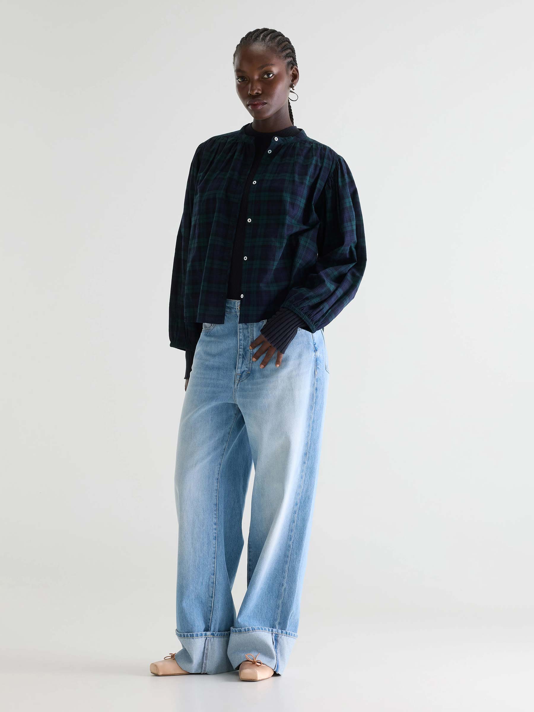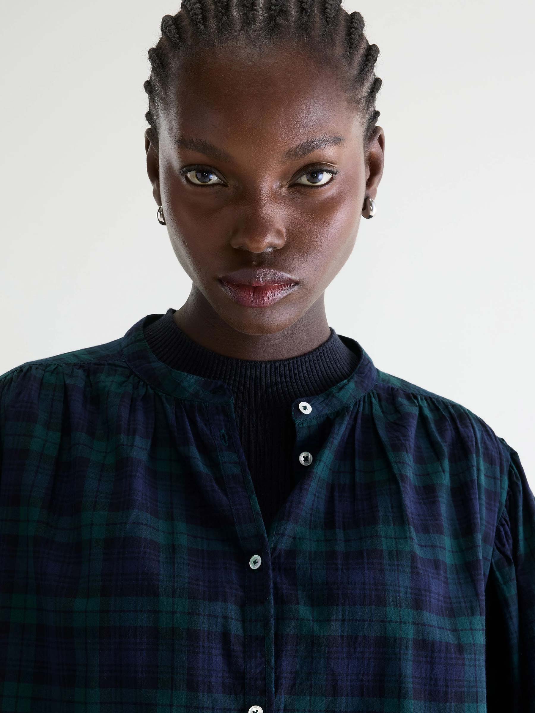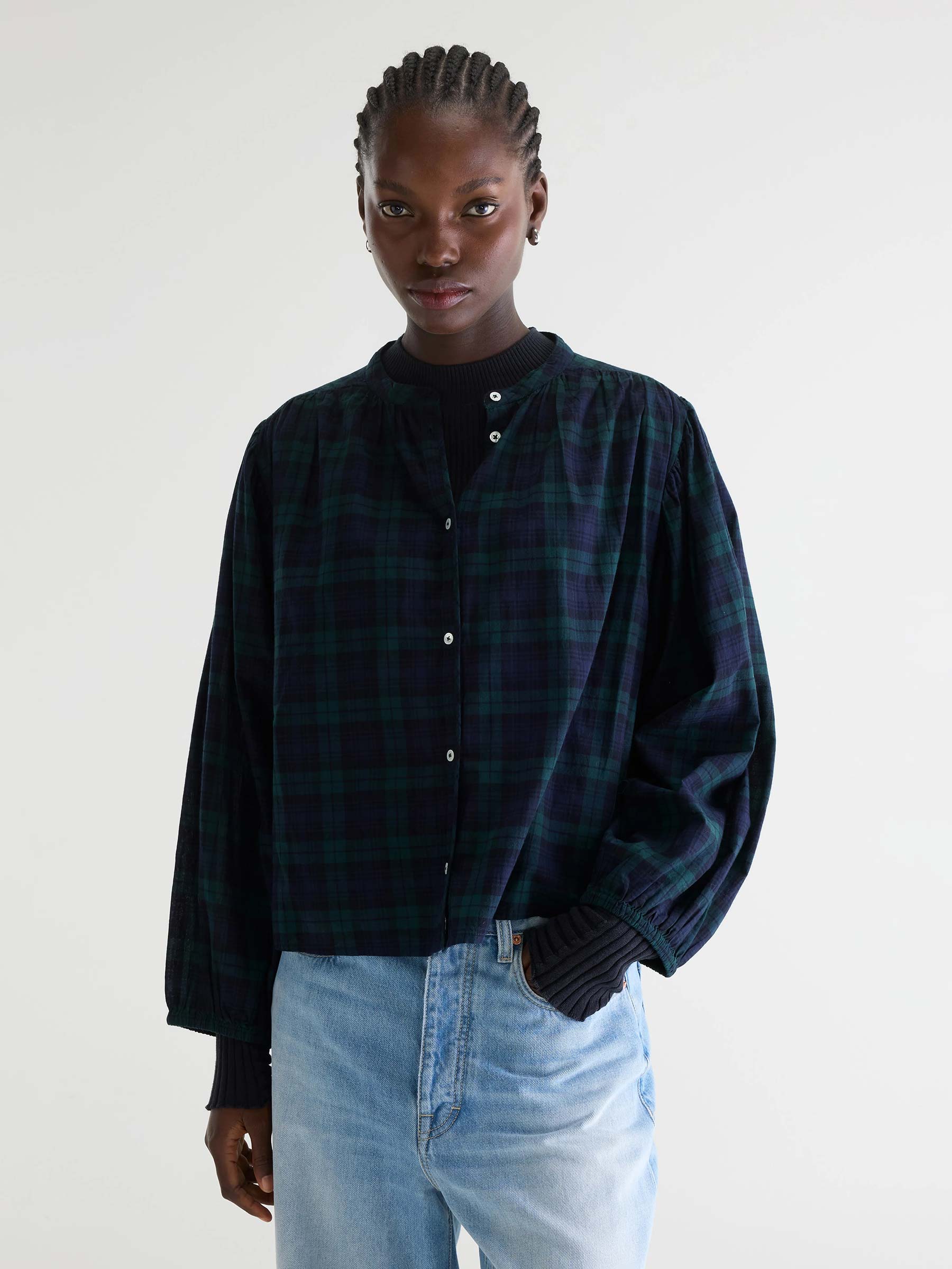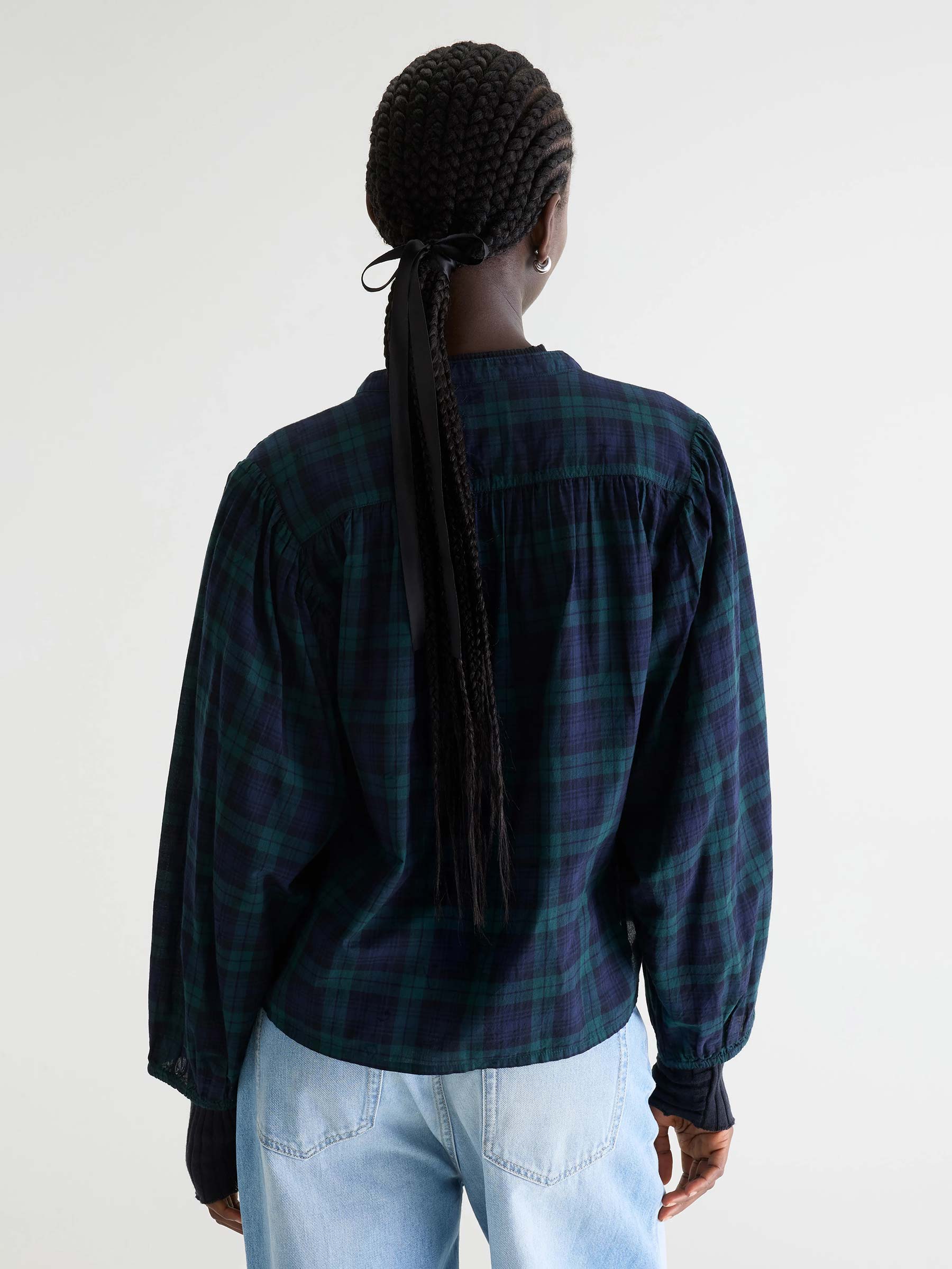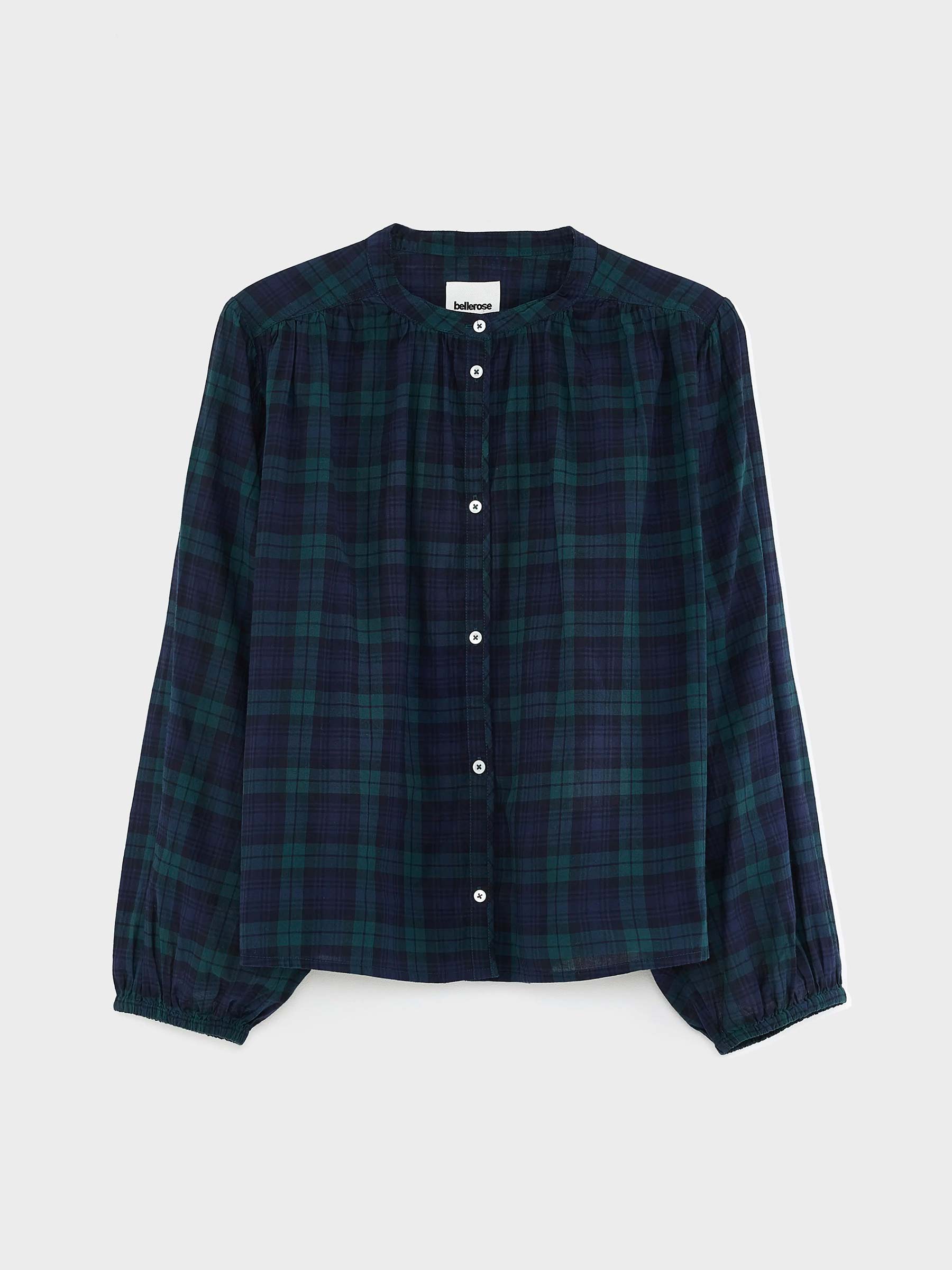 Deze blauw-groen geruite blouse van Bellerose is zo’n item dat je outfit meteen af maakt! De boxy pasvorm, gerimpelde schouders en pofmouwen geven een nonchalante look met net genoeg detail om interessant te blijven. Leuk los gedragen op een jeans, maar ook makkelijk te combineren met een nettere broek.