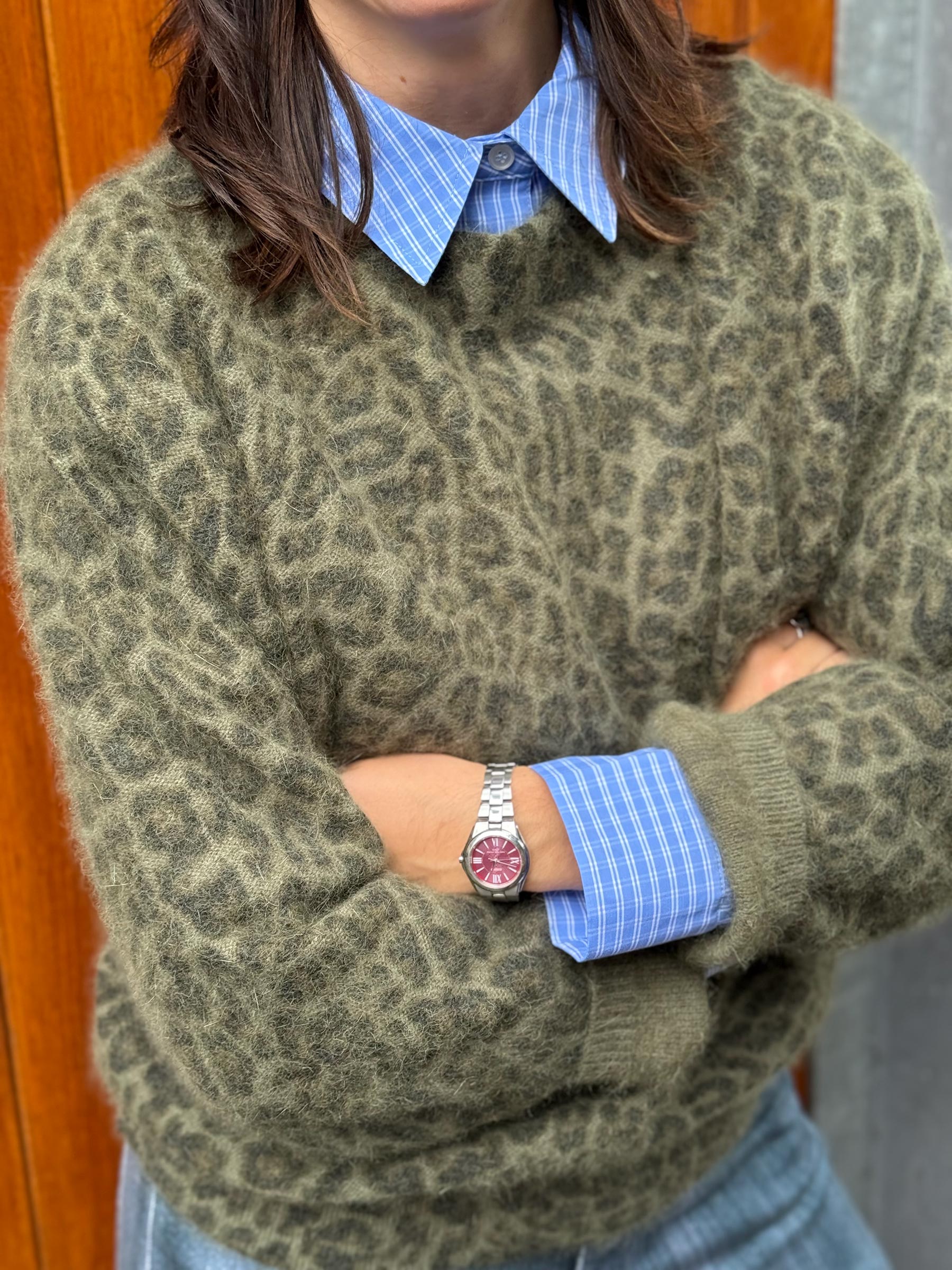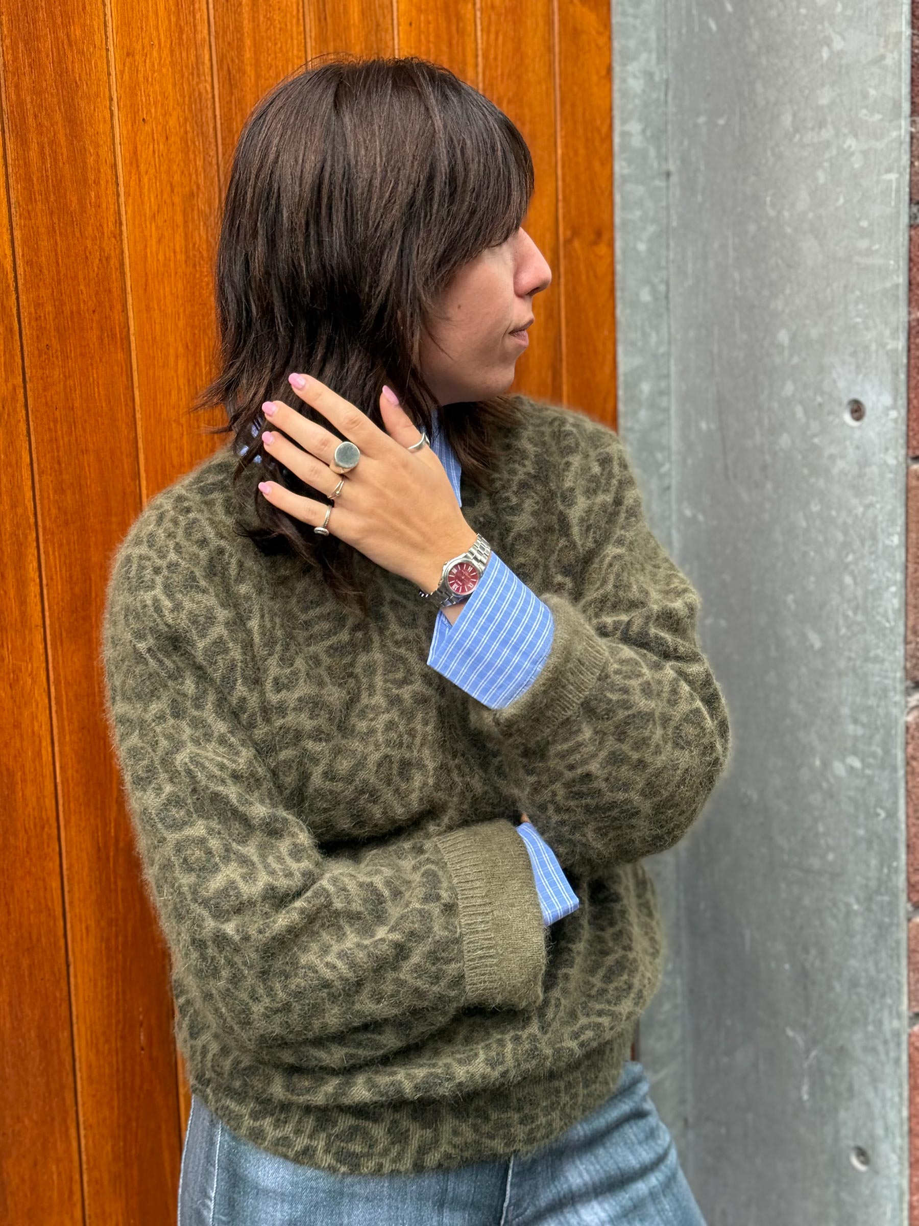Deze groene fluffy trui van Bellerose is een echte eyecatcher met zijn speelse luipaardprint. De zachte, wollige stof voelt comfy en warm aan, en de relaxed fit maakt hem ideaal voor everyday outfits. Perfect op een grijze jeans voor een stoere look, of juist met een zwarte rok voor een meer vrouwelijke vibe.
