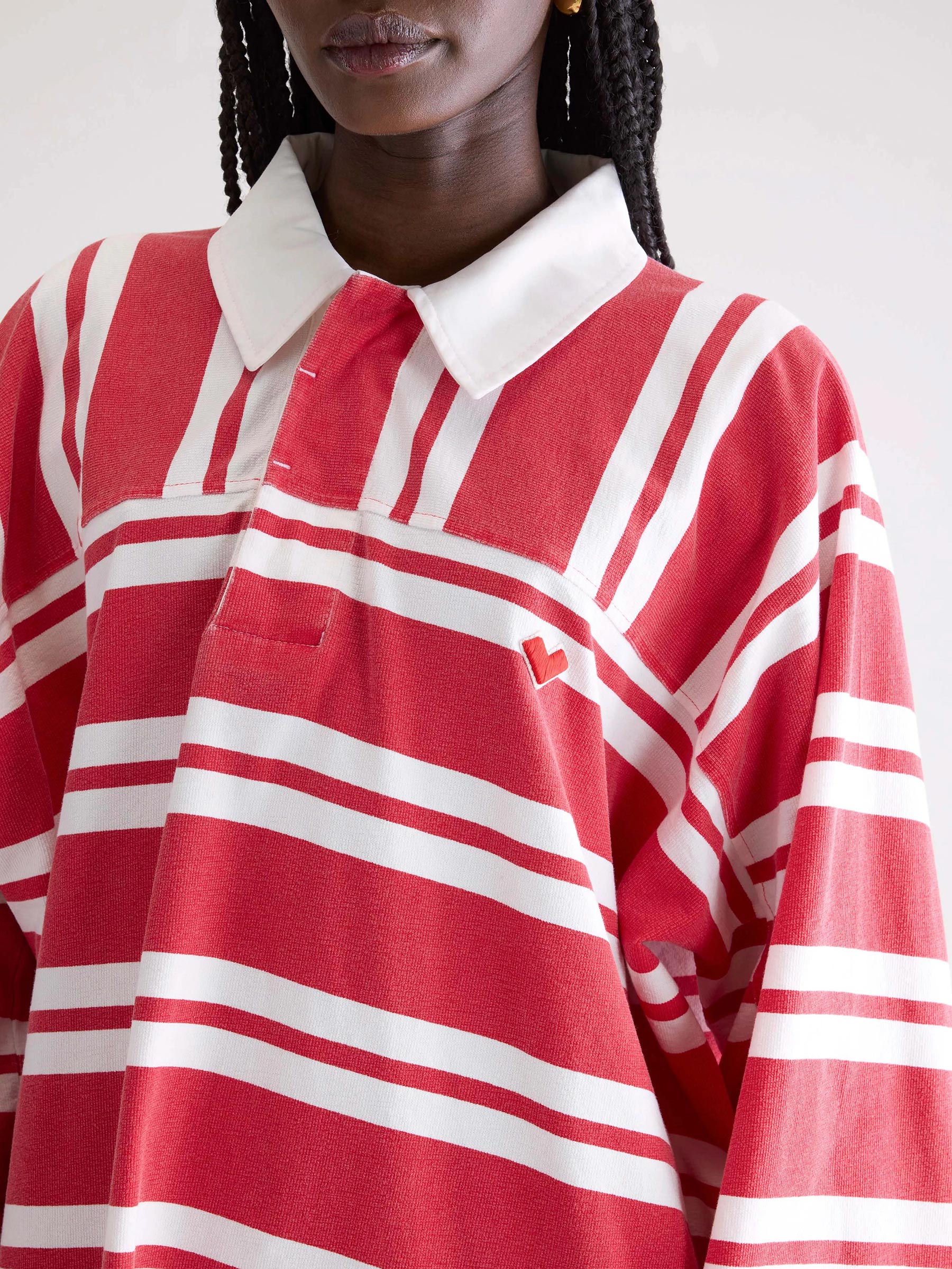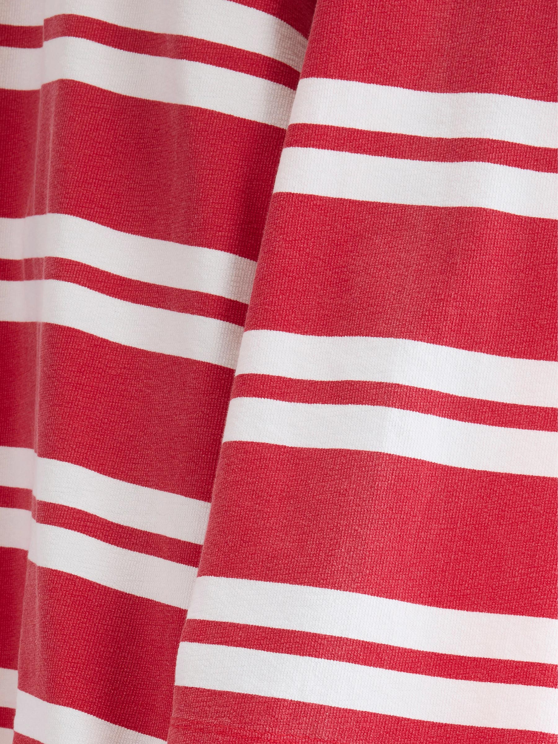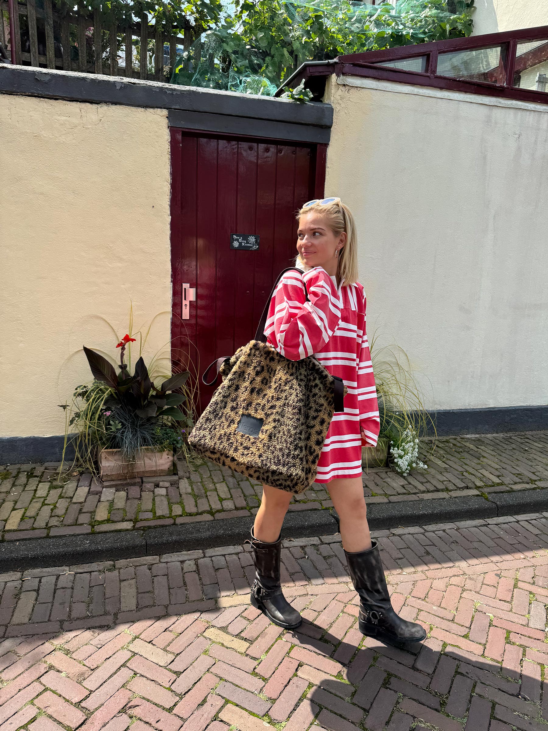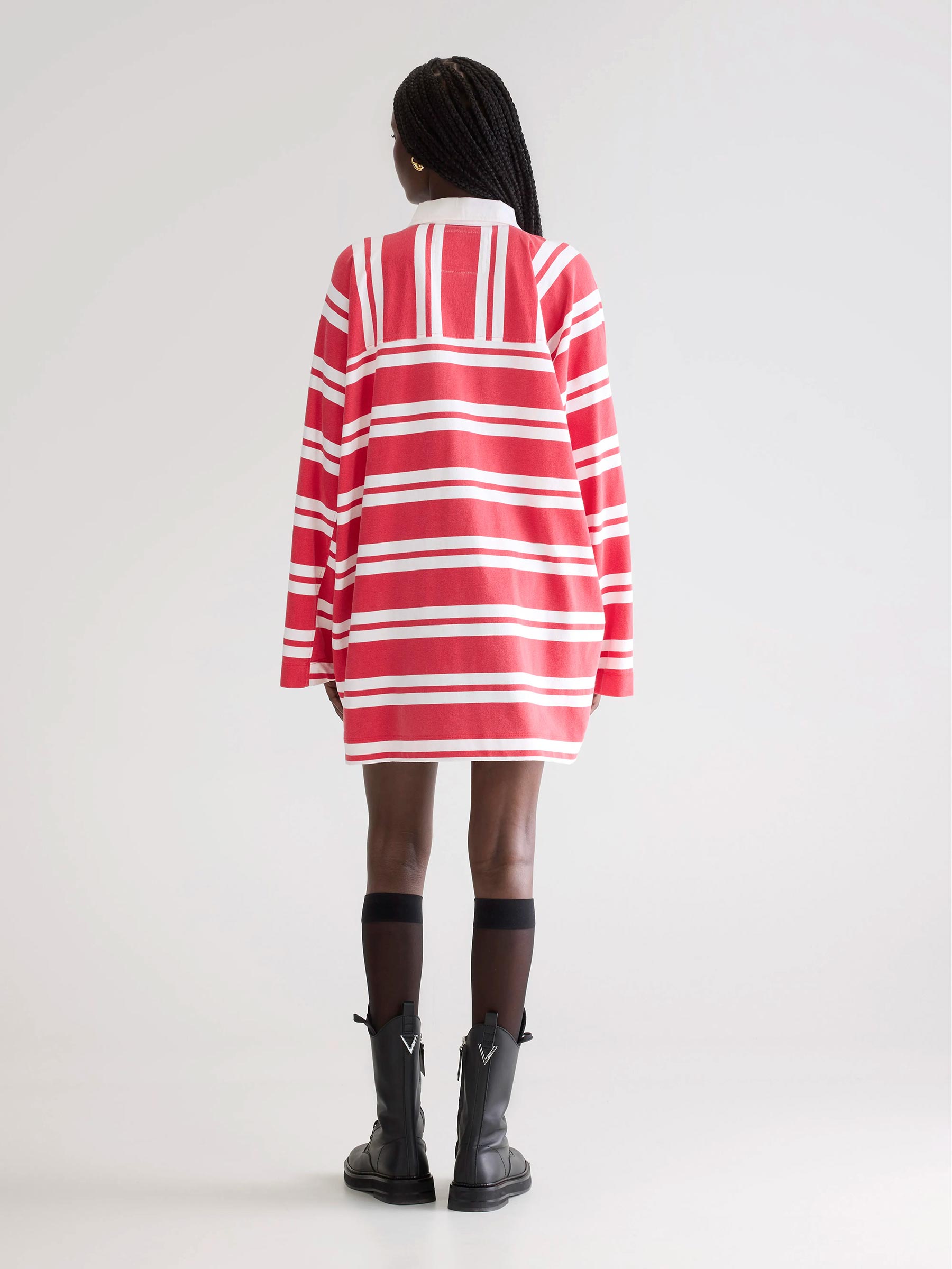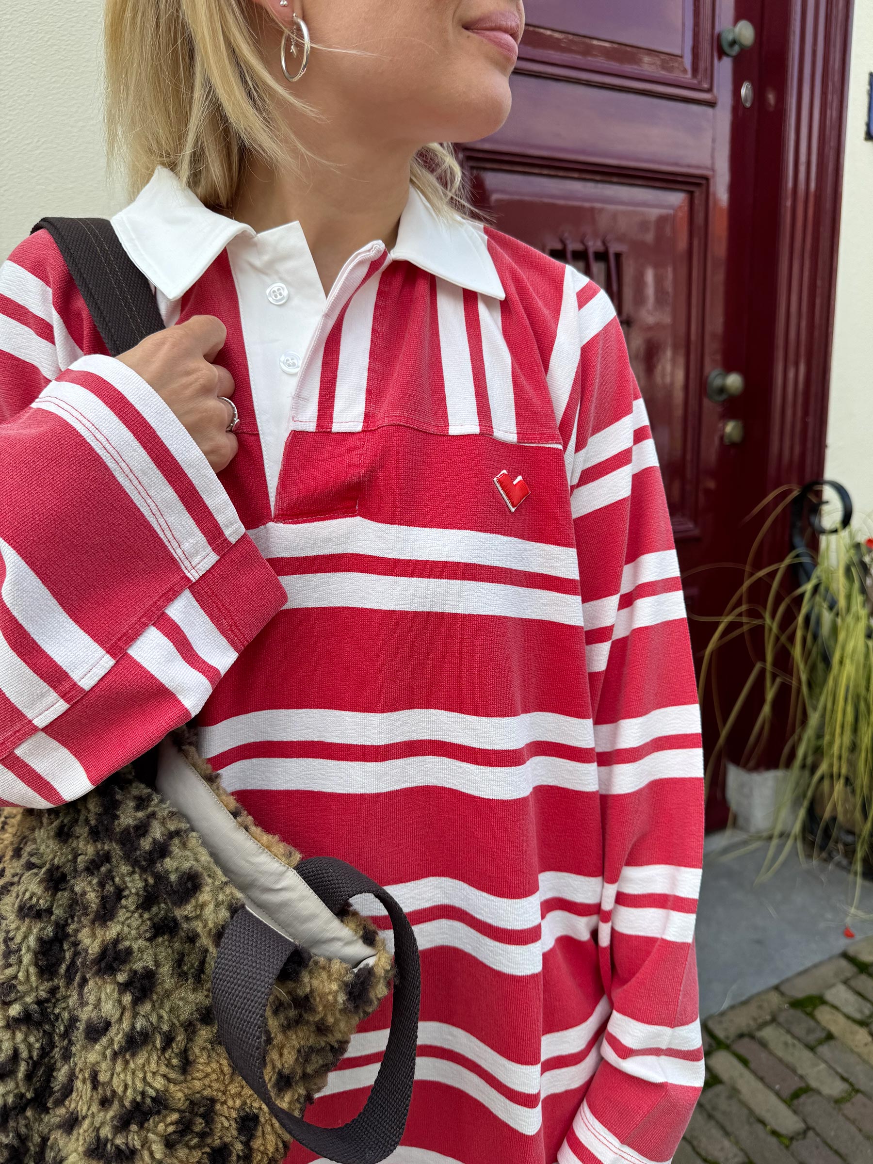 Deze polo dress met rood witte strepen is zo’n item dat perfect is voor het tussenseizoen. Jurk aan en je ziet er meteen top uit. Leuk met chunky boots eronder.