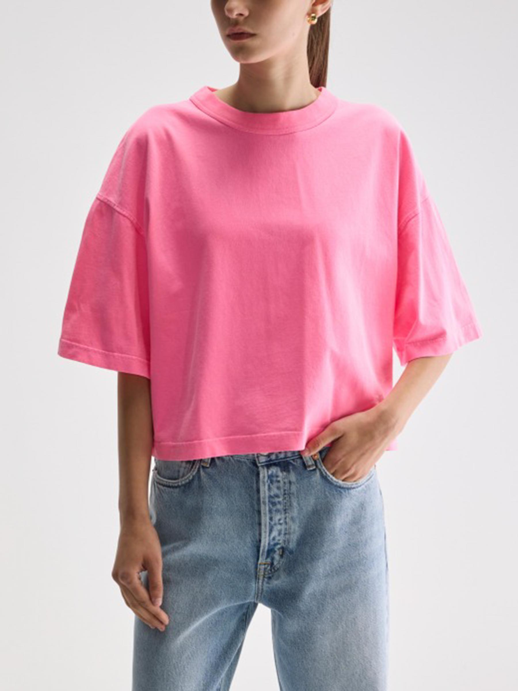 Dit neonroze t-shirt van Bellerose is een echte eyecatcher. De relaxte fit en de frisse kleur maken dit shirt perfect voor zonnige dagen en casual looks met een beetje lef. Leuk op een jeans of onder een open blouse voor een speels laagje.