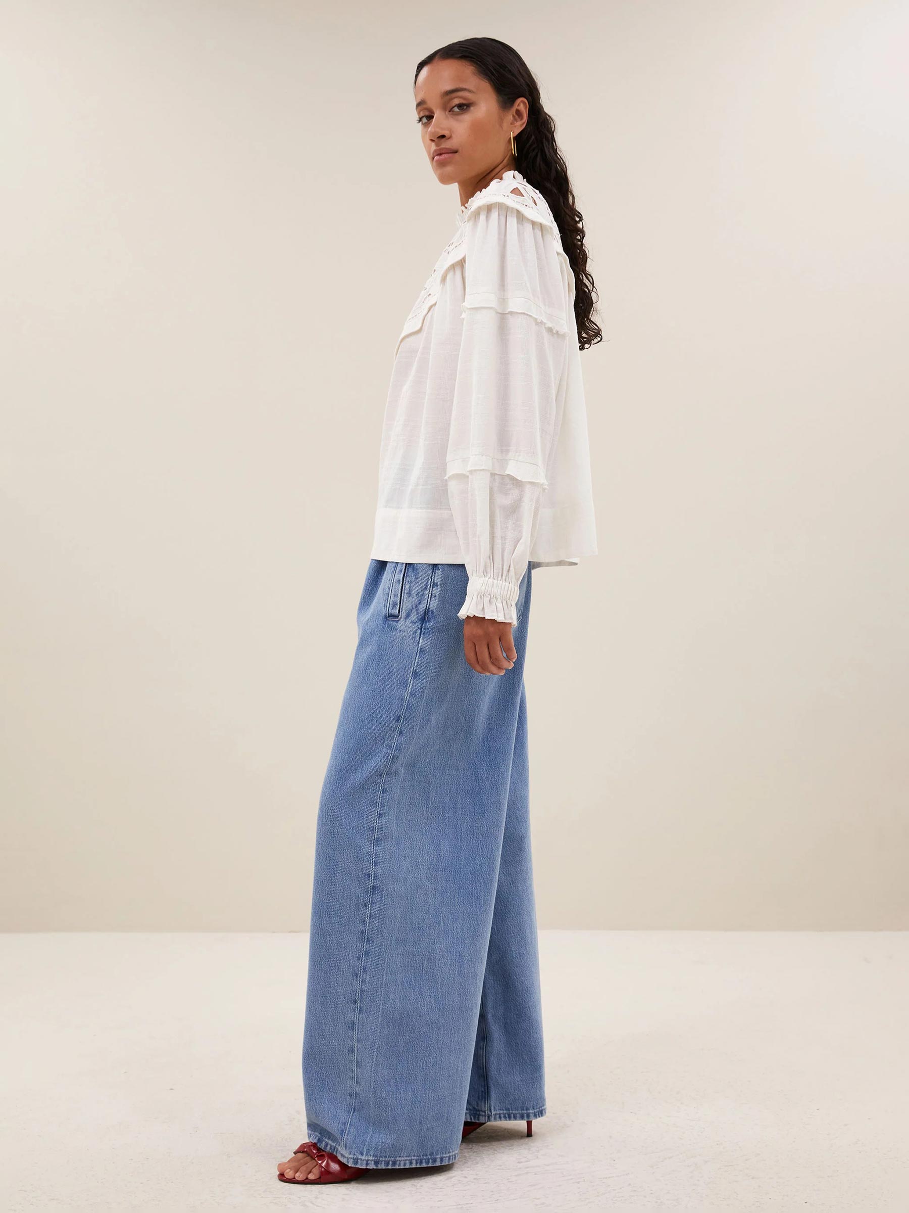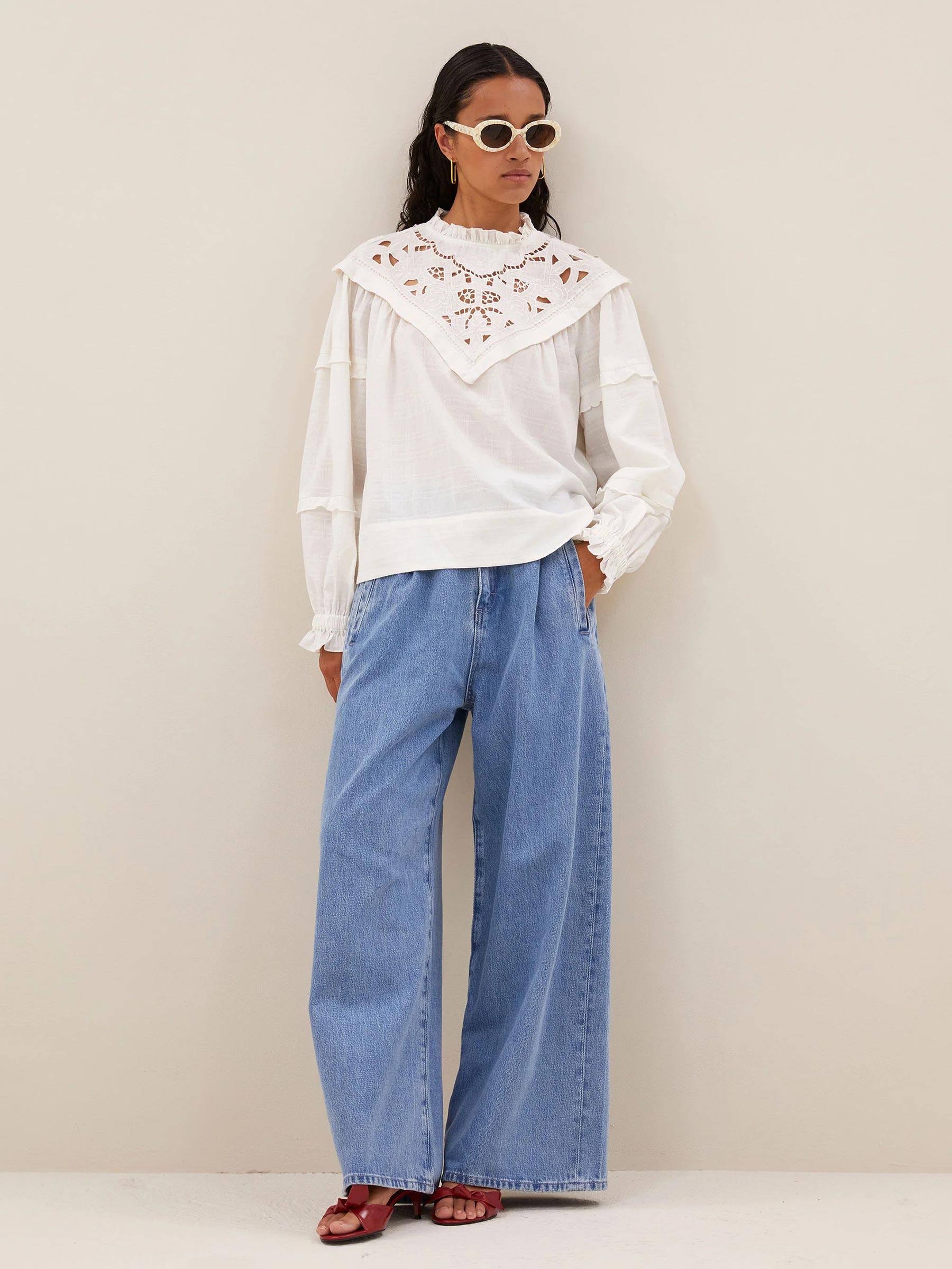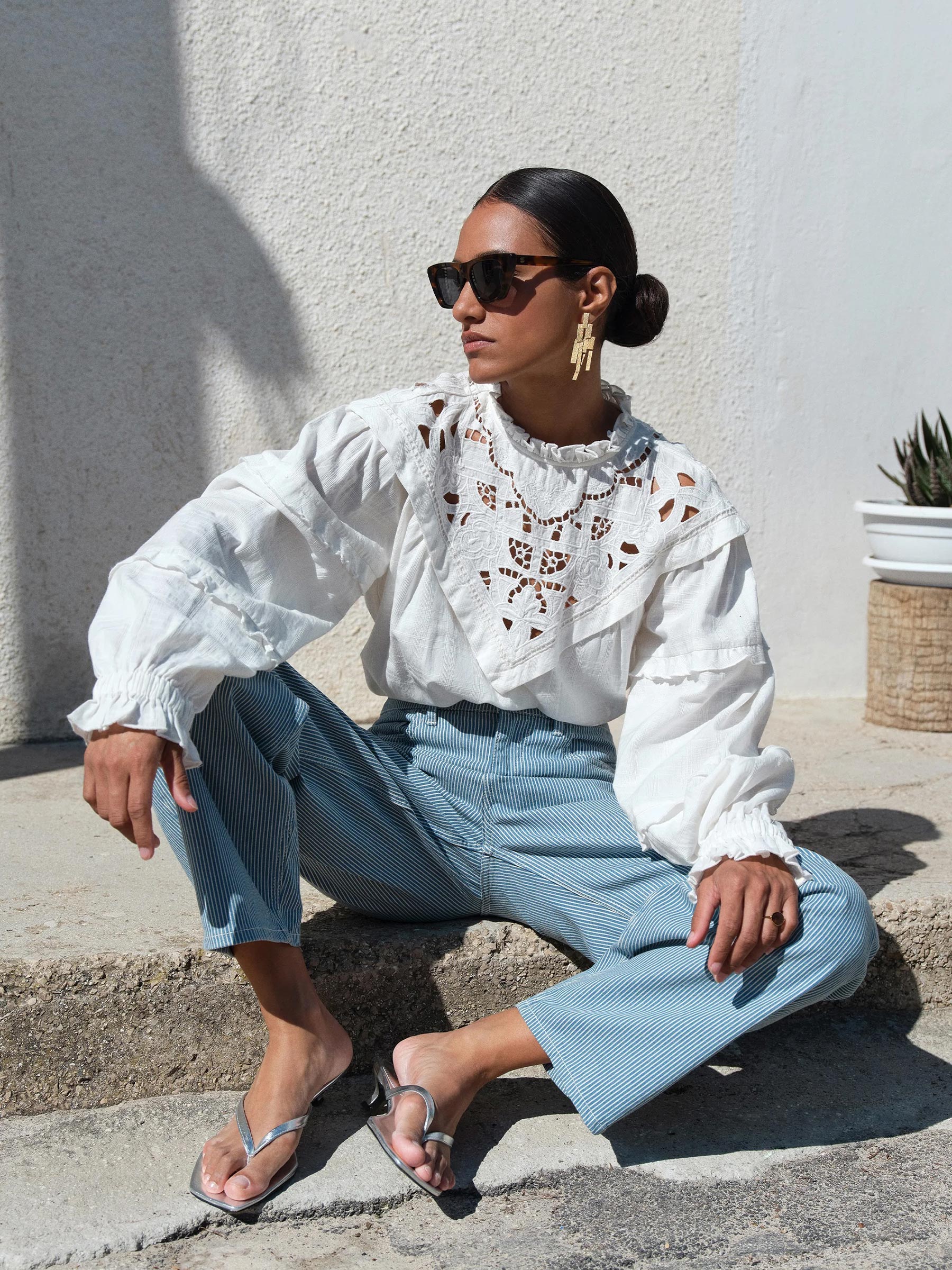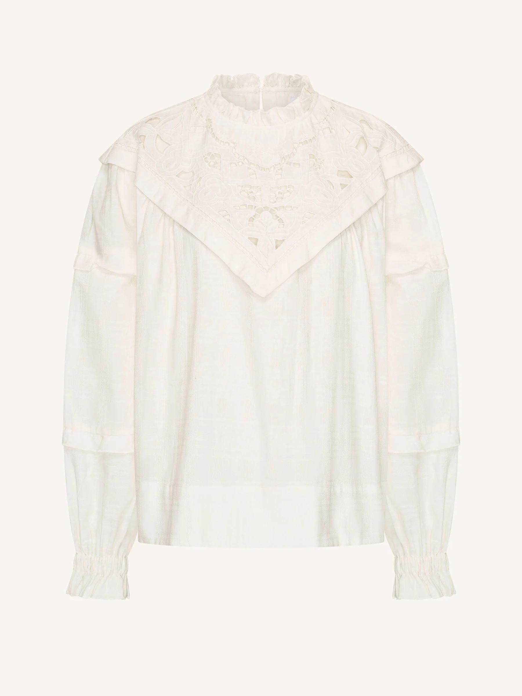 Deze off-white blouse van by-bar is perfect voor dagen waarop je outfit luchtig en vrouwelijk mag aanvoelen. Mooie broderie details, fijne structuur en lekker veel karakter in één item. Draag haar op een denim of juist chic in een pantalon voor een easy maar opvallende look.