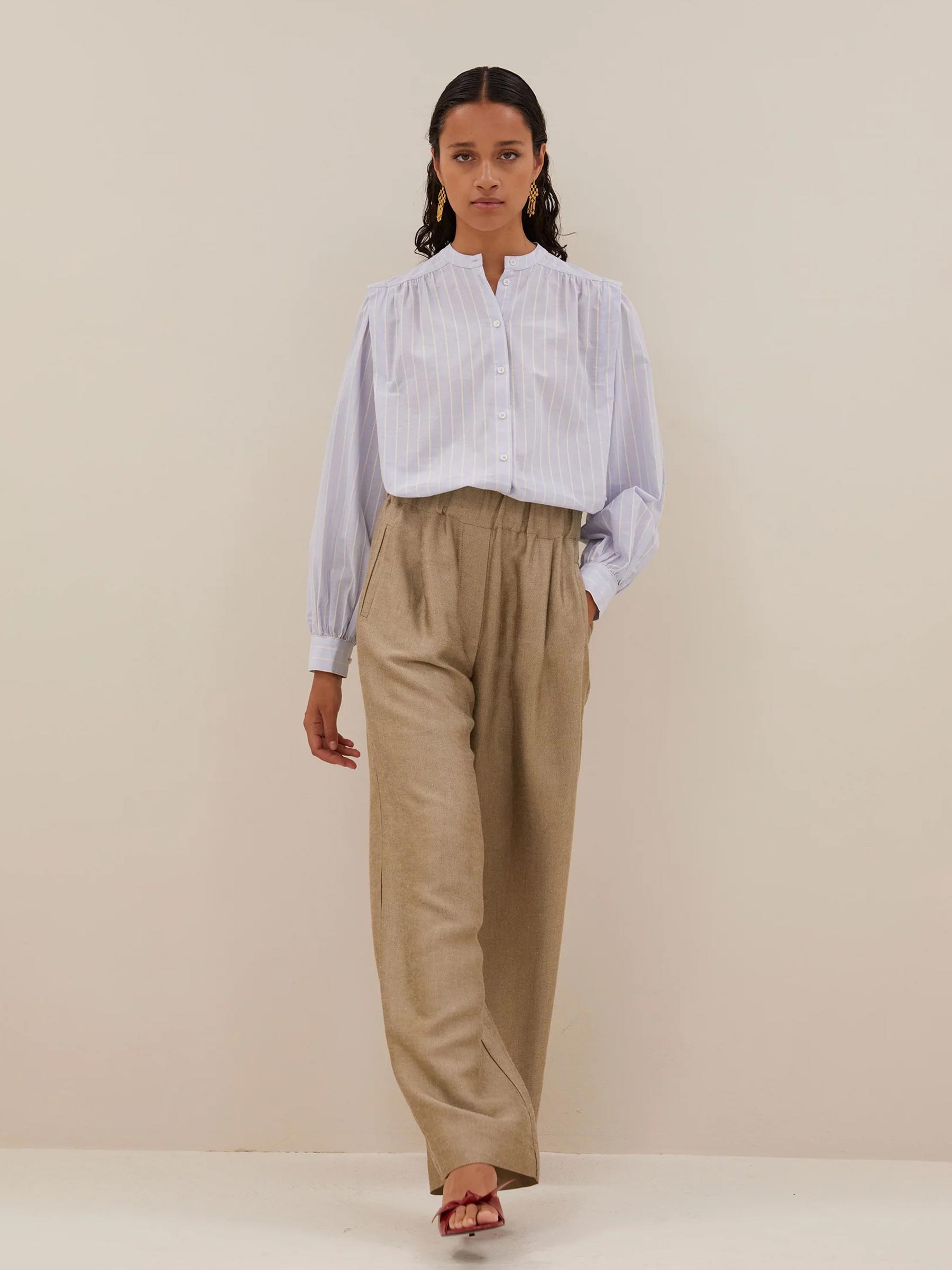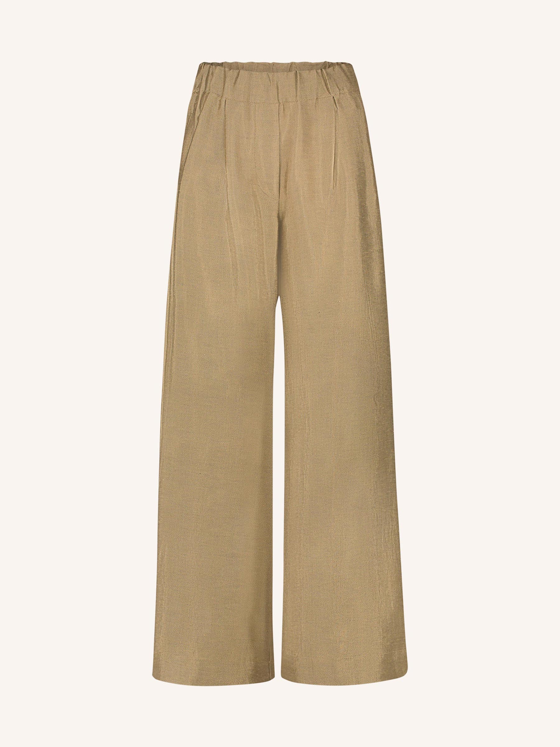 Deze goudkleurige broek van By-bar Amsterdam is een fijne keuze voor dagen waarop comfort en uitstraling samenkomen. De soepel vallende stof, subtiele plooien en elastische tailleband geven de broek een relaxte look die je net zo makkelijk casual als gekleed combineert. Draag met een luchtige blouse of knit en je bent meteen klaar voor werk, stad of diner.
