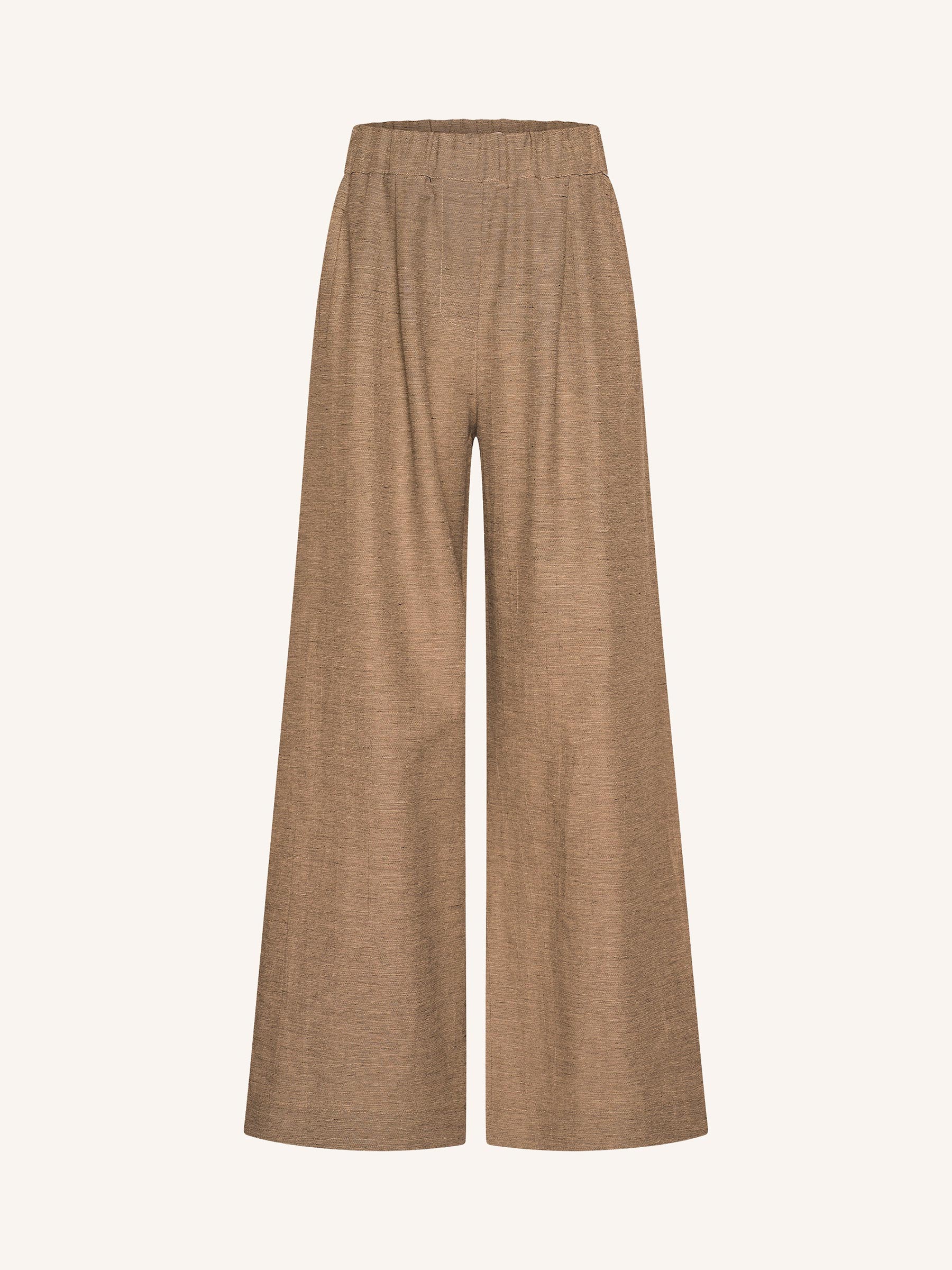 Deze bruine broek van By-bar is perfect voor dagen waarop je comfort wil, maar er ook lekker verzorgd uit wil zien. De hoge taille en losvallende pasvorm geven je outfit meteen een relaxte look, en die linnenmix draagt heerlijk licht. Zo een item dat je blijft pakken, doordeweeks en in het weekend.