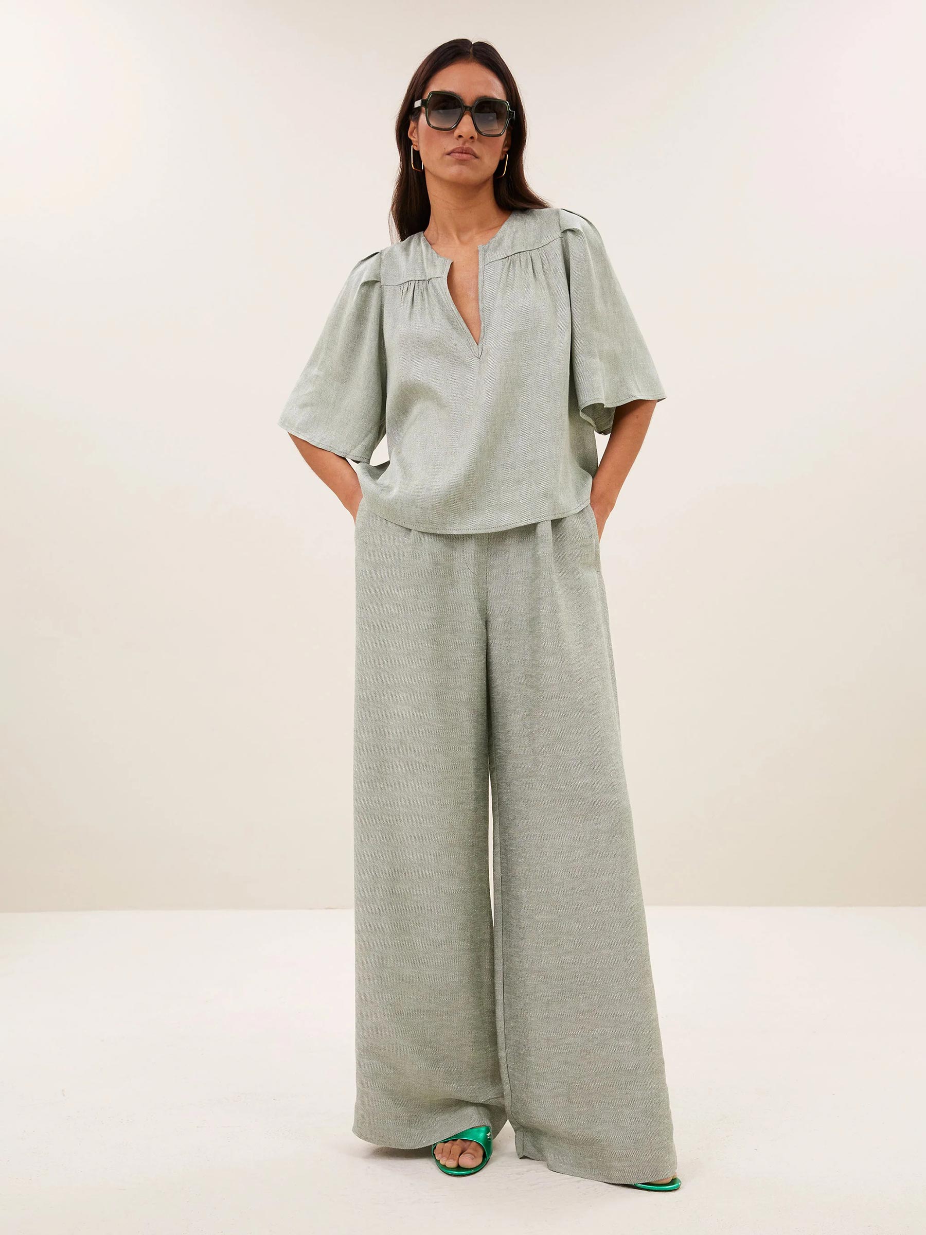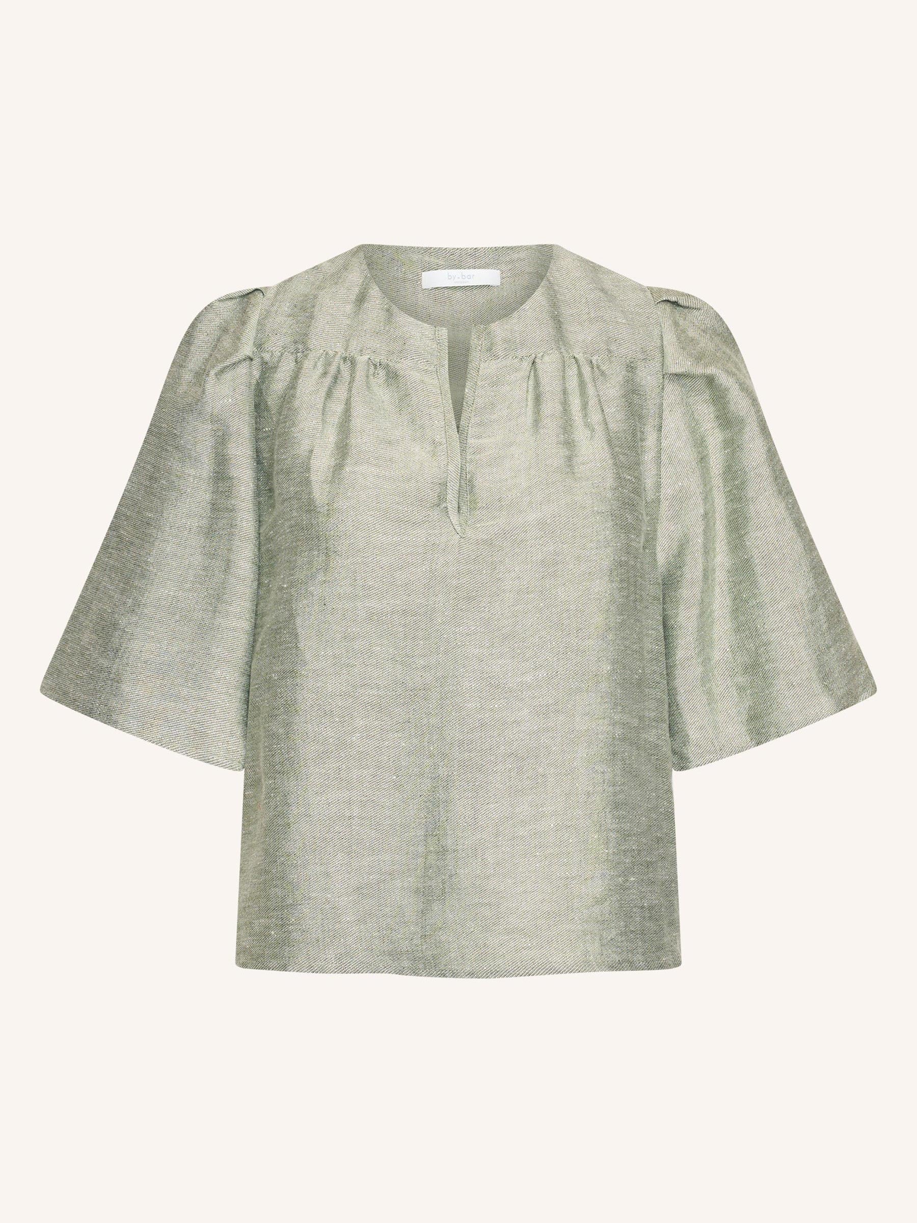 Deze lichtgroene blouse van By-bar geeft je outfit meteen een frisse uitstraling. De luchtige stof, subtiele plooien en wijde mouwen zorgen voor een zachte lente look.