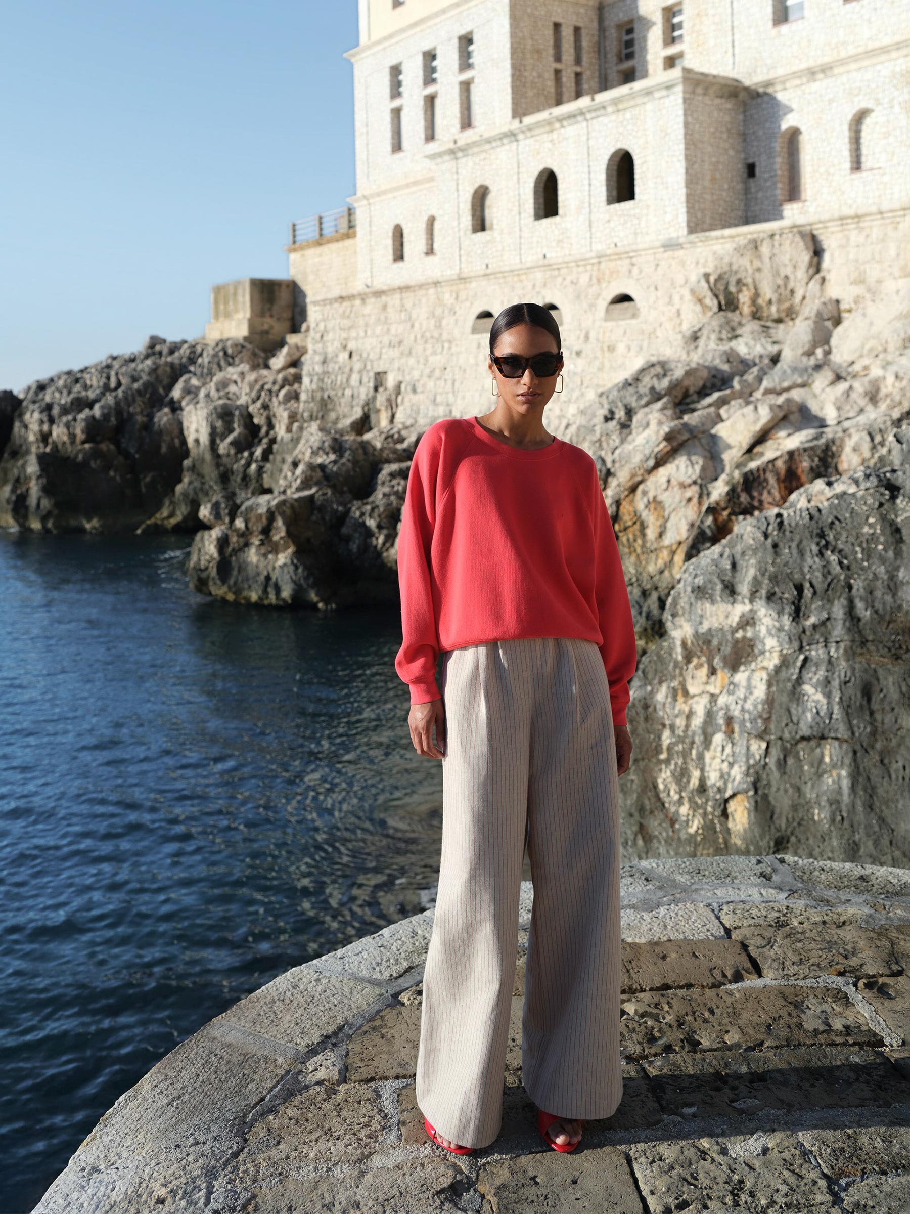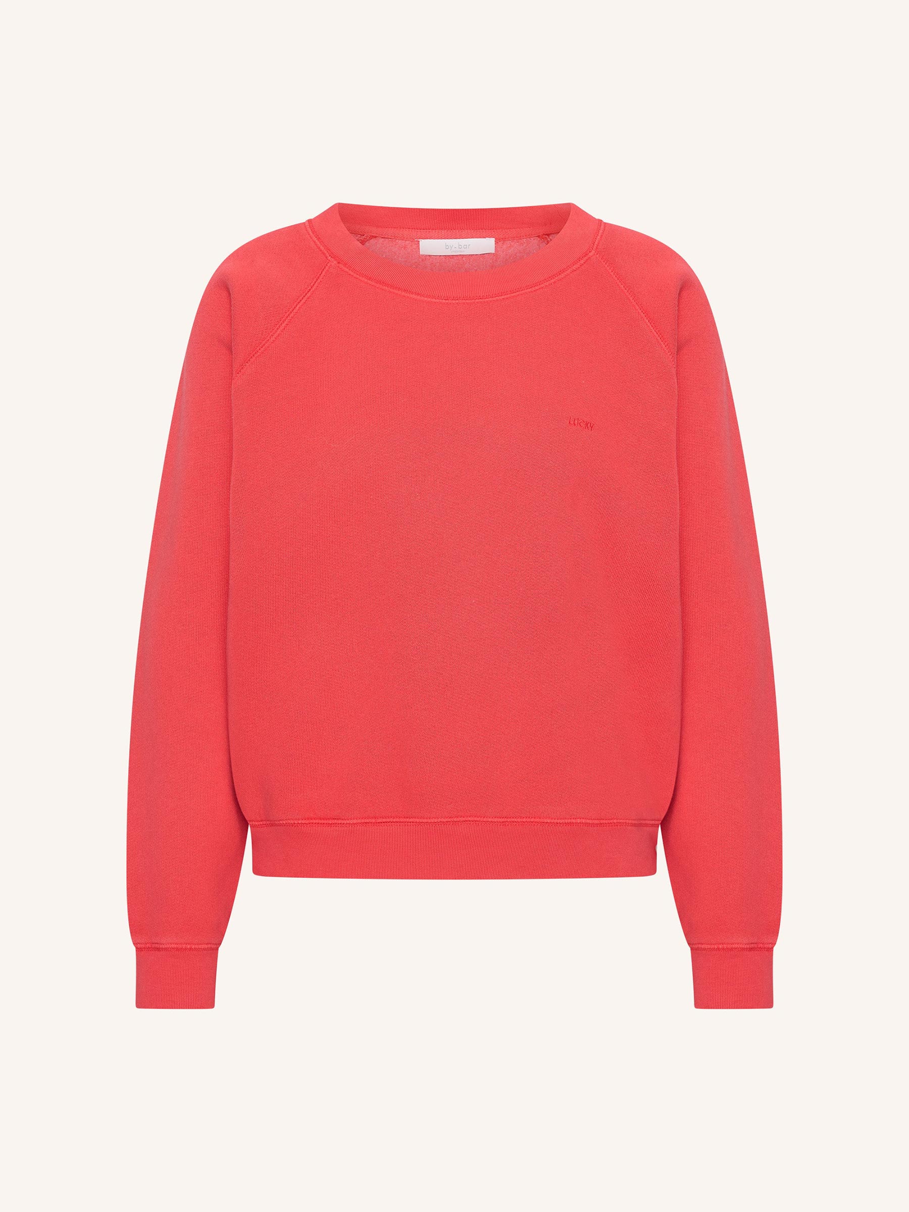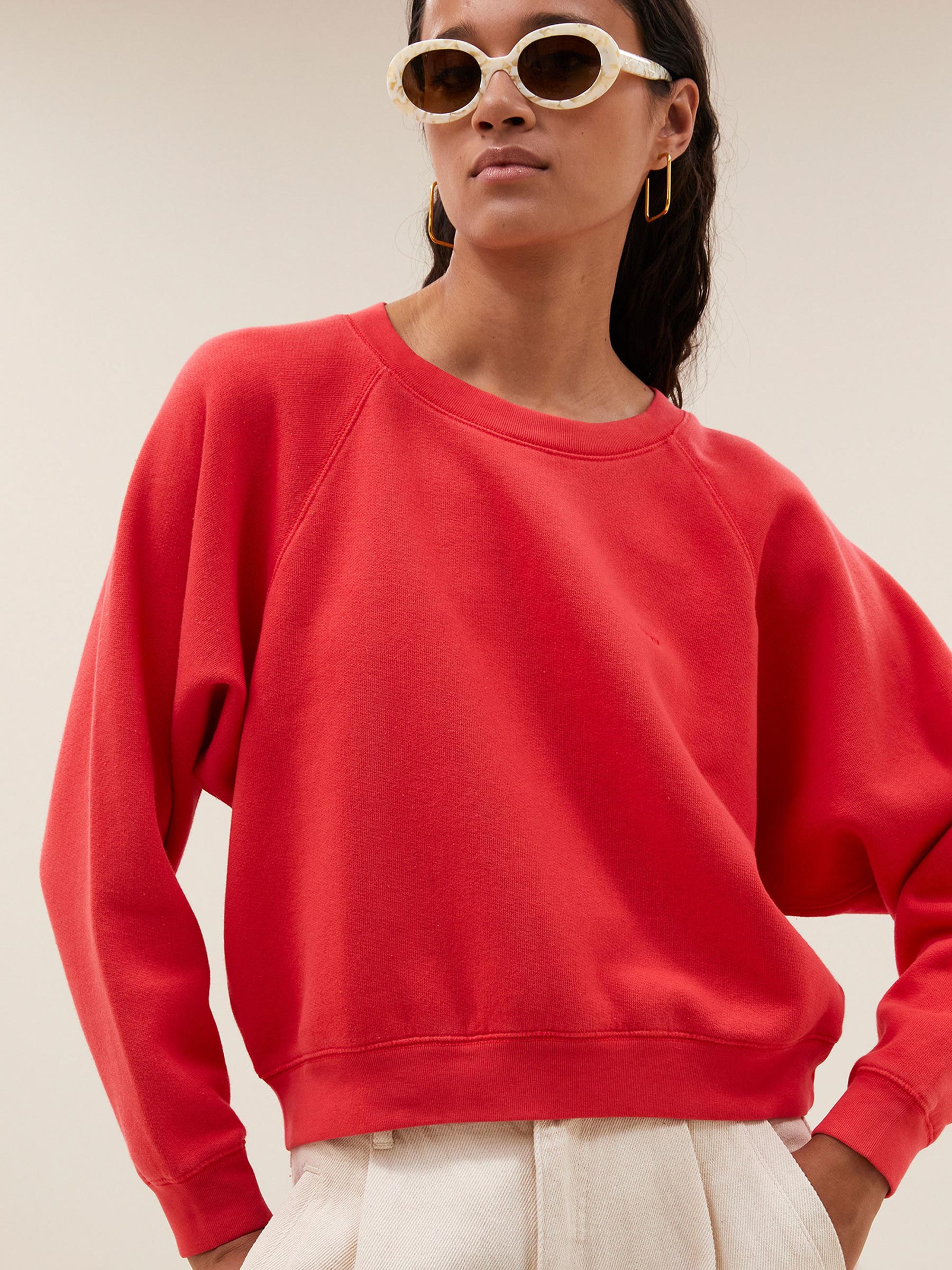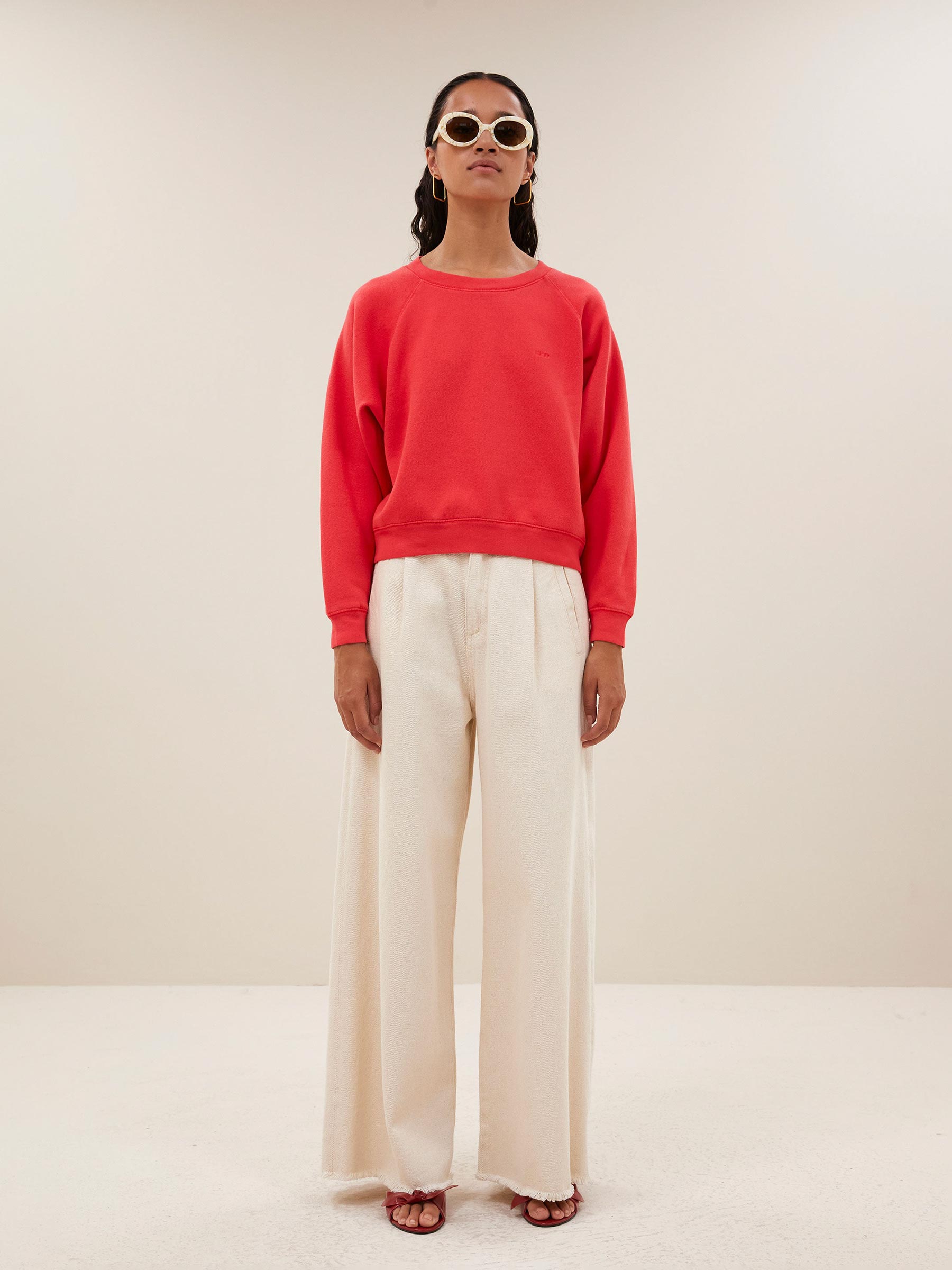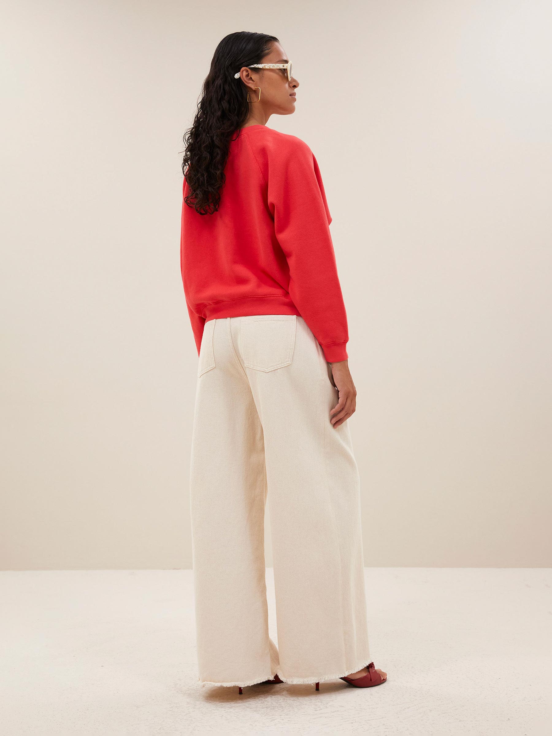 Deze poppy red sweater is perfect als je outfit wel wat kleur kan gebruiken en je ook lekker comfy wilt blijven. De oversized fit en verlaagde schoudernaden geven een relaxte look. Zo een item dat je blijft pakken, seizoen na seizoen.