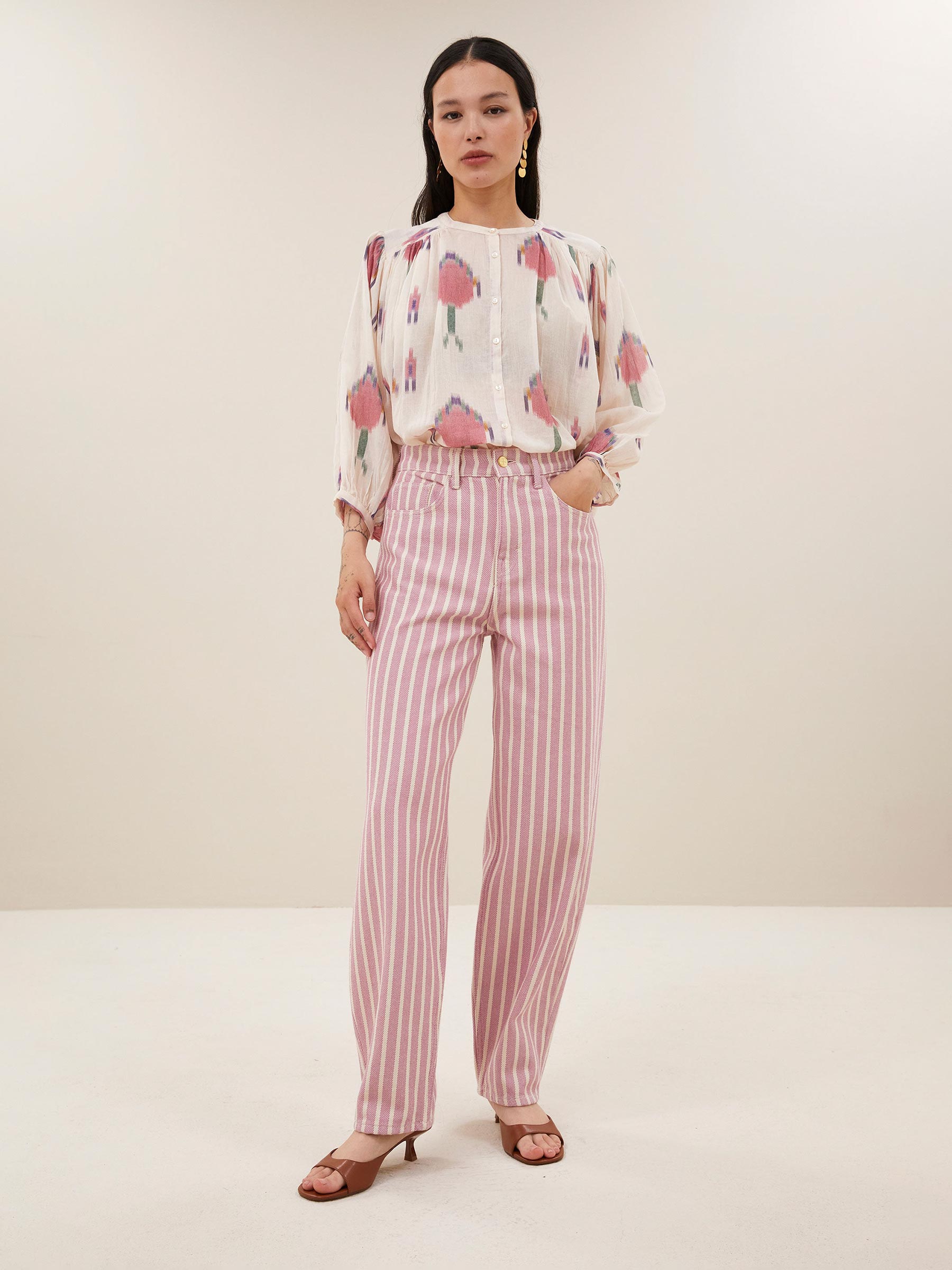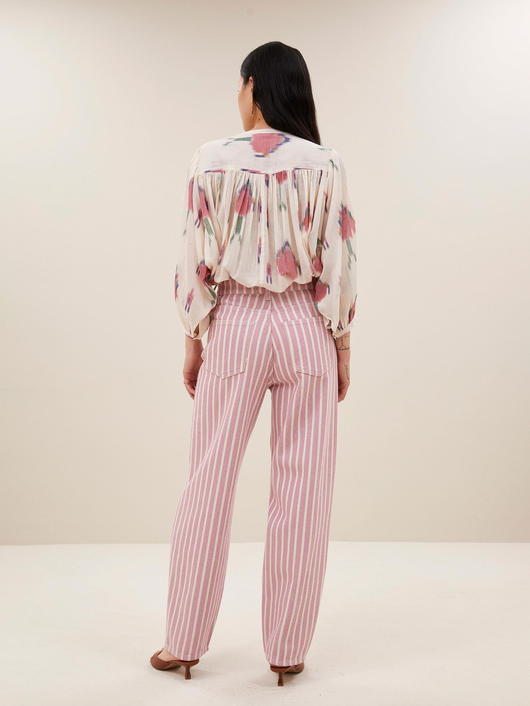 - Pink stripe jeans