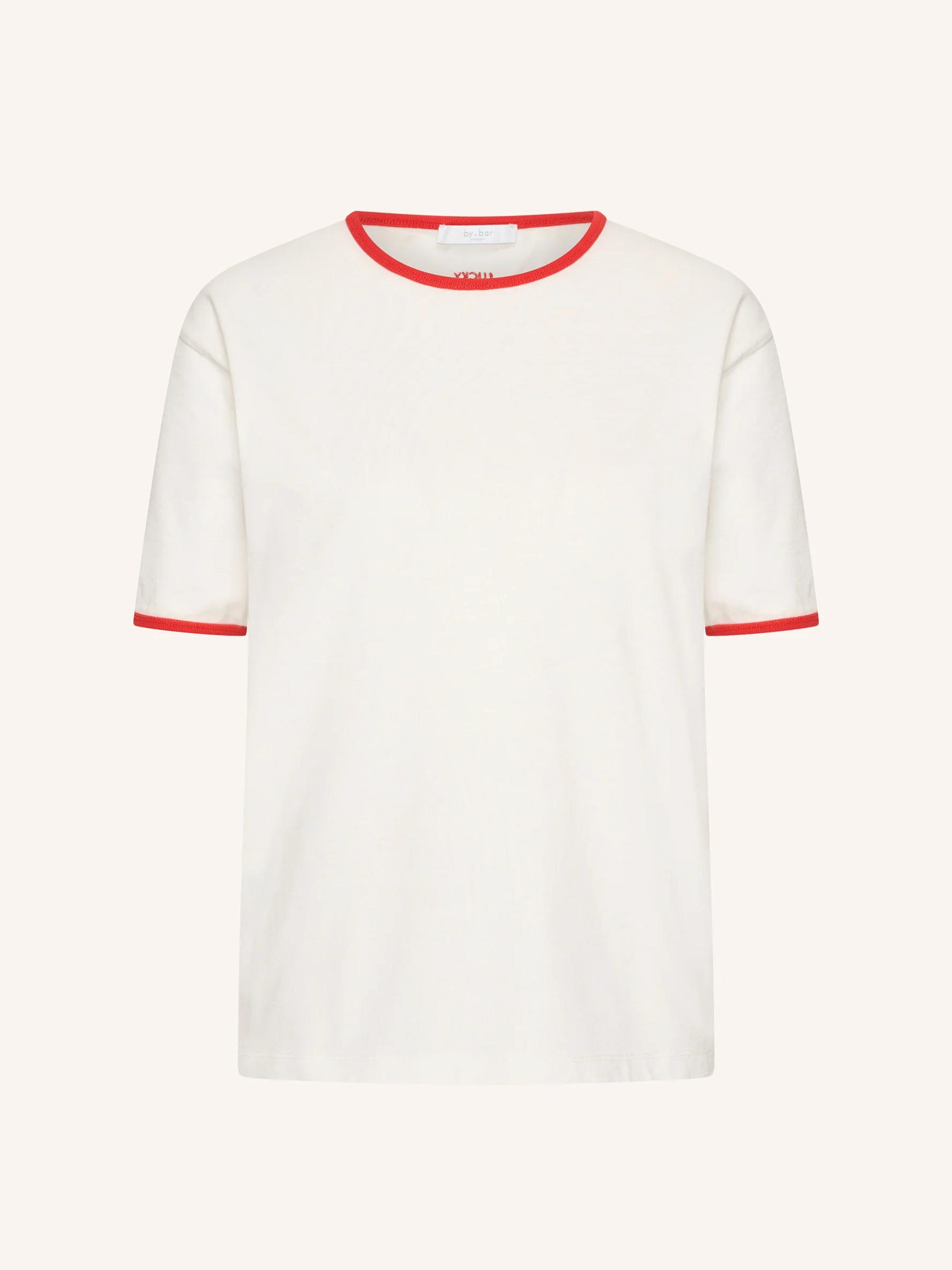 De off-white top Nimes van by-bar is zo'n basic die je altijd nodig hebt. Clean, minimalistisch en gemaakt van zacht biologisch katoen dat lekker draagt op warme dagen. Dit shirt wordt geproduceerd bij een Portugees familiebedrijf waarmee By-bar al meer dan tien jaar samenwerkt.