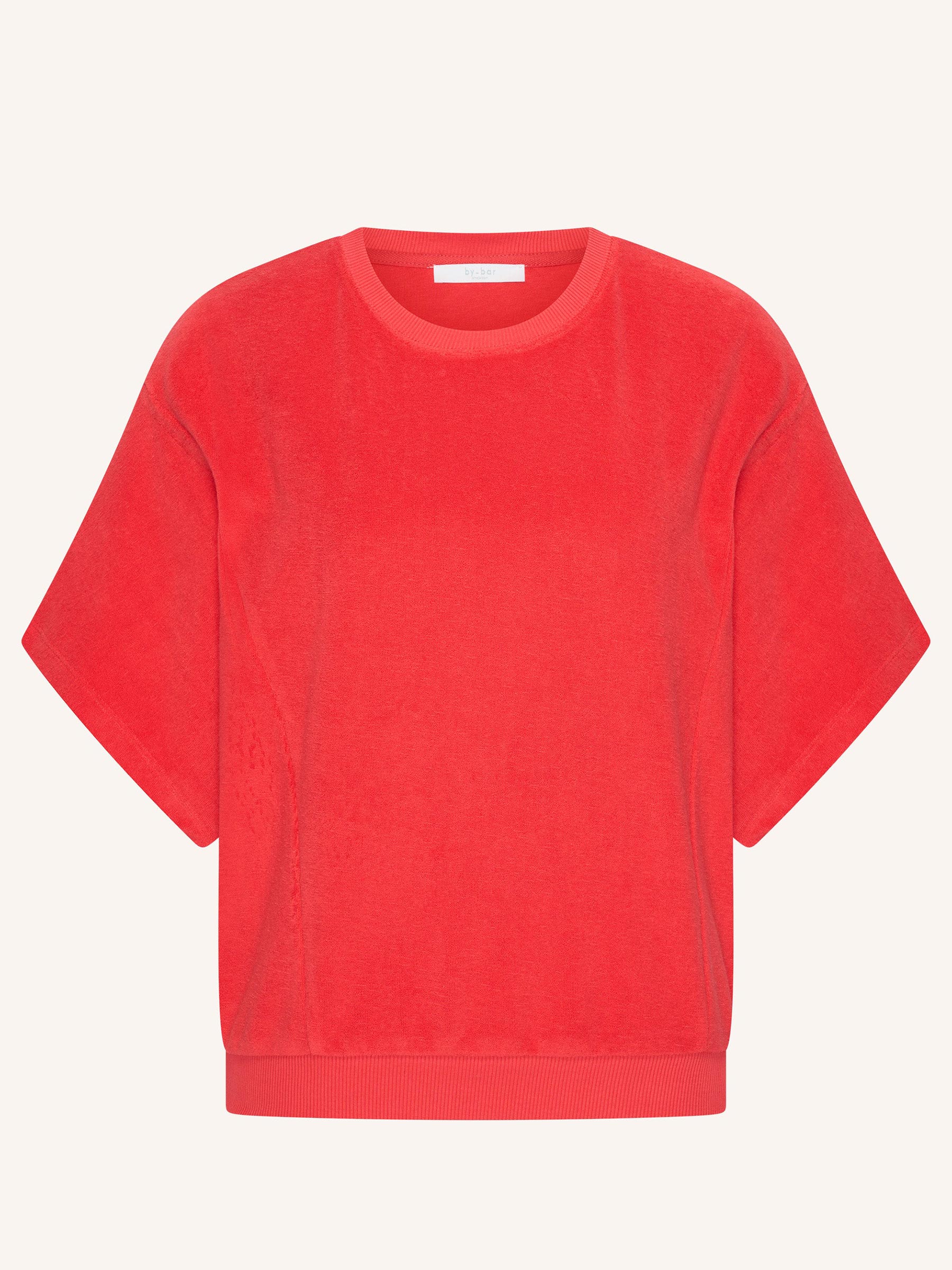 Deze rode top van by-bar is perfect voor dagen waarop je outfit wel wat kleur kan gebruiken. De zachte slub jersey draagt supercomfortabel en de relaxte fit maakt dit item ideaal voor elke dag!