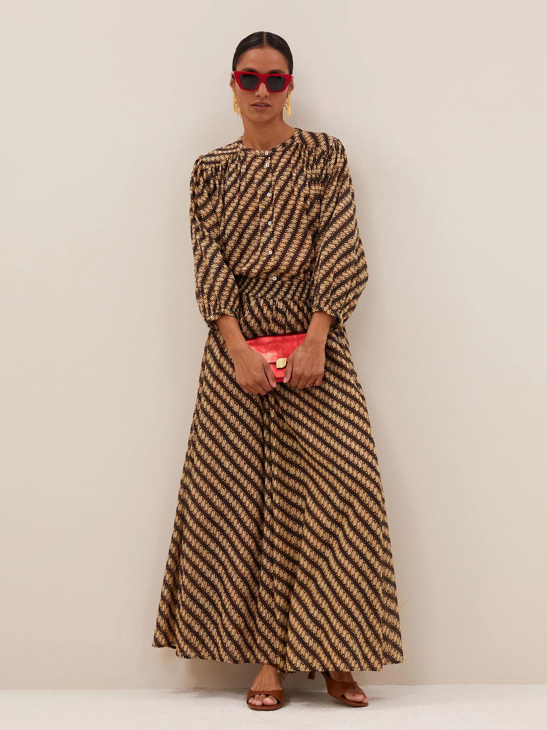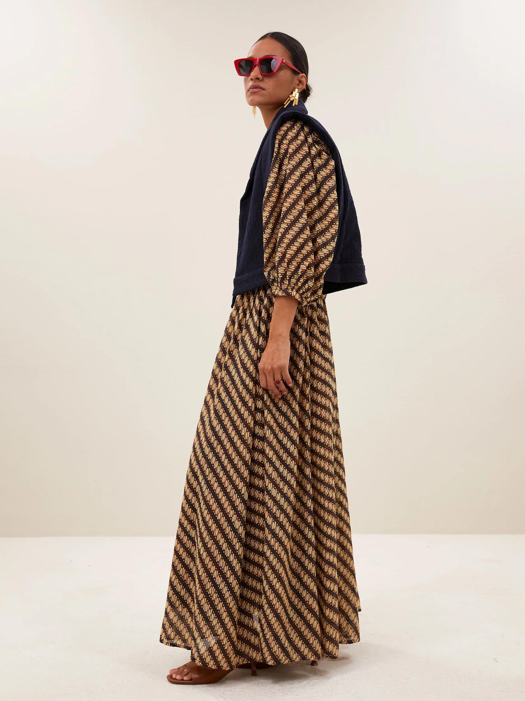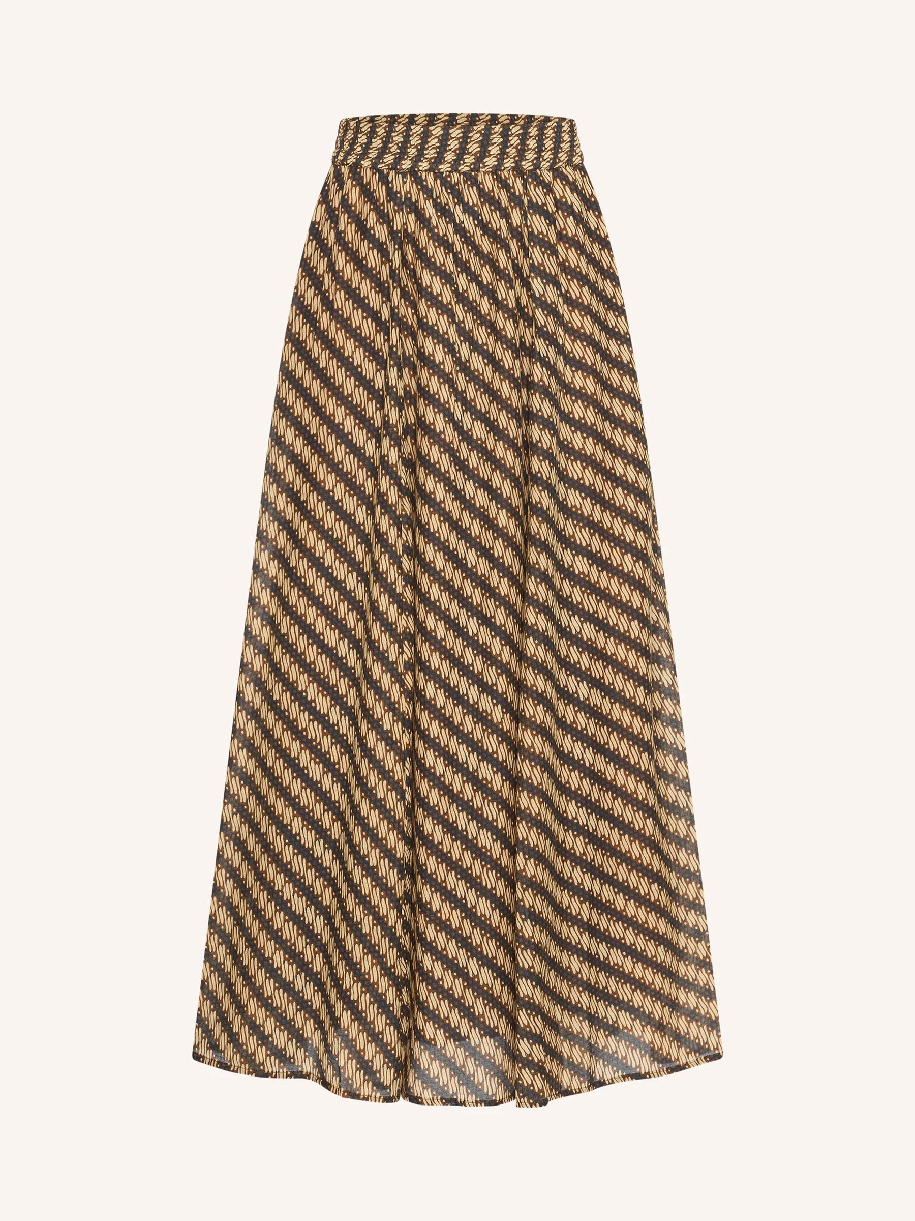 Deze manilla print maxi rok van By-bar Amsterdam geeft je outfit meteen een stijlvolle en luchtige uitstraling. De soepel vallende stof en lange lengte zorgen voor een elegante look die tegelijk heerlijk comfortabel draagt. Perfect te combineren met een blouse of simpele top voor een outfit die je moeiteloos de hele dag draagt.