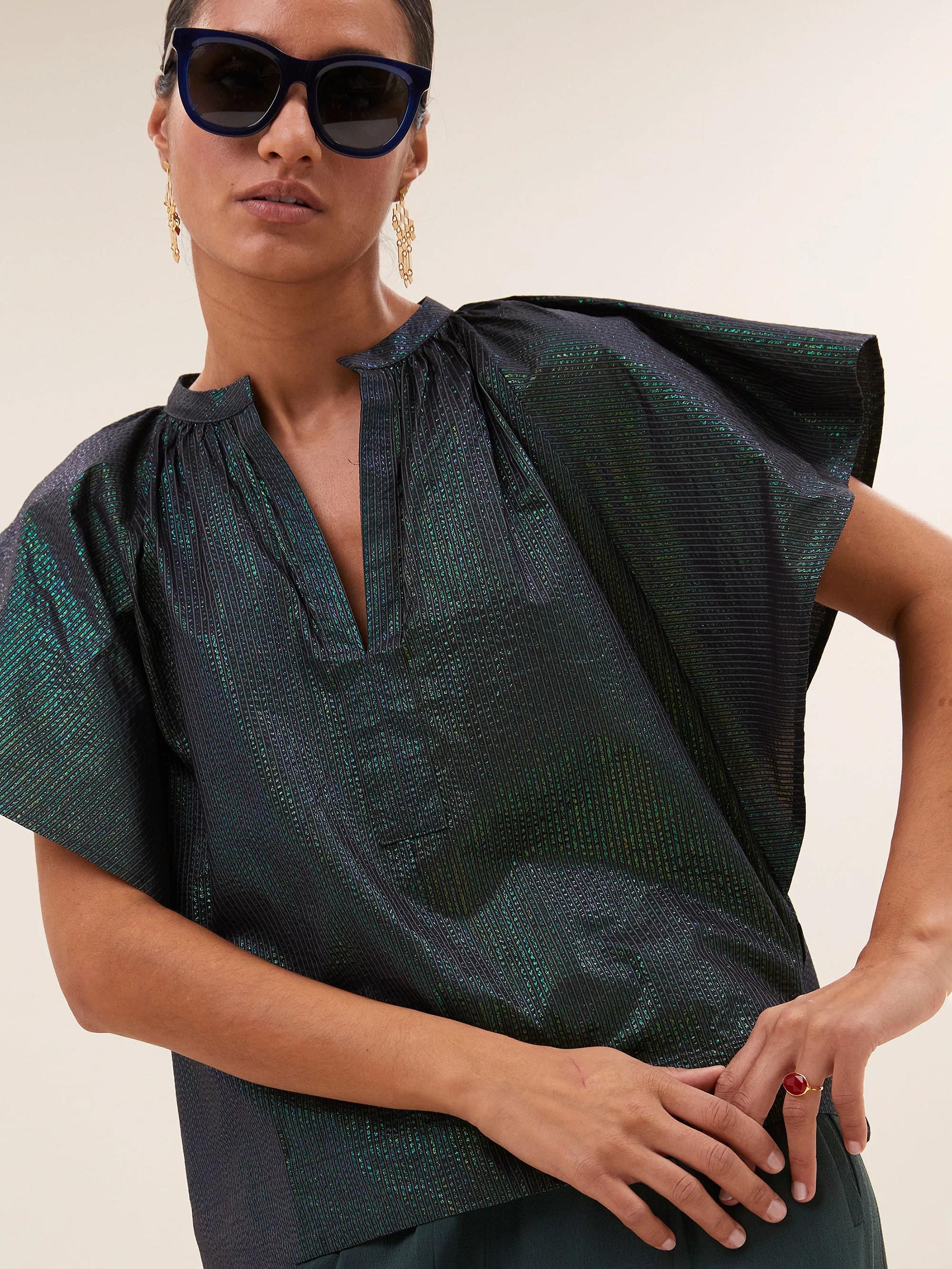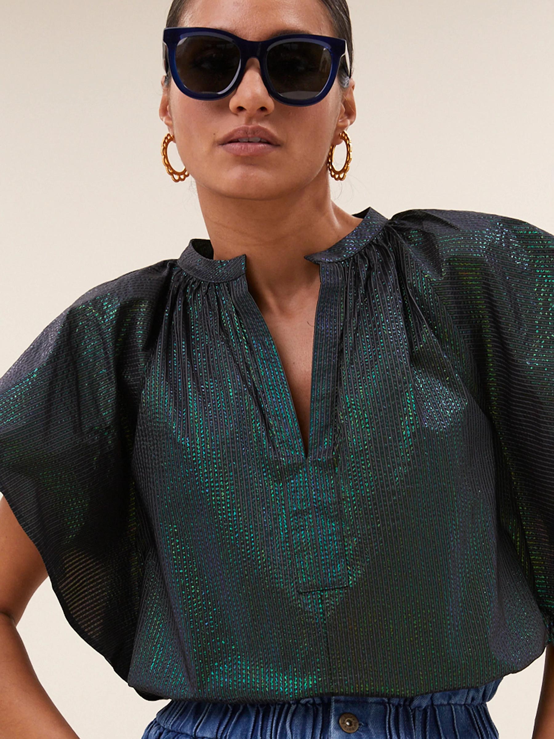 Deze donkergroene blouse van By-Bar is een echte eye-catcher en perfect voor een feestelijke gelegenheid! De top is gemaakt van een hoge kwaliteit polyester en heeft een korte fit, dit zorgt voor een speelse, chique twist. Combineer de blouse met een jeans of pantalon.