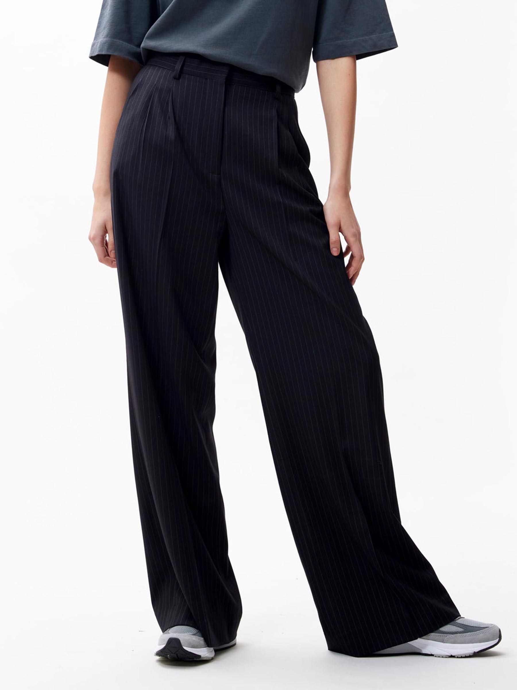 Deze zwarte straight-leg pantalon met krijtstrepen is de perfecte basic voor in je garderobe! De broek van Catwalk Junkie heeft plooien aan de voorkant, steekzakken en sluit met een rits.