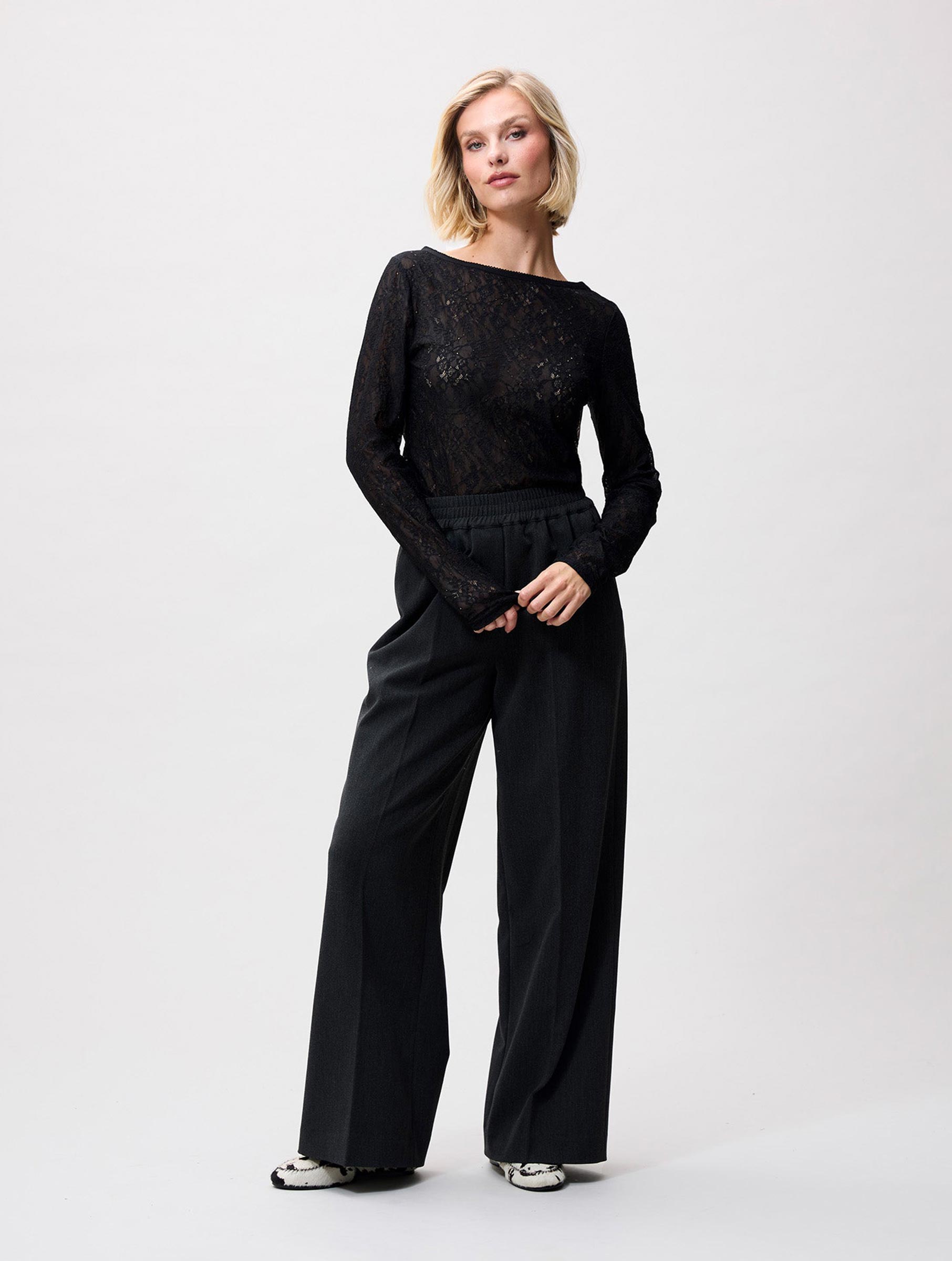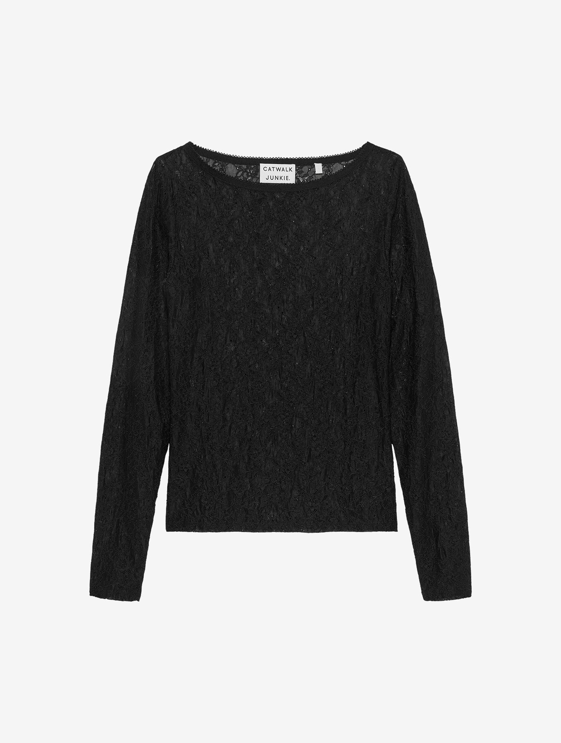 Deze zwarte kanten top van Catwalk Junkie straalt subtiele allure uit. De transparante stof en boothals geven een verfijnde uitstraling die zowel stoer als vrouwelijk aanvoelt. Style op een mooie pantalon of juist op een stoere jeans!