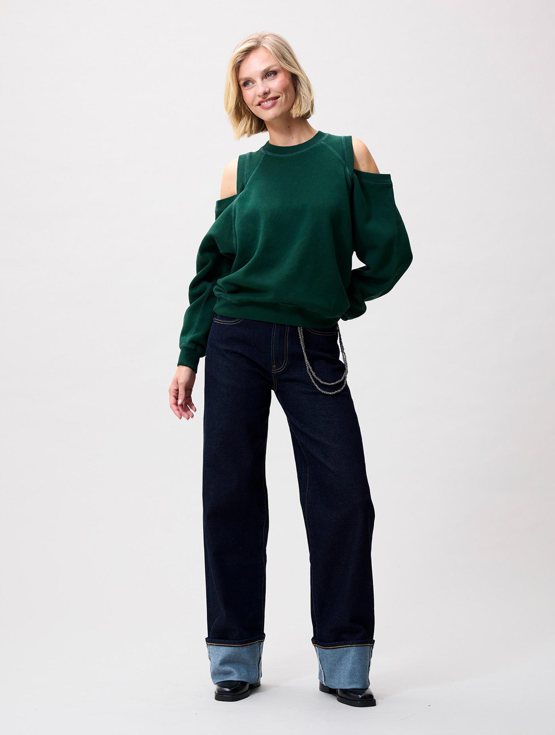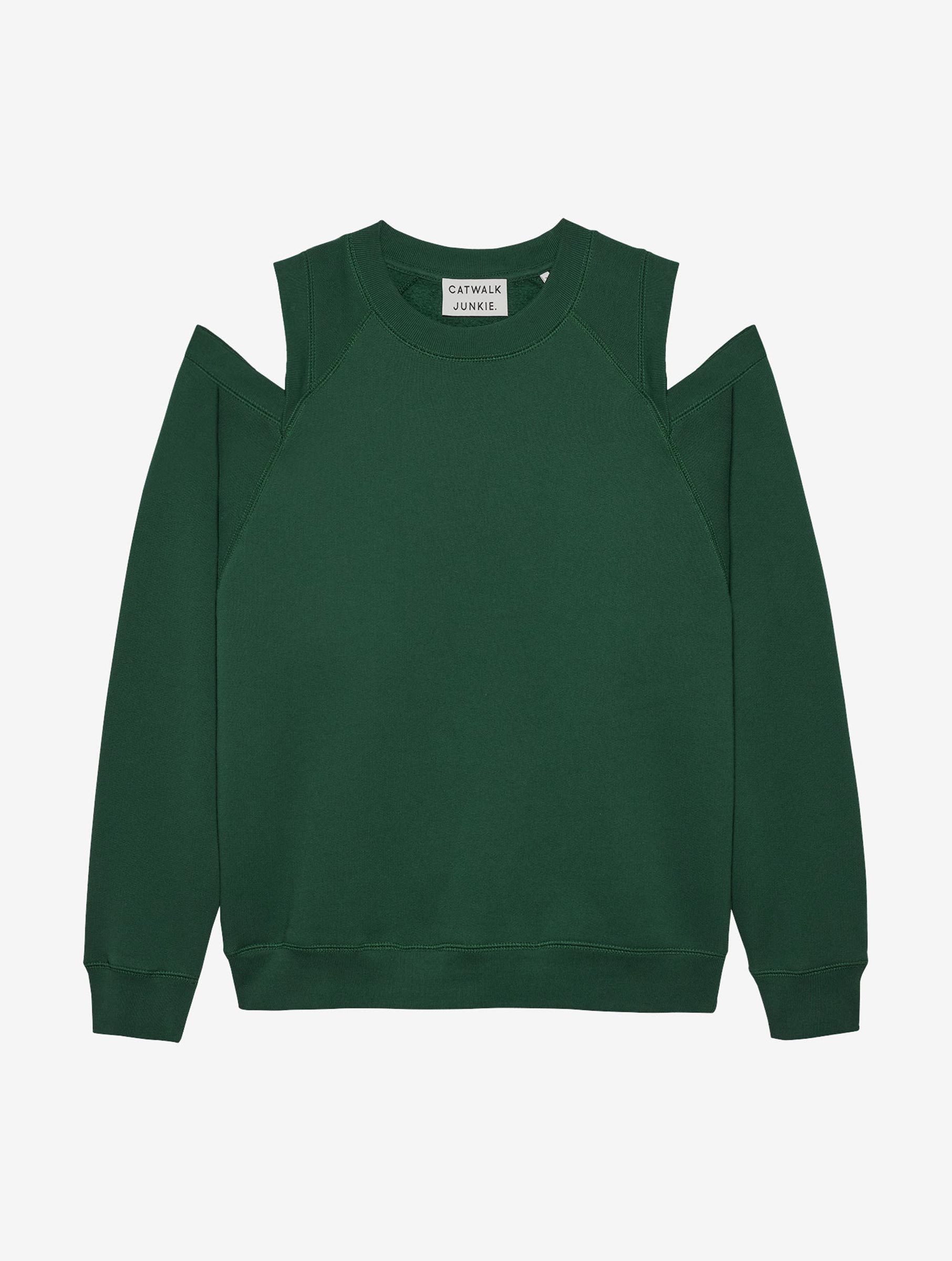 Dit groene sweatshirt van Catwalk Junkie is net even anders dan anders. De open schouders geven een frisse, toffe look en zorgen voor een fijne balans tussen comfy en cool. Combineer met een stoere jeans en je bent ready to go.