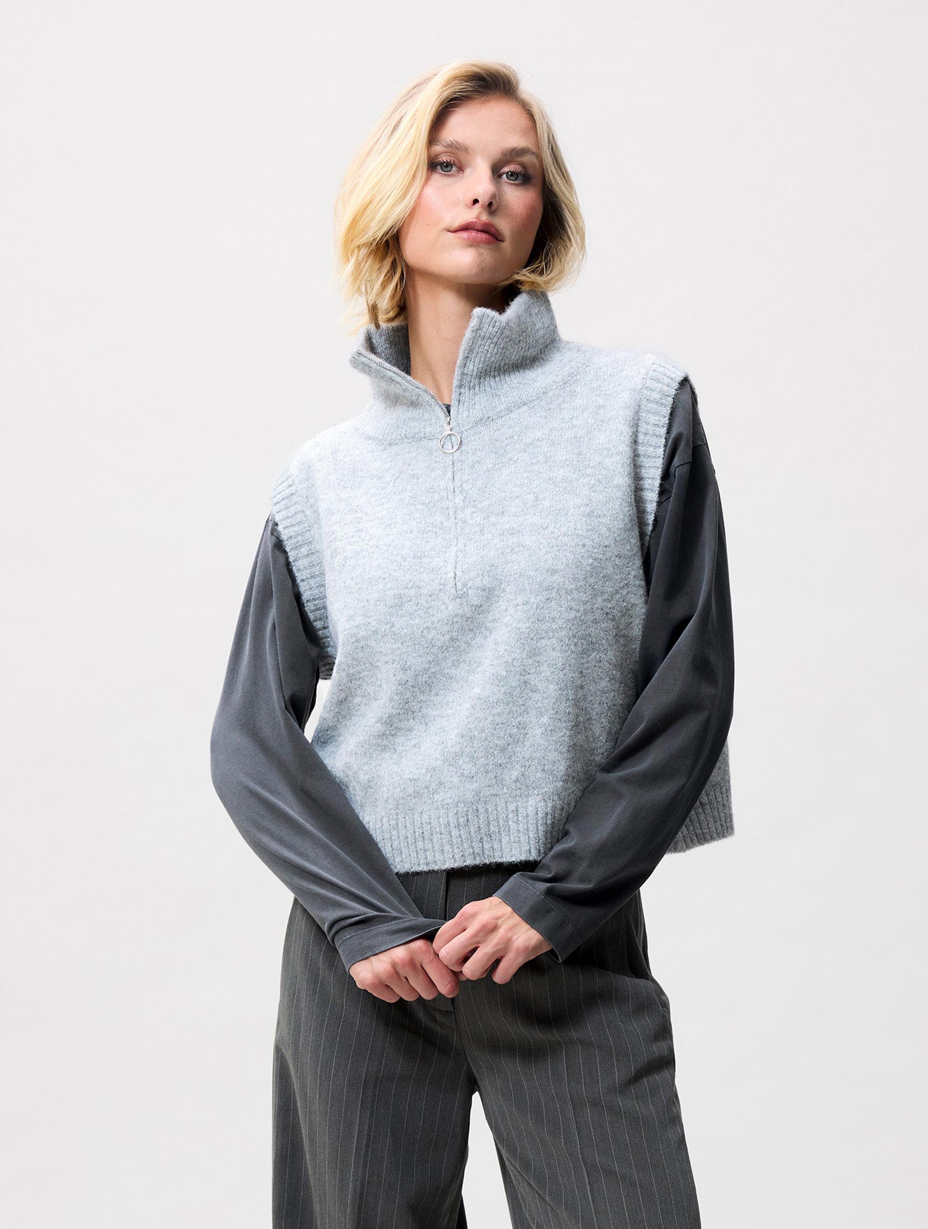 Lichtgrijze half-zip vest