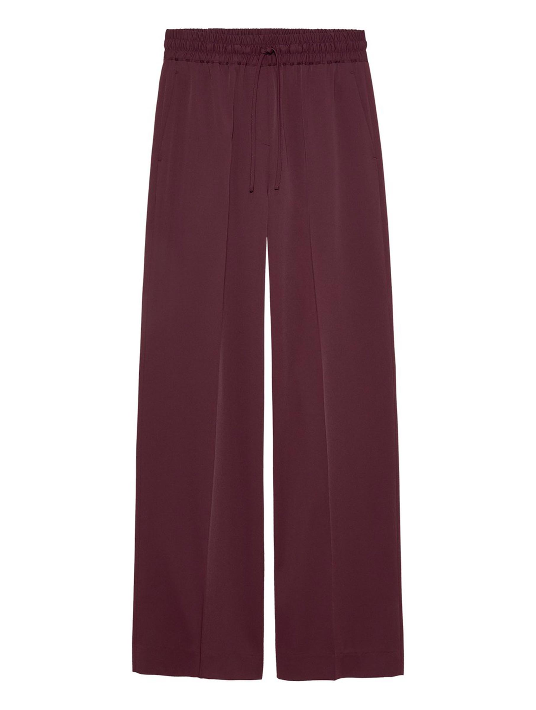 Deze bordeaux pantalon van Catwalk Junkie combineert stijl en comfort in één. De soepele stof en elastische taille met strikceintuur maken ‘m ideaal voor dagen waarop je er goed uit wilt zien zonder moeite. Draag met een witte blouse of knit voor een relaxed-chique look.