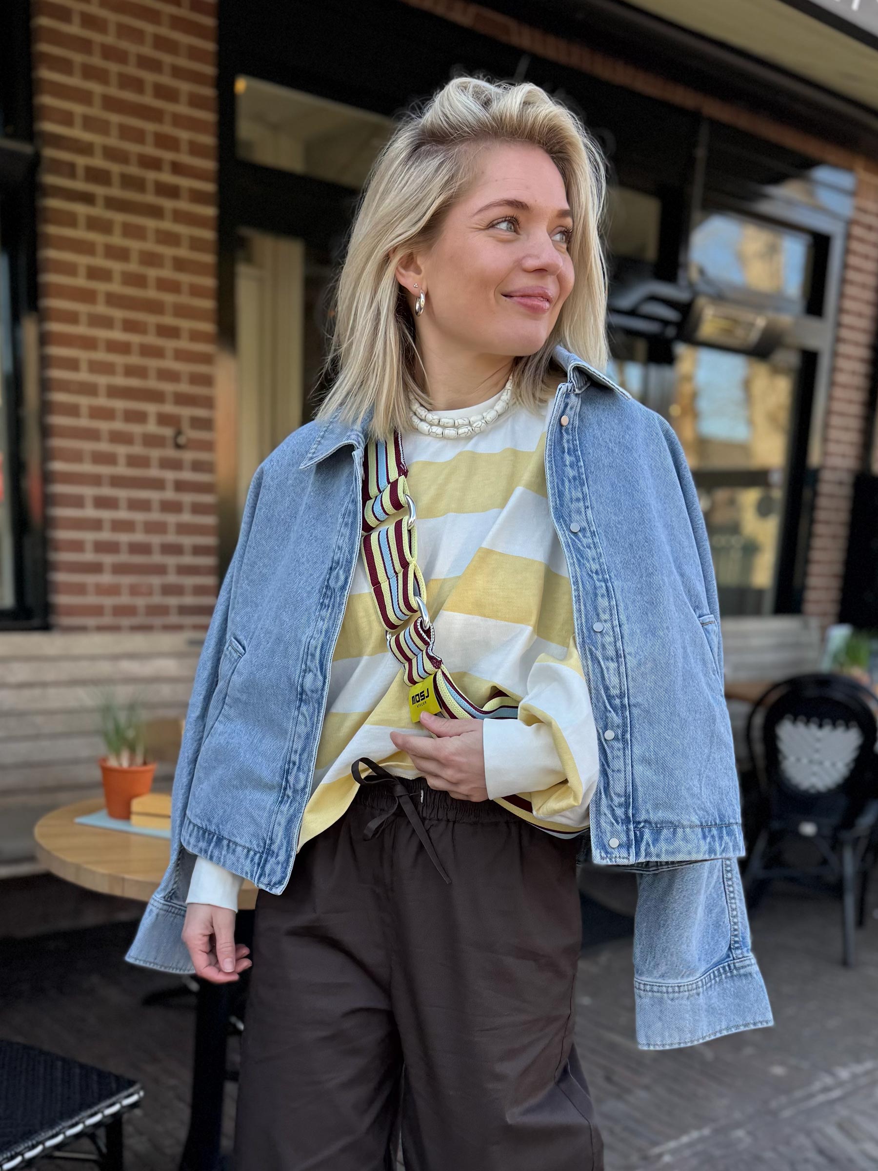 - Geel-wit gestreepte longsleeve