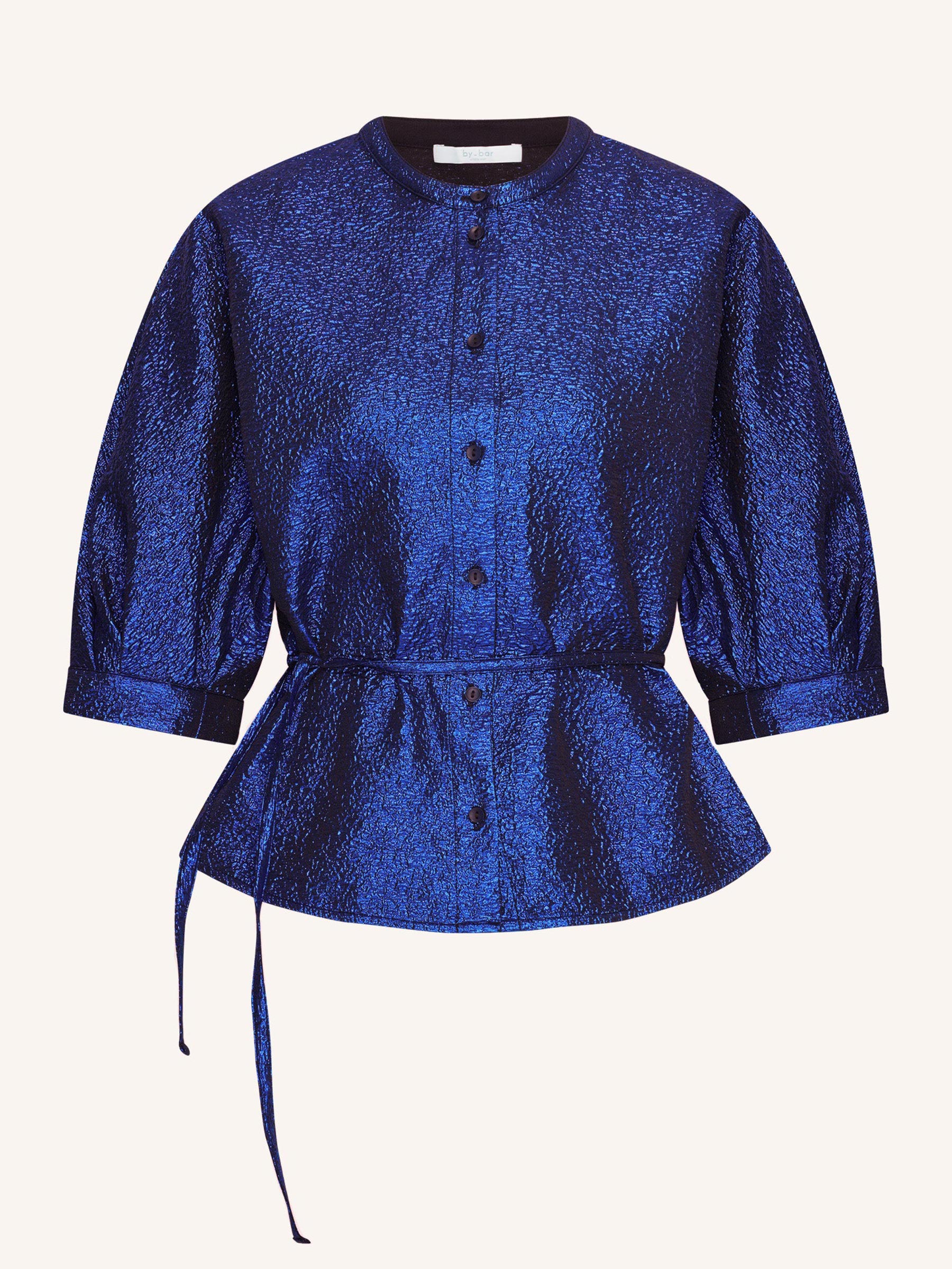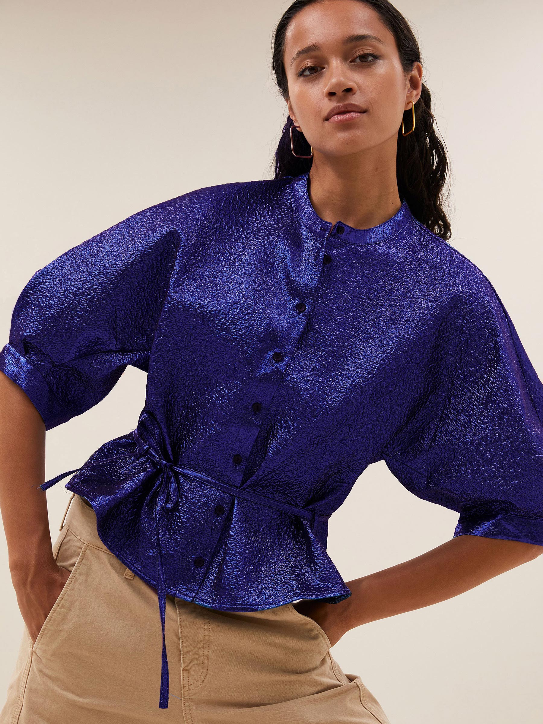 Deze blauwe blouse van by-bar is een item waar je meteen blij van wordt. De metallic glans vangt het licht op een hele mooie manier en de strikceintuur geeft je look net dat extra beetje shape en vrouwelijkheid.