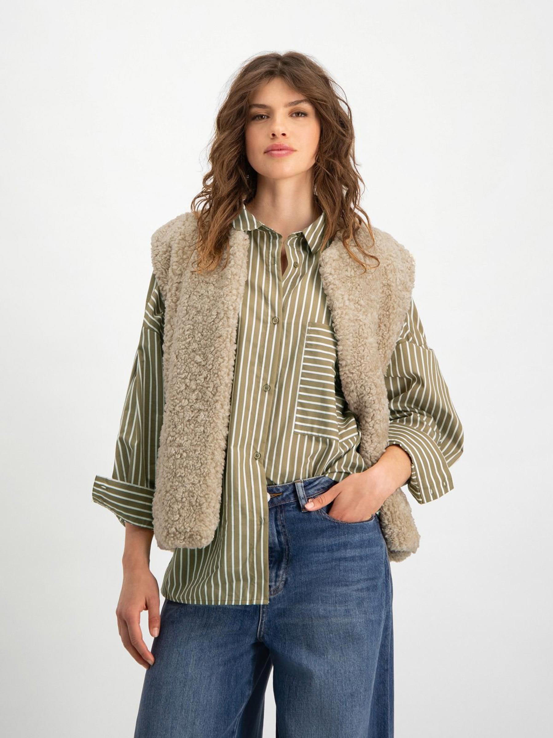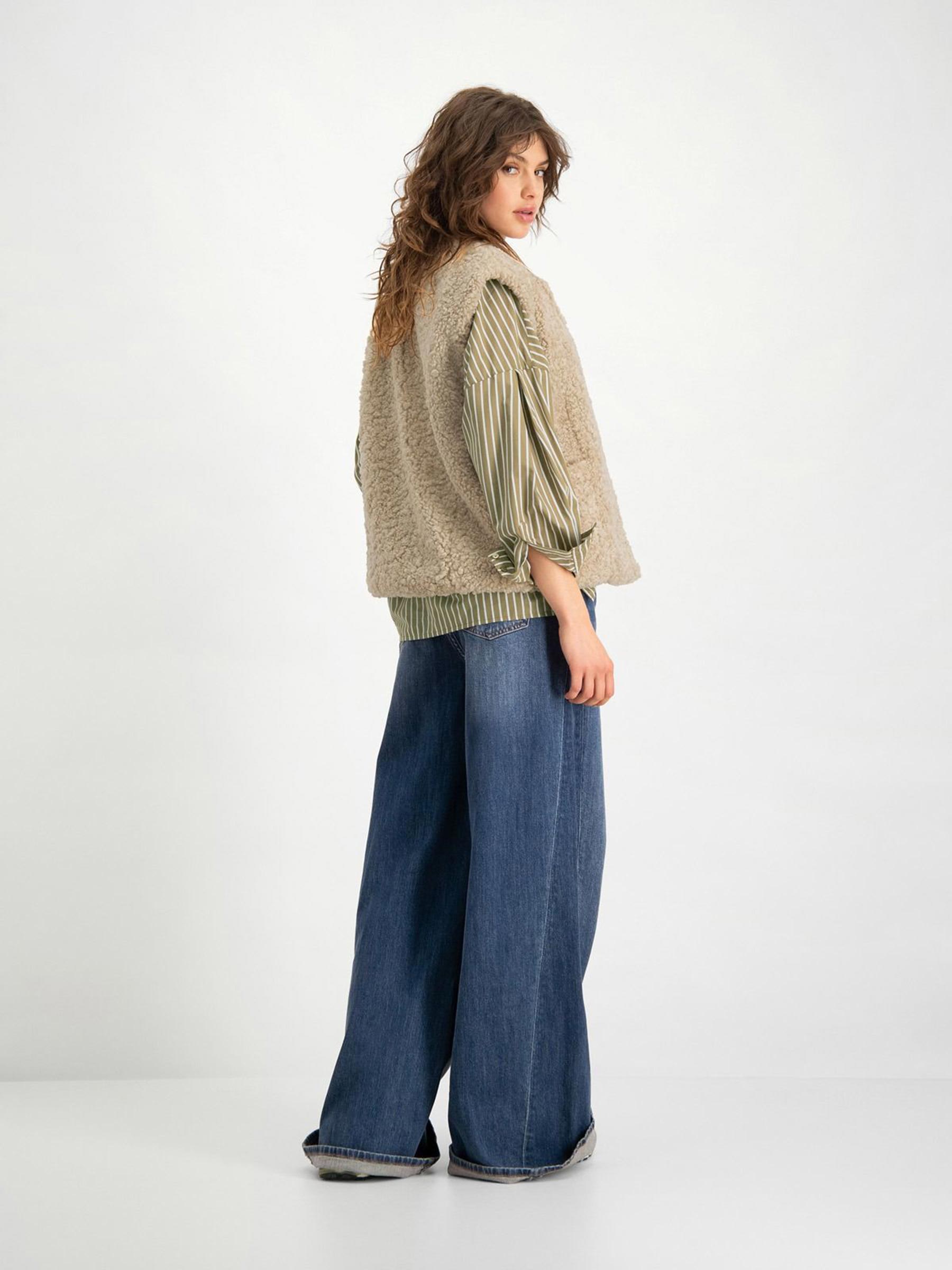Dit beige gilet van Circle of Trust houd je warm tijdens de koele dagen. Het mouwloze jasje heeft een super zachte teddy stof en een relaxed fit. Hij is eindeloos te combineren, bijvoorbeeld met een blouse of trui!