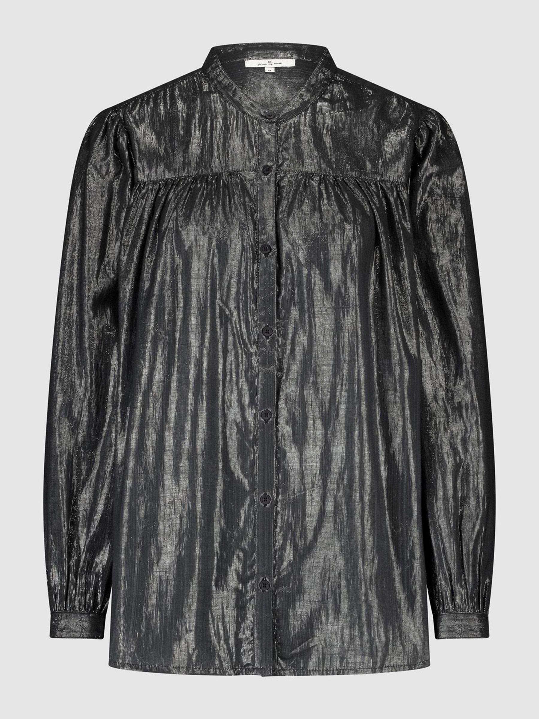 Deze donkerblauwe blouse van Circle of Trust heeft een glanzende metallic finish die meteen een feestelijke touch geeft. Met de rechte fit en subtiele plooien draag je hem net zo makkelijk casual met jeans als chic met een pantalon of rok.