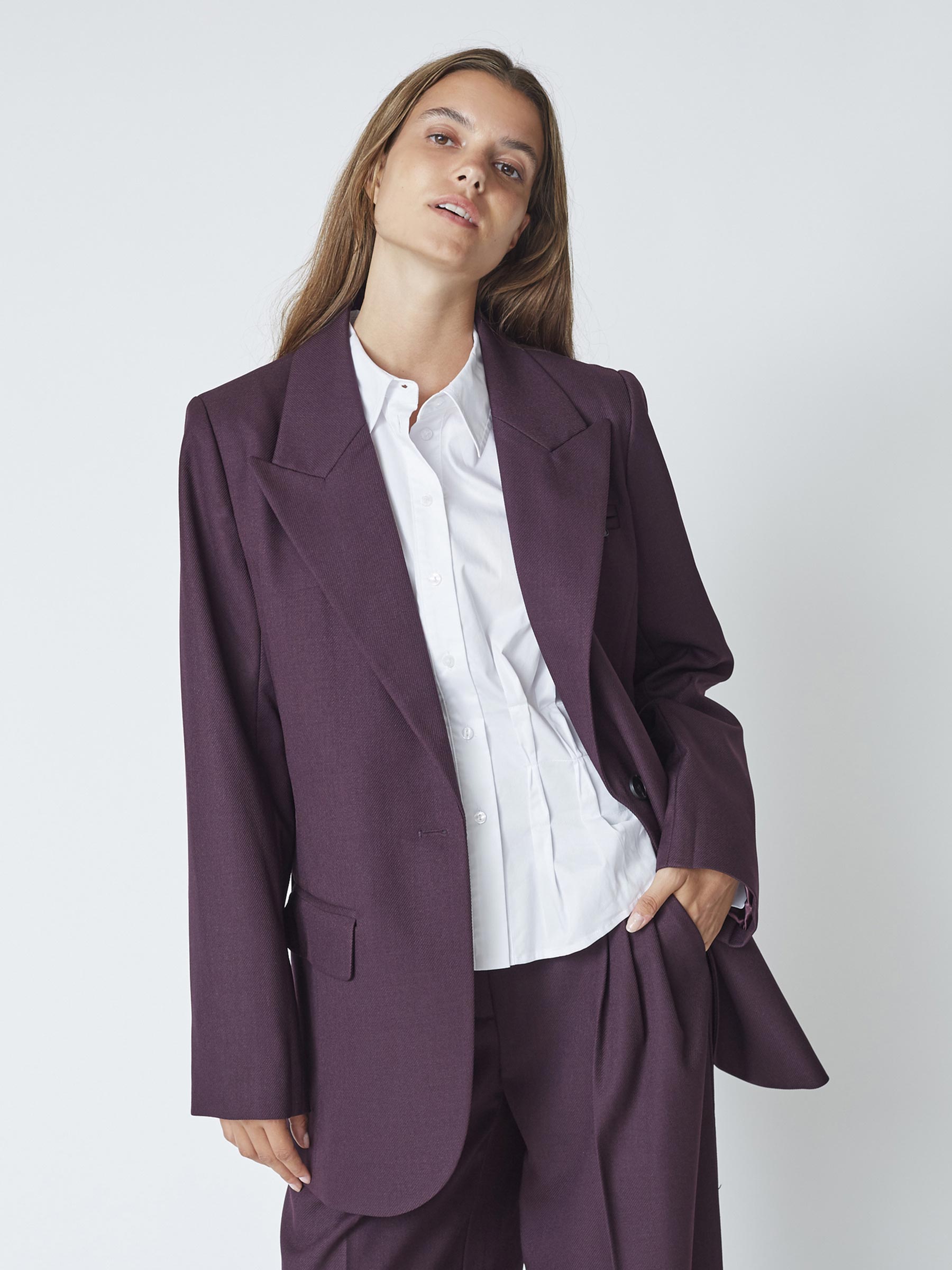 Dieppaarse blazer Co’Couture tilt elke outfit meteen naar een hoger niveau. De getailleerde pasvorm en brede revers zorgen voor een krachtige look die net zo goed werkt op kantoor als tijdens een avond uit. Combineer met de bijpassende pantalon voor een complete set of draag los over denim voor een nonchalante vibe.