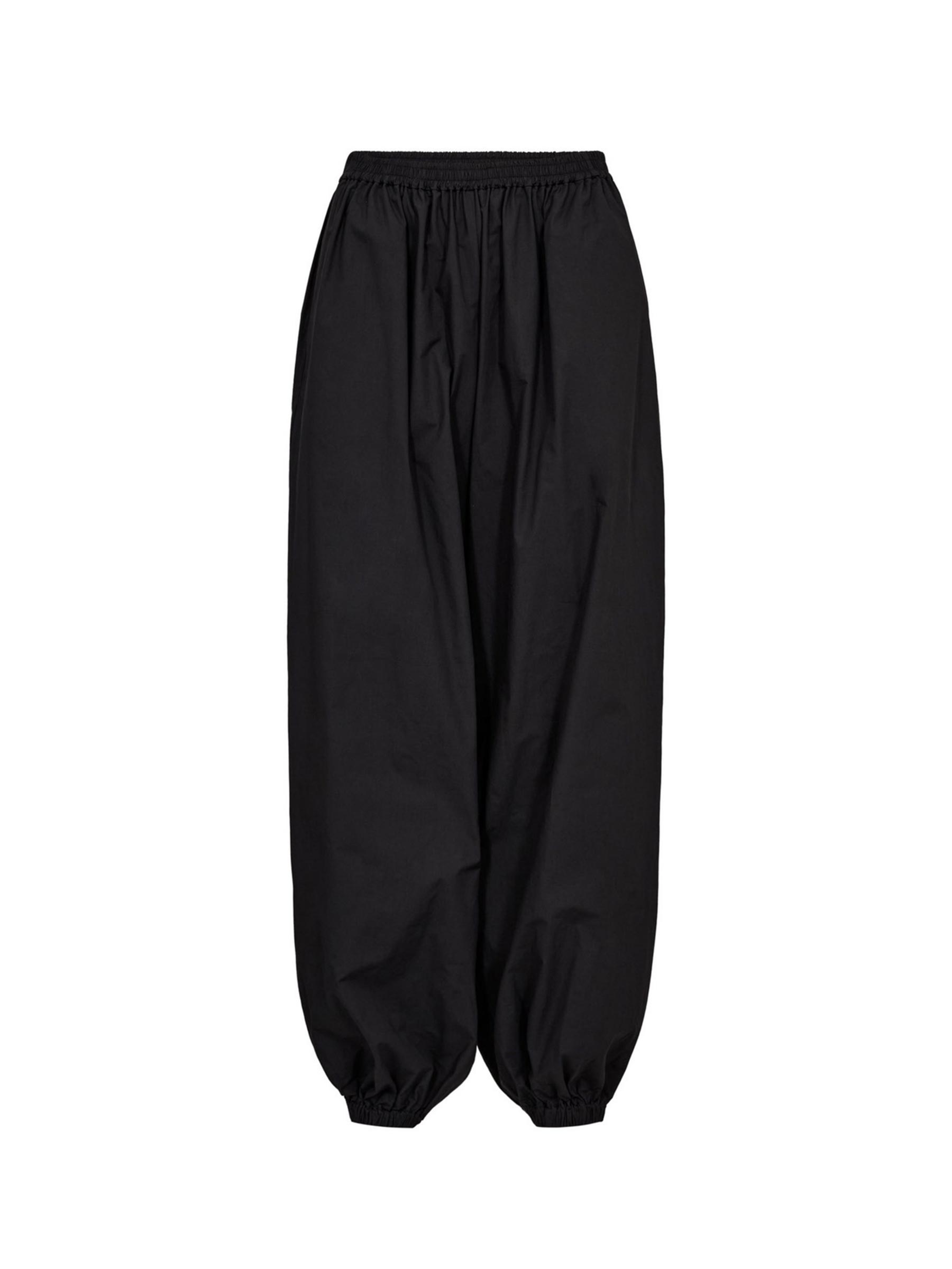 Deze zwarte broek van Co'couture geeft je outfit meteen een trendy look dankzij het ballonmodel. De lichte stof en elastische details zorgen voor een comfortabele fit en maken hem ideaal voor zowel casual als geklede combinaties. Draag met een top, knit of blazer en je bent meteen klaar voor de dag.