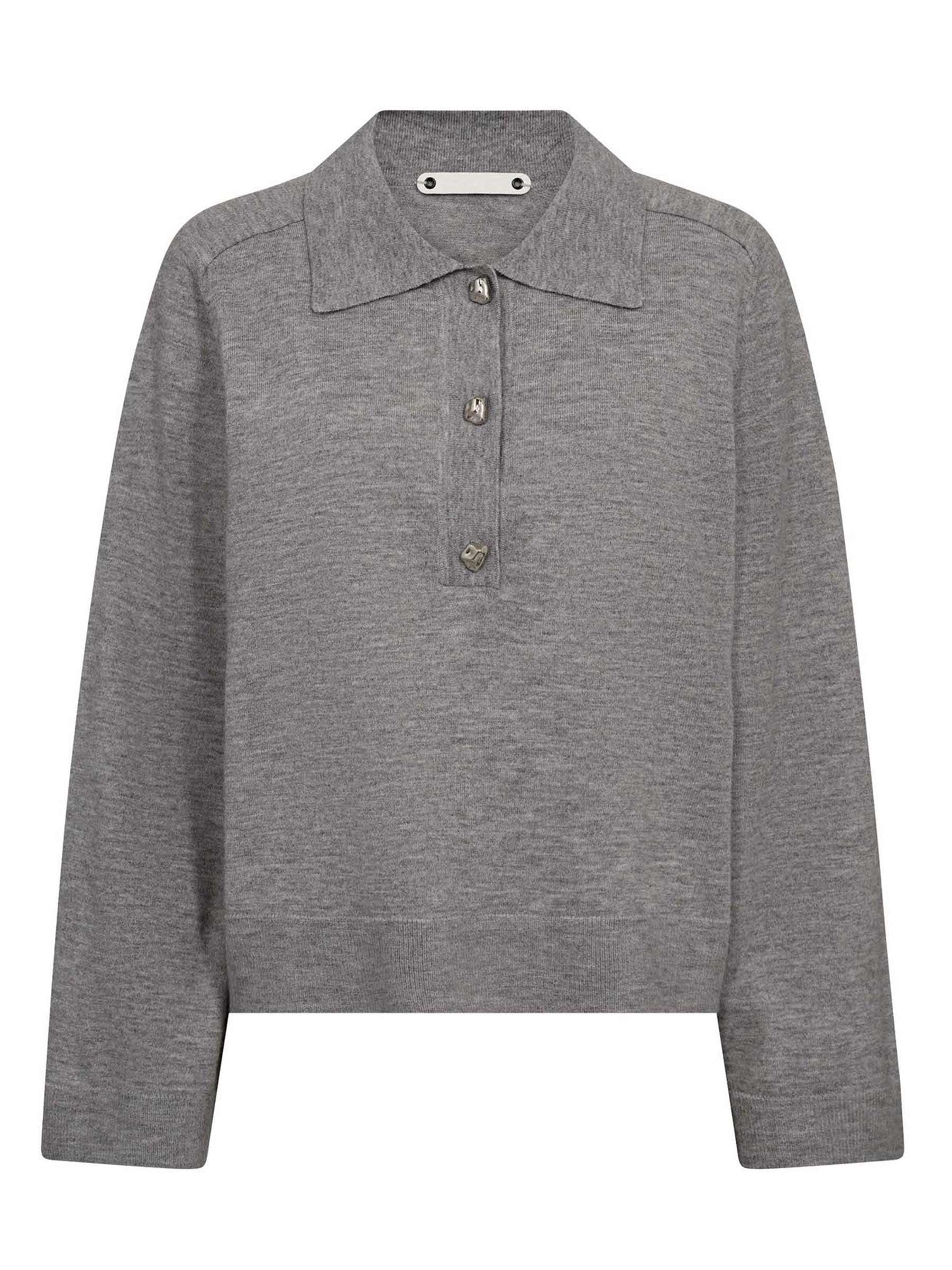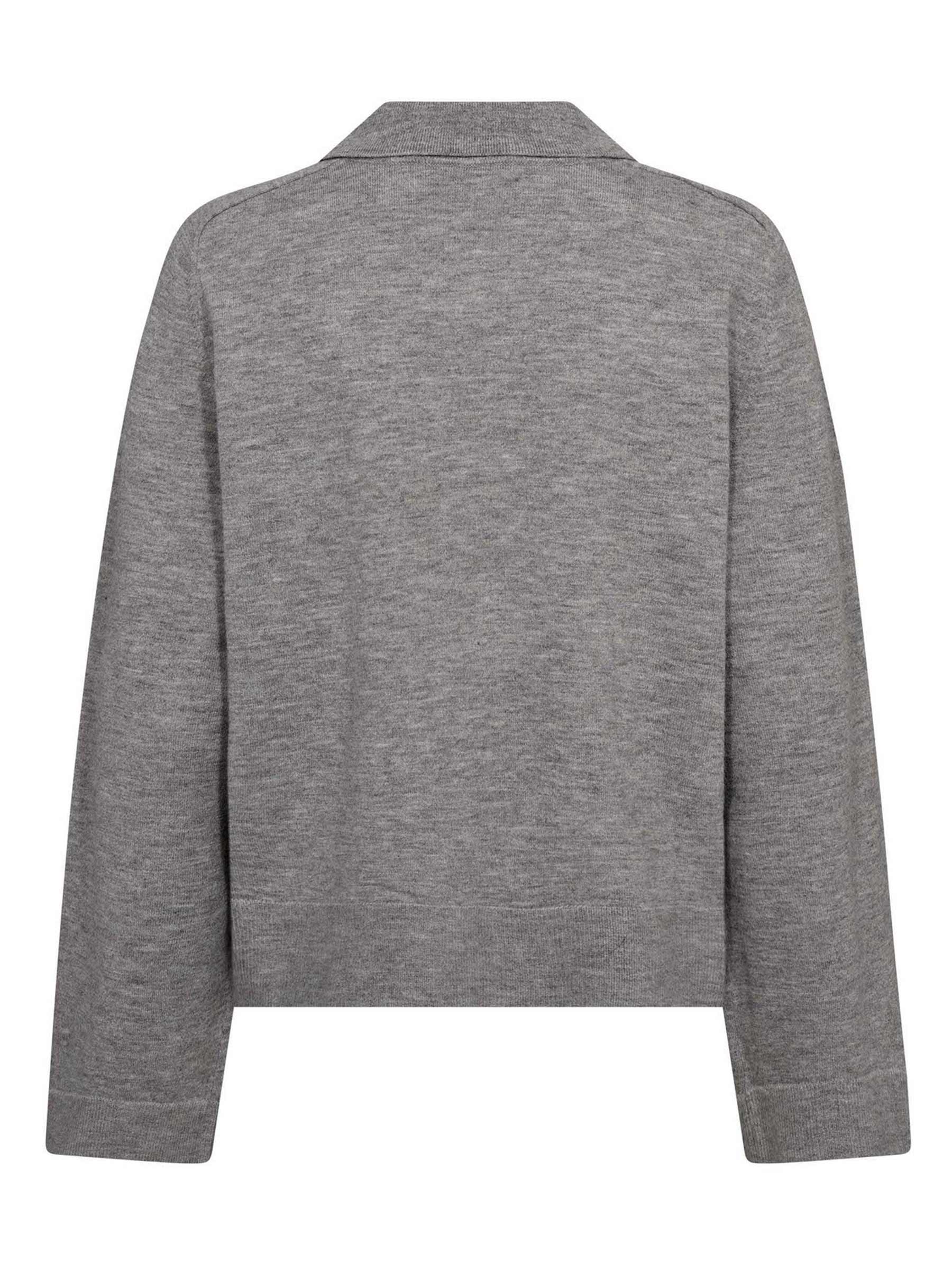 Deze grijze polo knit van Co'Couture is een moderne klassieker met een sportieve uitstraling. De zachte knit en de knoopsluiting met kraag geven een casual maar verfijnde look die je zowel los draagt op jeans als in combinatie met een rok. Een veelzijdige musthave voor elke dag.