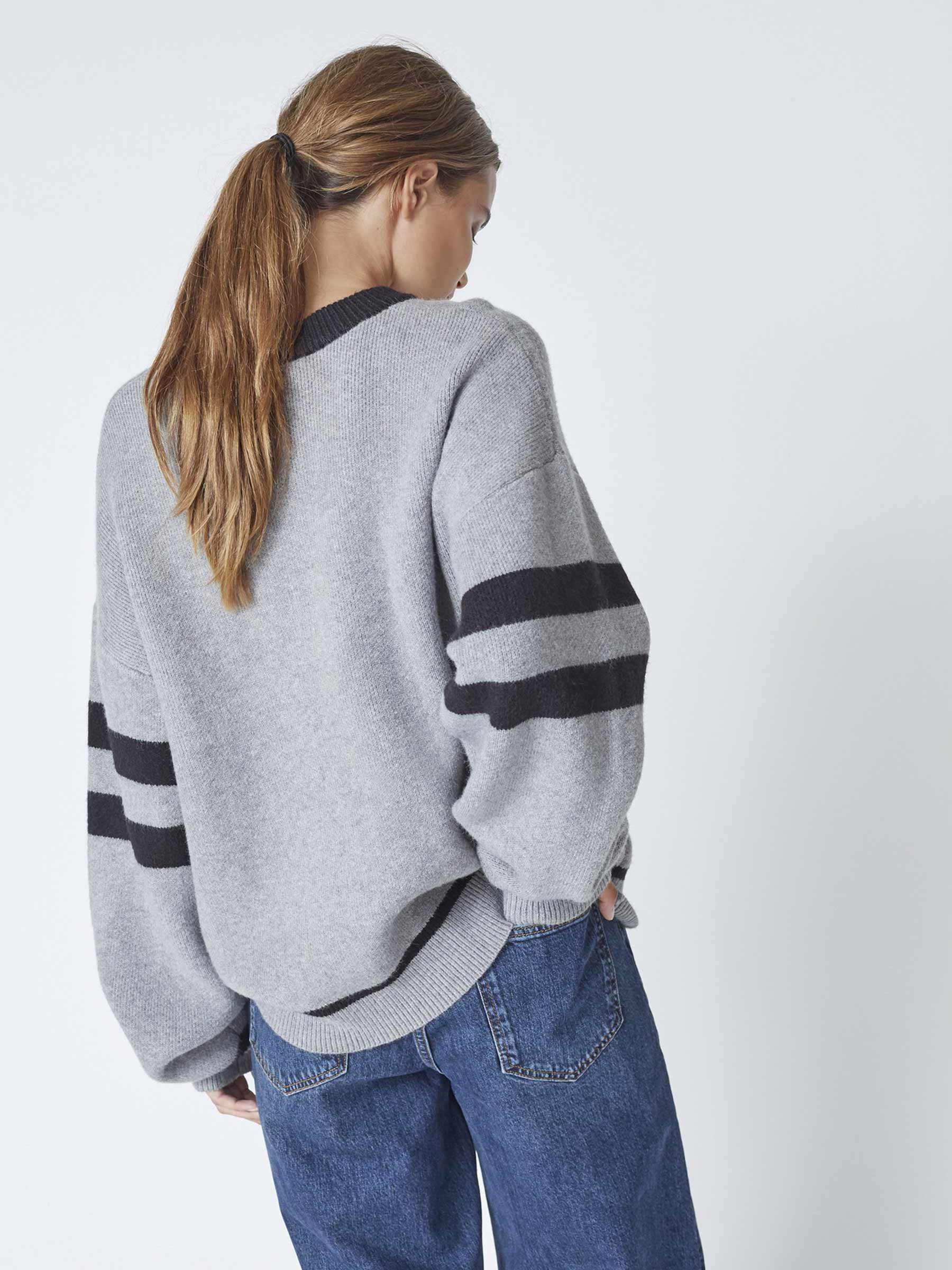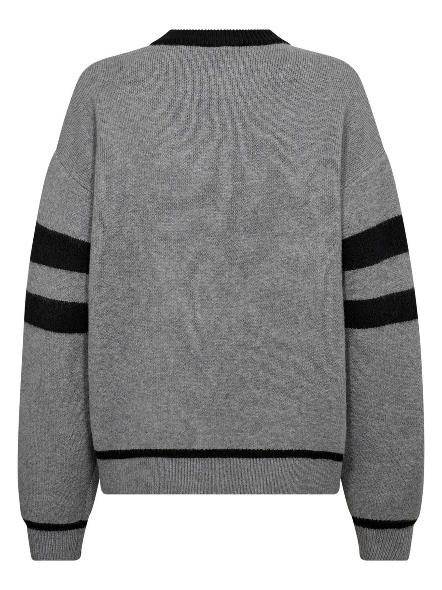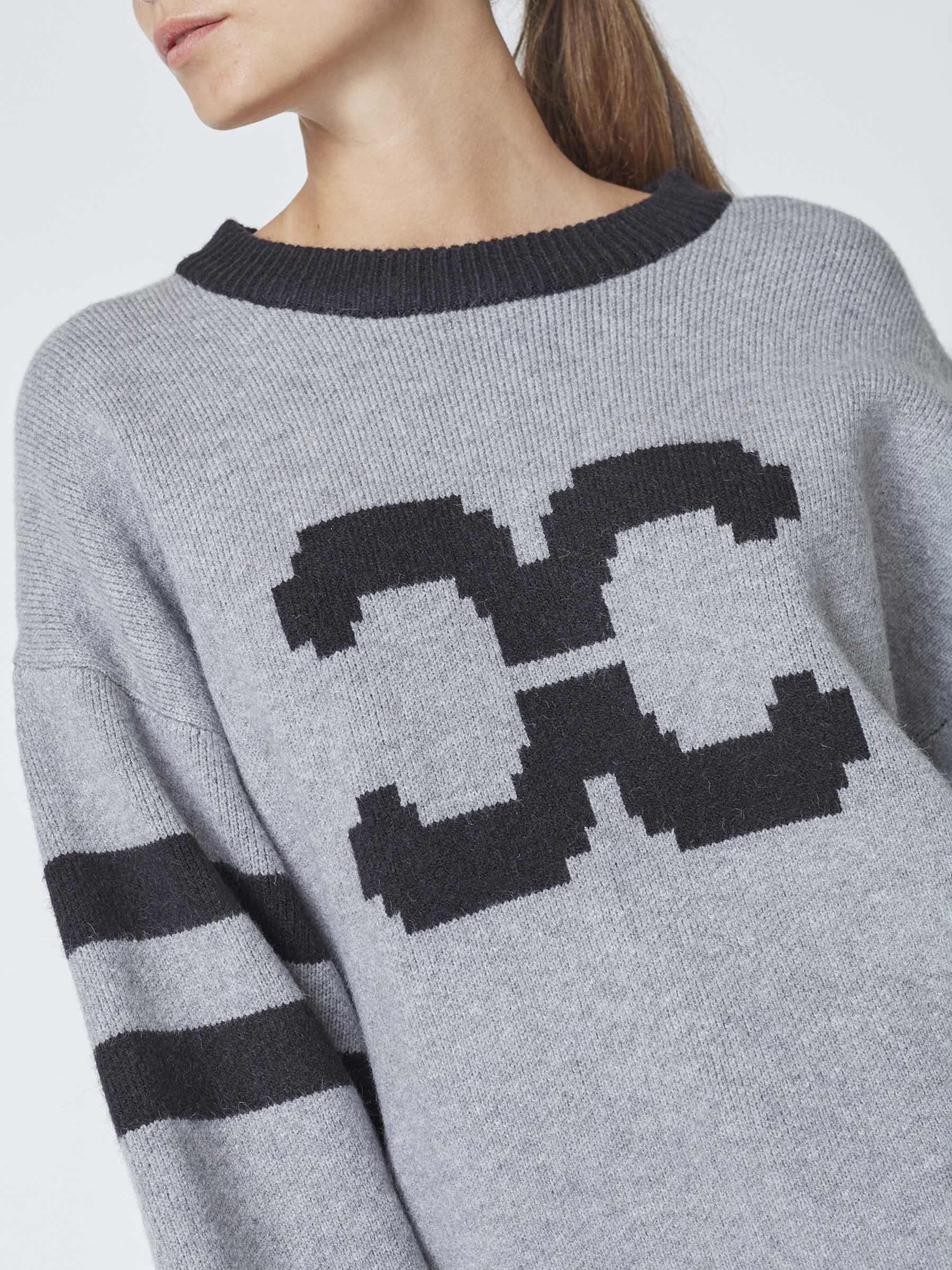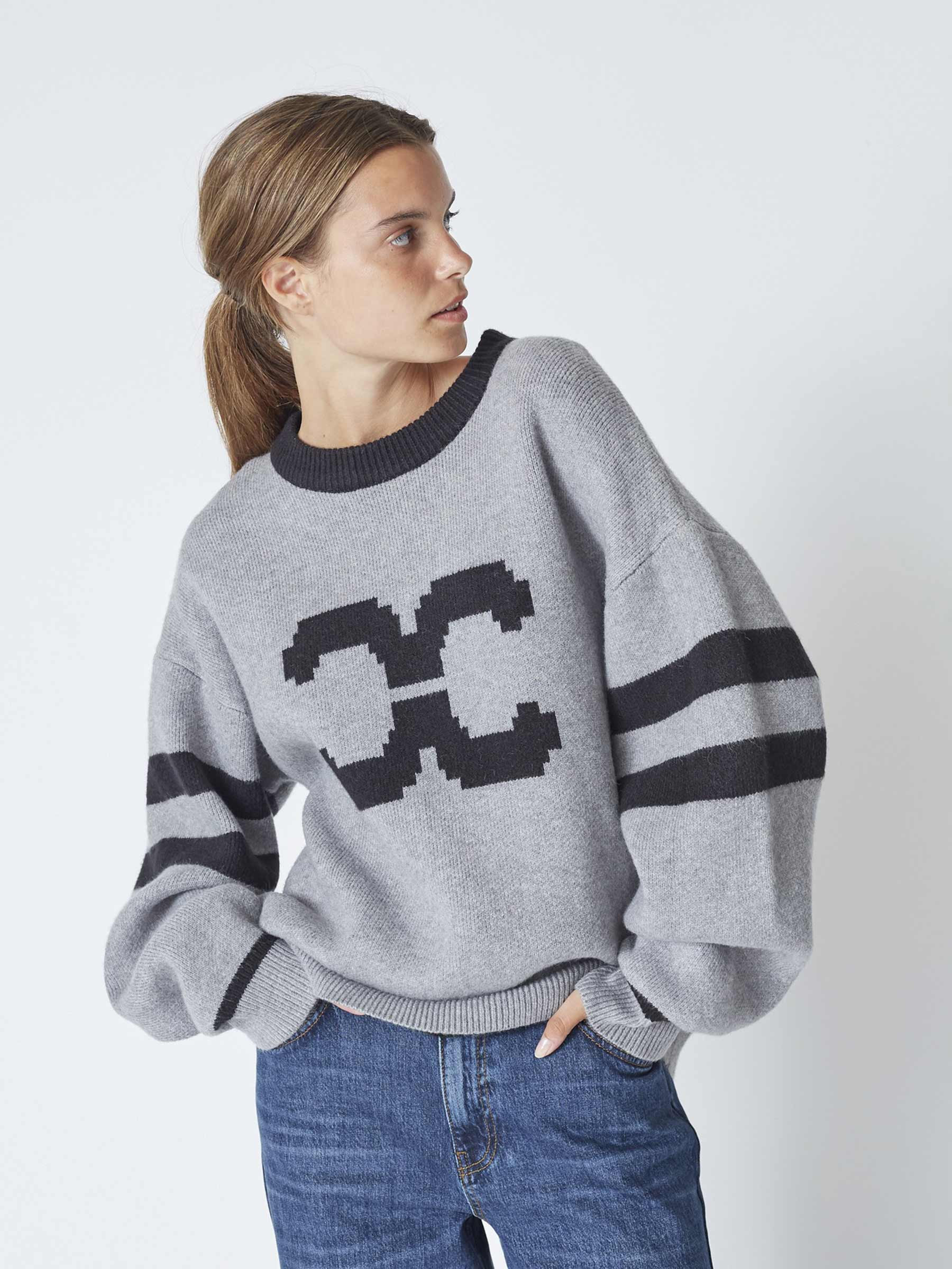 Deze grijze trui van Co'Couture heeft een sportieve uitstraling met het grafische CC-logo en strepen op de mouwen. De relaxed fit en zachte knit zorgen voor ultiem draagcomfort, terwijl de zwarte accenten een stoer contrast geven. Perfect voor casual dagen met jeans en sneakers.