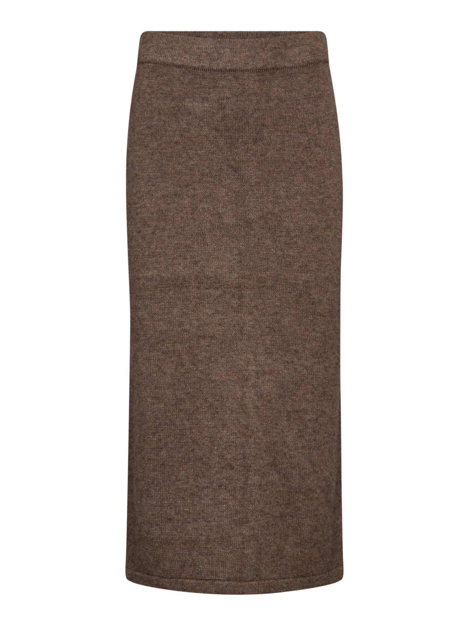 Deze bruine rok van Co'Couture is een veelzijdig item dat je moeiteloos van casual naar chic kunt stylen. De zachte knitstof en midi-lengte geven een comfortabele uitstraling, terwijl de subtiele split zorgt voor een moderne touch. Combineer met een oversized trui of een fitted top voor een complete look.