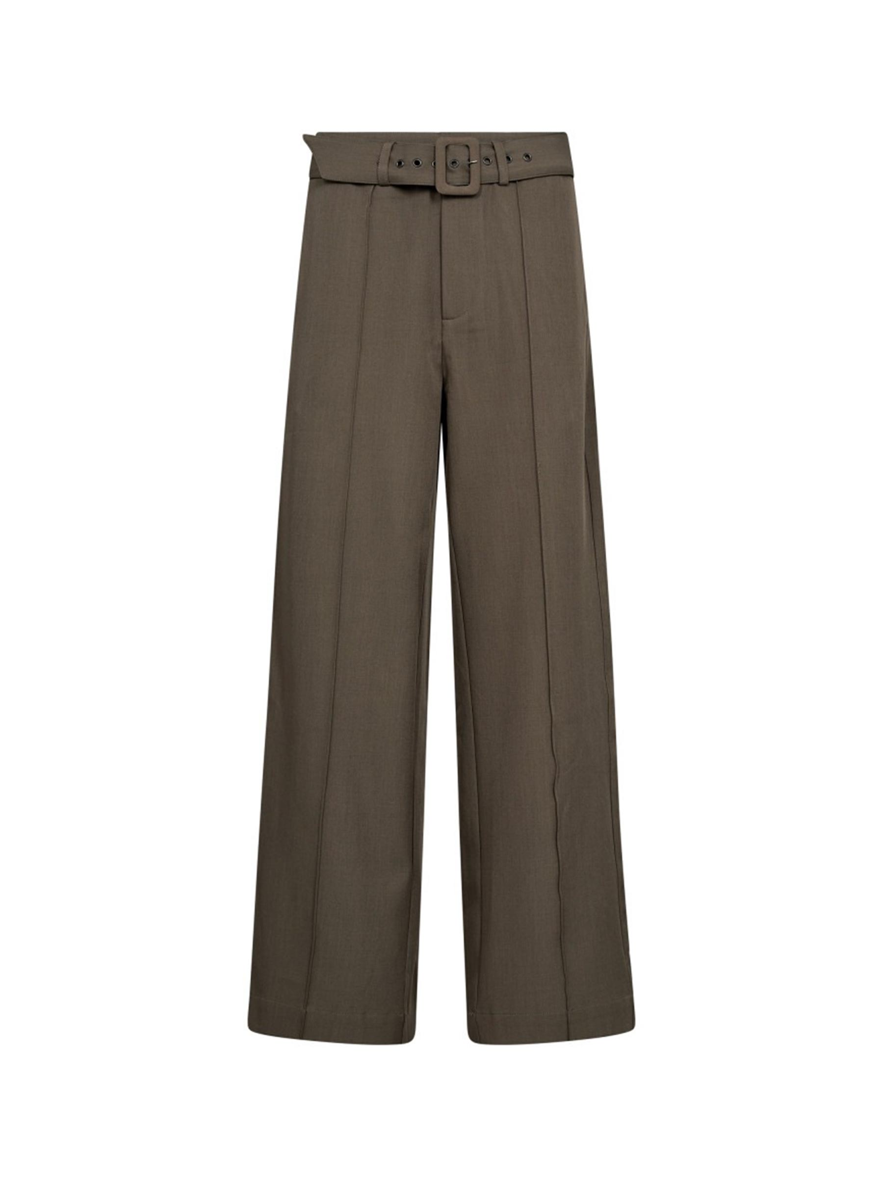 Deze bruine pantalon van Co’Couture is perfect voor dagen waarop je look strak maar relaxed mag zijn. De hoge taille en persvouwen geven een mooie lijn en de bijpassende ceintuur maakt het geheel net even af. Draag met de bijpassende jacket.