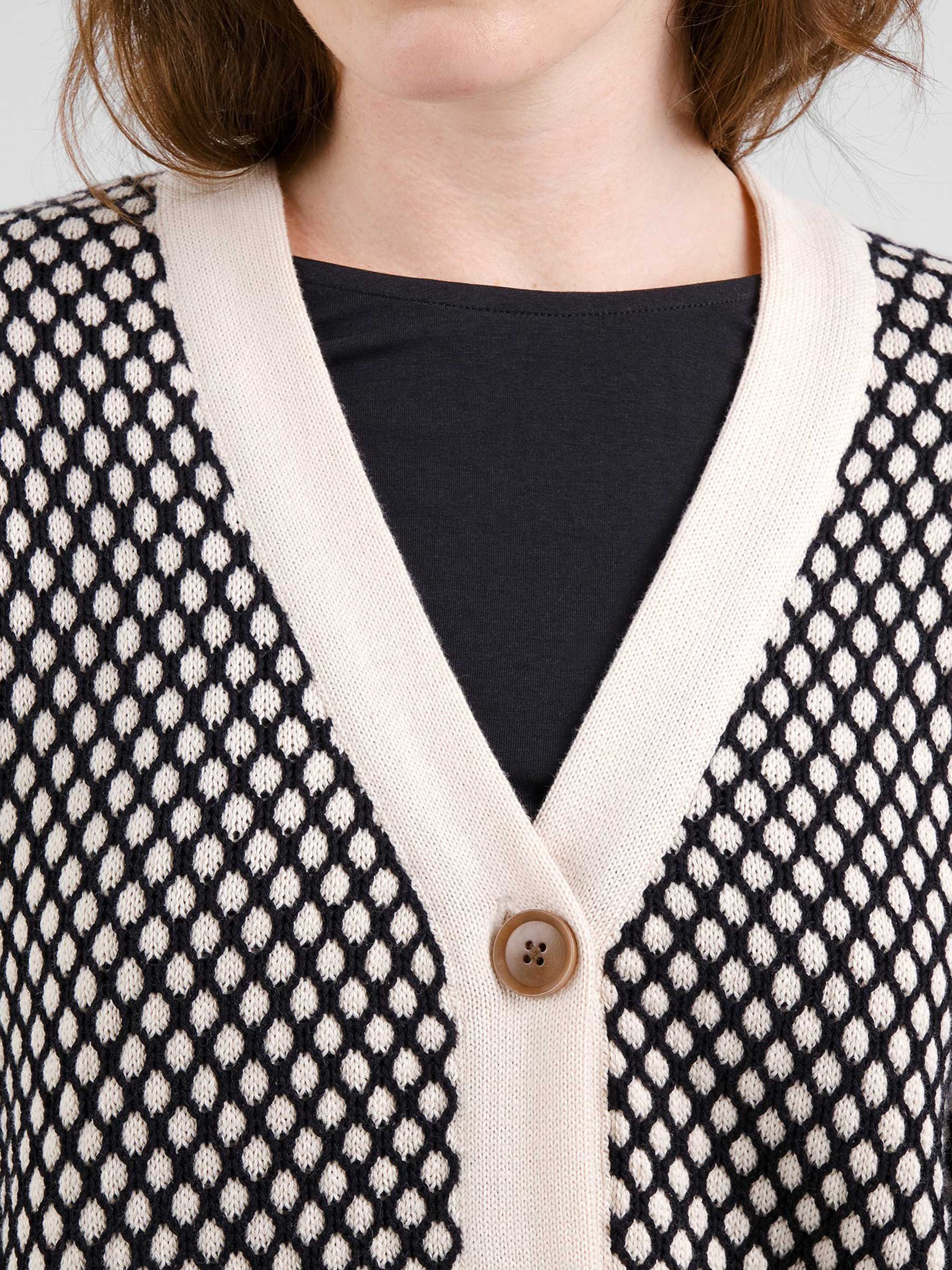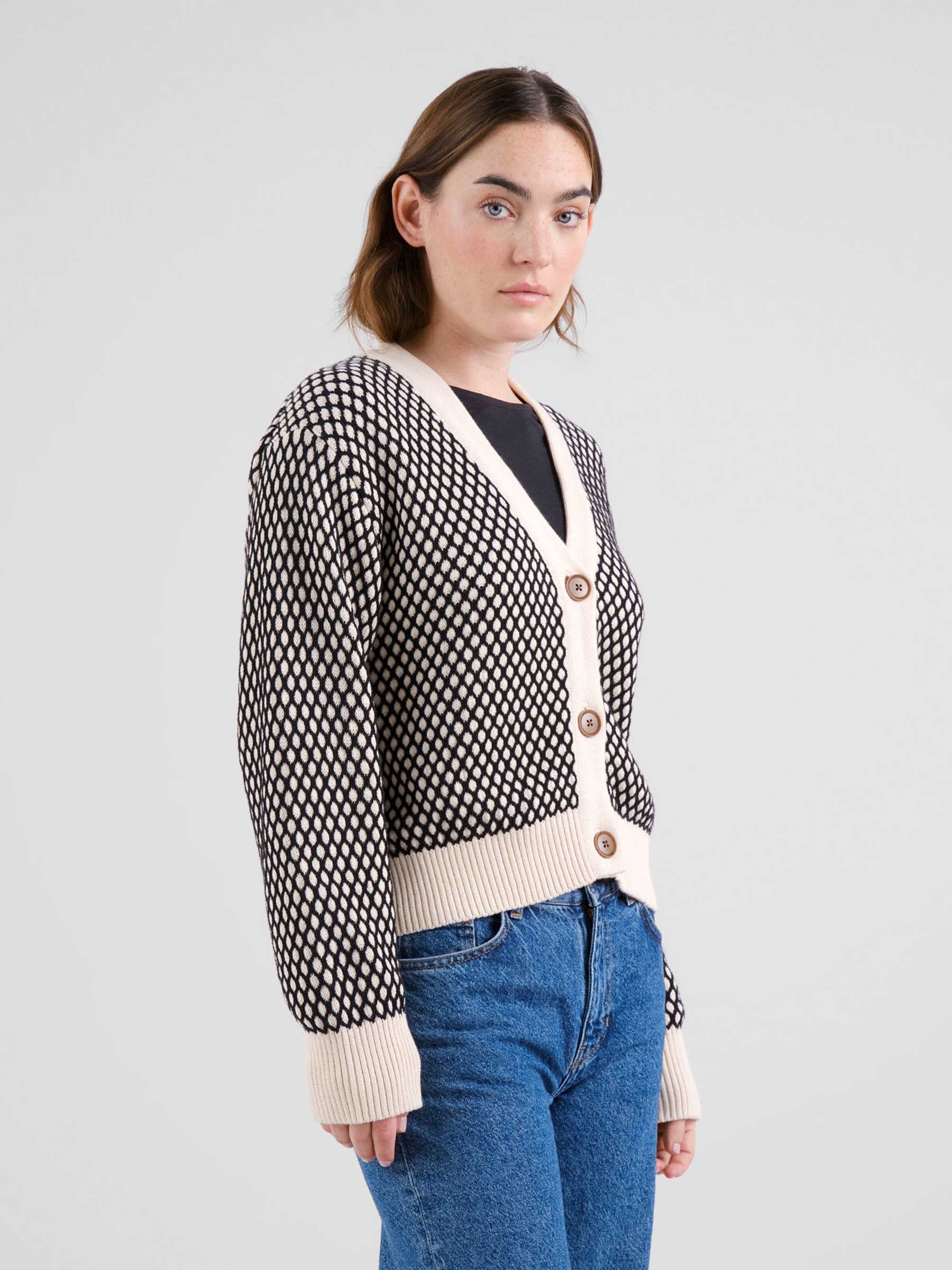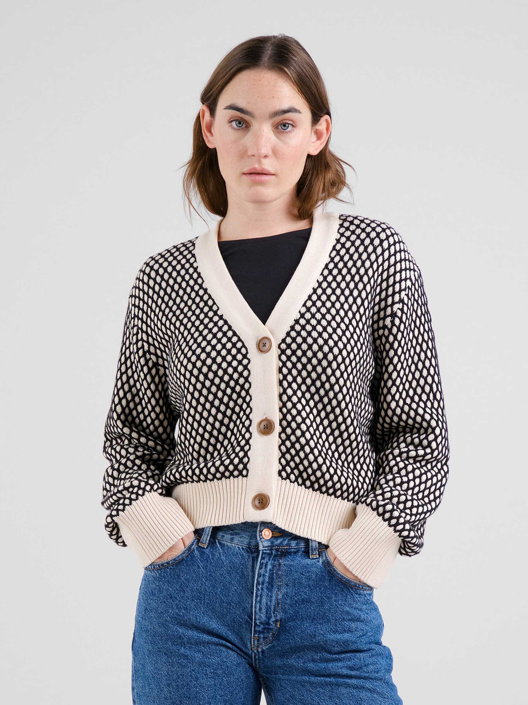 Op zoek naar een comfy én stijlvolle toevoeging aan je garderobe? Dan zit je met dit Kanan Bubble Knit vest van Dedicated helemaal goed. Het zwarte vest met witte bubbeltjesprint heeft een relaxte fit en is super makkelijk te combineren.