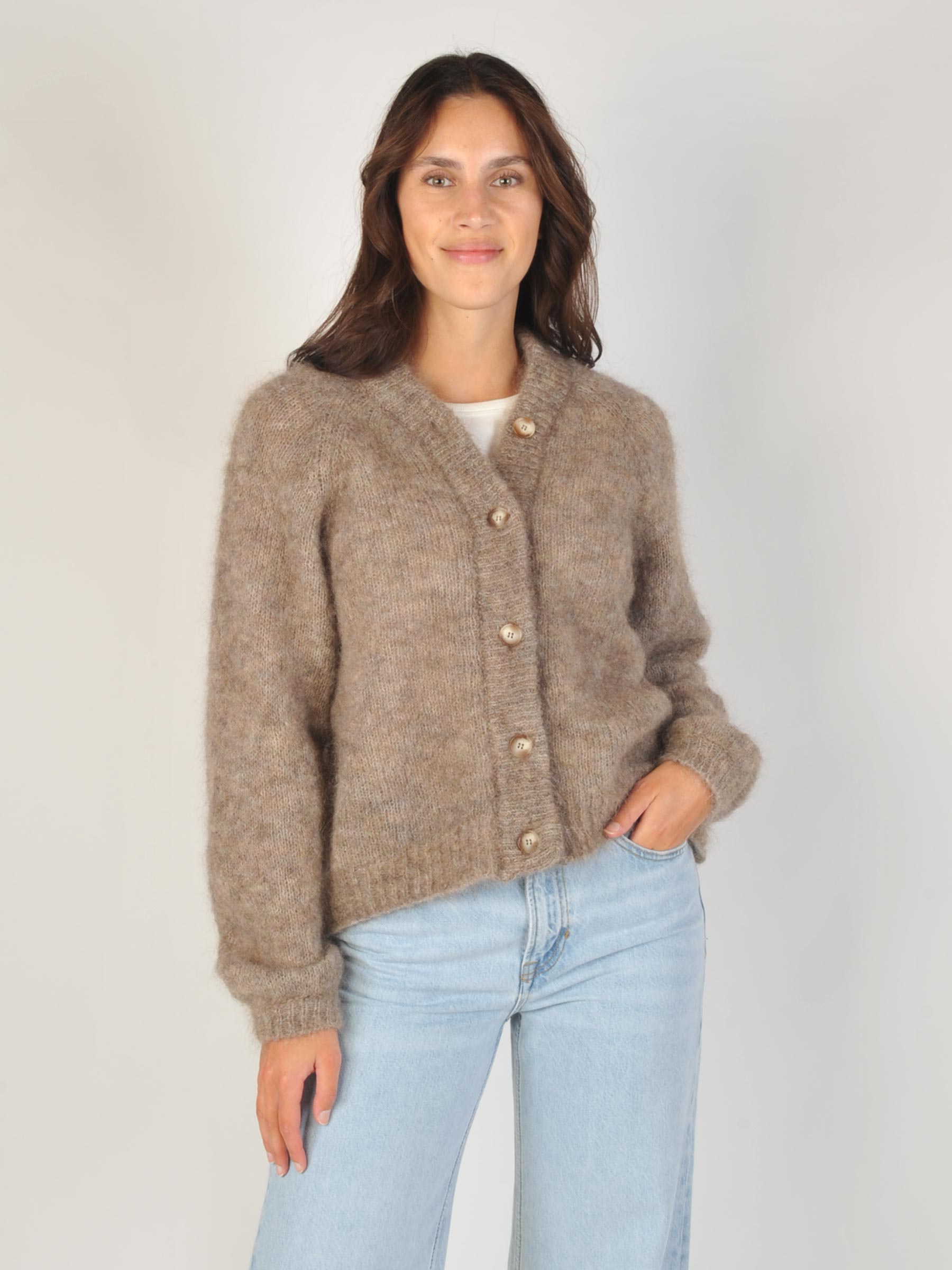 Dit bruine gebreide vest van See U Soon is zo’n klassieker waar je altijd op terugvalt. De zachte, pluizige structuur en de knopen geven een warme, natuurlijke uitstraling. Leuk op een jeans of over een witte blouse voor een cozy, vrouwelijke look.