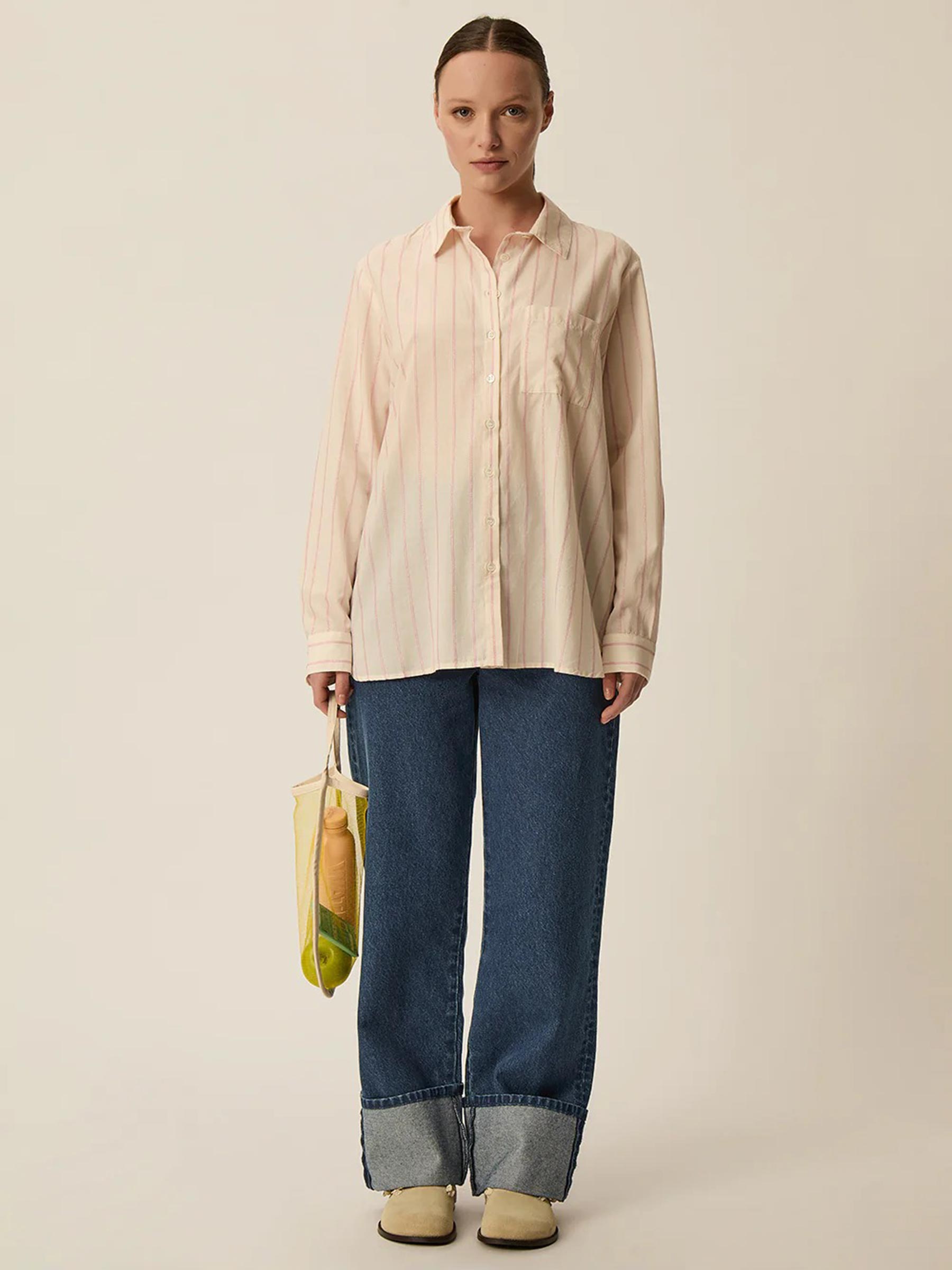 Deze gestreepte blouse van Sessùn is zo'n item die je pakt als je eigenlijk niets te veel wilt doen, maar er tóch goed uit wilt zien. Met de subtiele strepen en een lekker ruim vallende pasvorm is deze blouse je nieuwe go to voor alles van kantoor tot terras. Sessùn staat bekend om de doordachte kwaliteit van hun stoffen, en dat voel je hier ook.