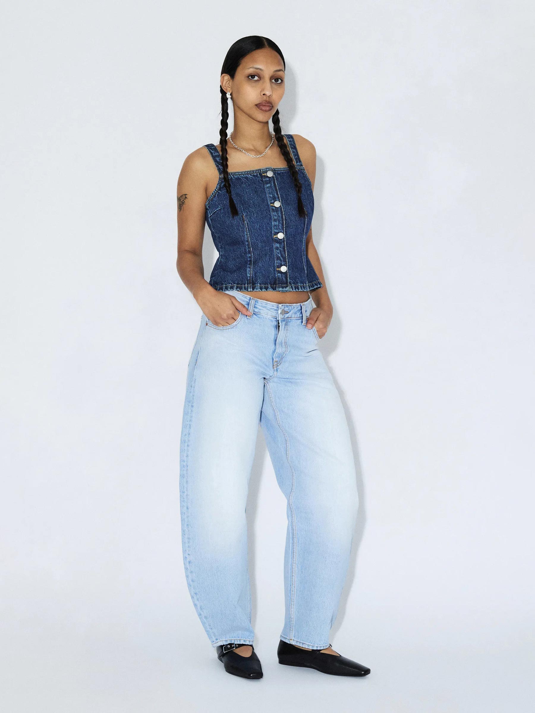 De lichtblauwe Nanci van Dr. Denim is de barrel jeans die je wardrobe nodig heeft. De balloon pijp zit precies goed: niet te wijd, niet te strak. De denim stof zonder stretch geeft hem een authentieke look.