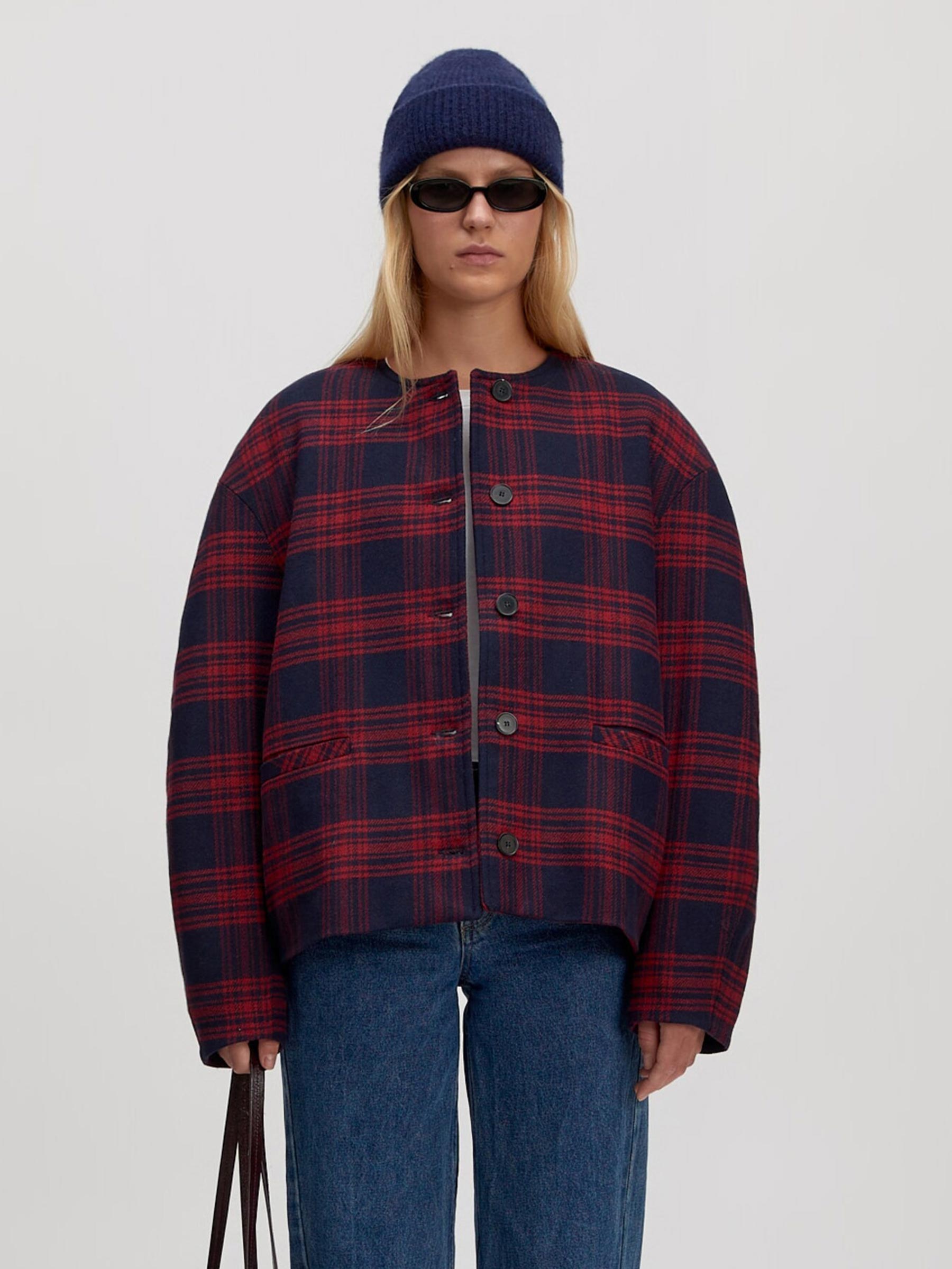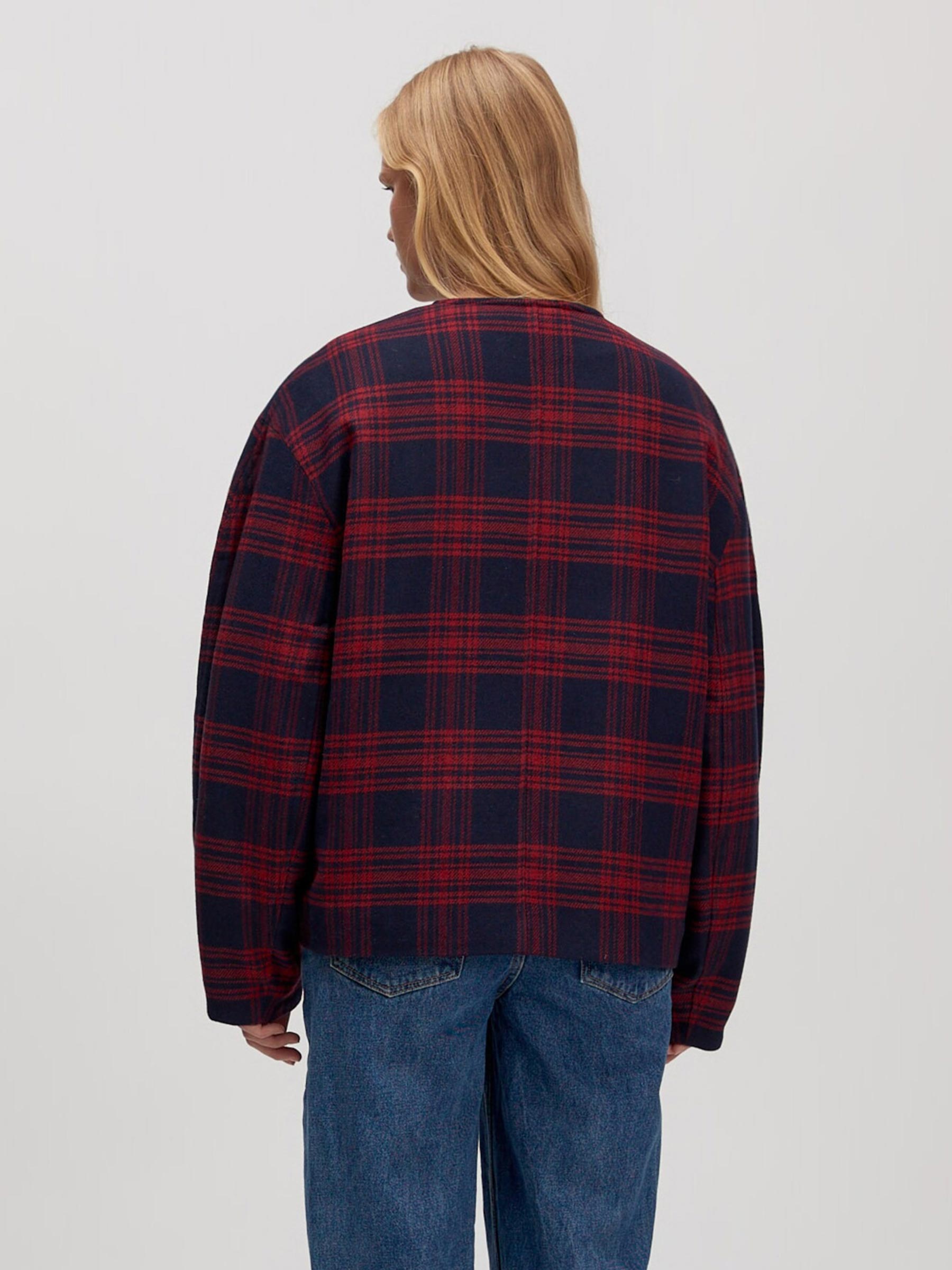Deze geruite jas van Edited geeft elke look een frisse stoere look! De korte pasvorm en ronde hals maken hem eigentijds en makkelijk te combineren, terwijl de rode ruit hem een echte stoere citylook geeft. Style hem af met een beanie en een wide leg jeans.