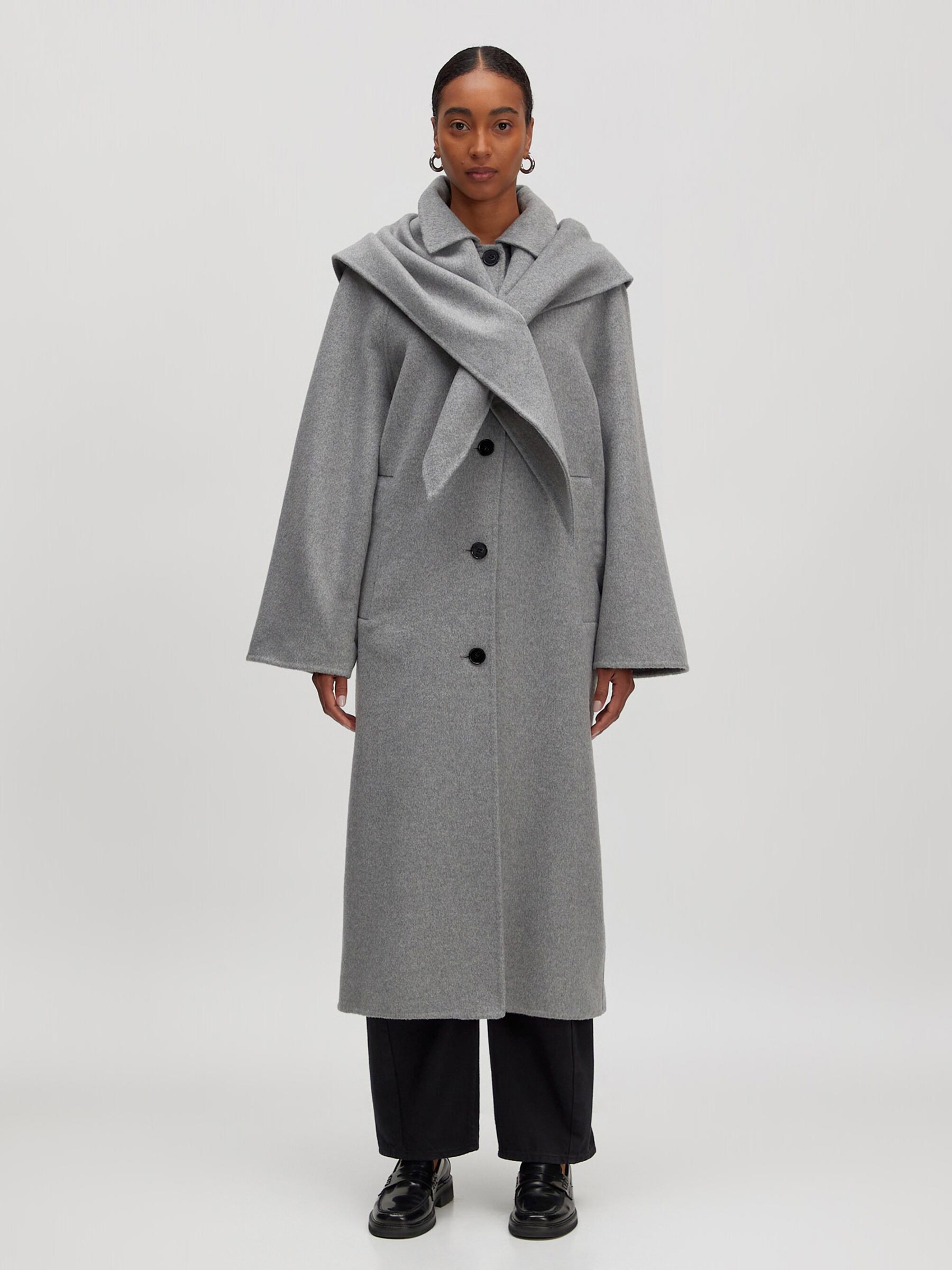 Deze grijze wollen jas van Edited is een klassieker met een moderne snit. De lange lengte en rechte fit geven een tijdloos silhouet, terwijl de zachte wolmix zorgt voor een warme en luxe feel. Combineer met een zwarte pantalon en loafers voor een effortless citylook.